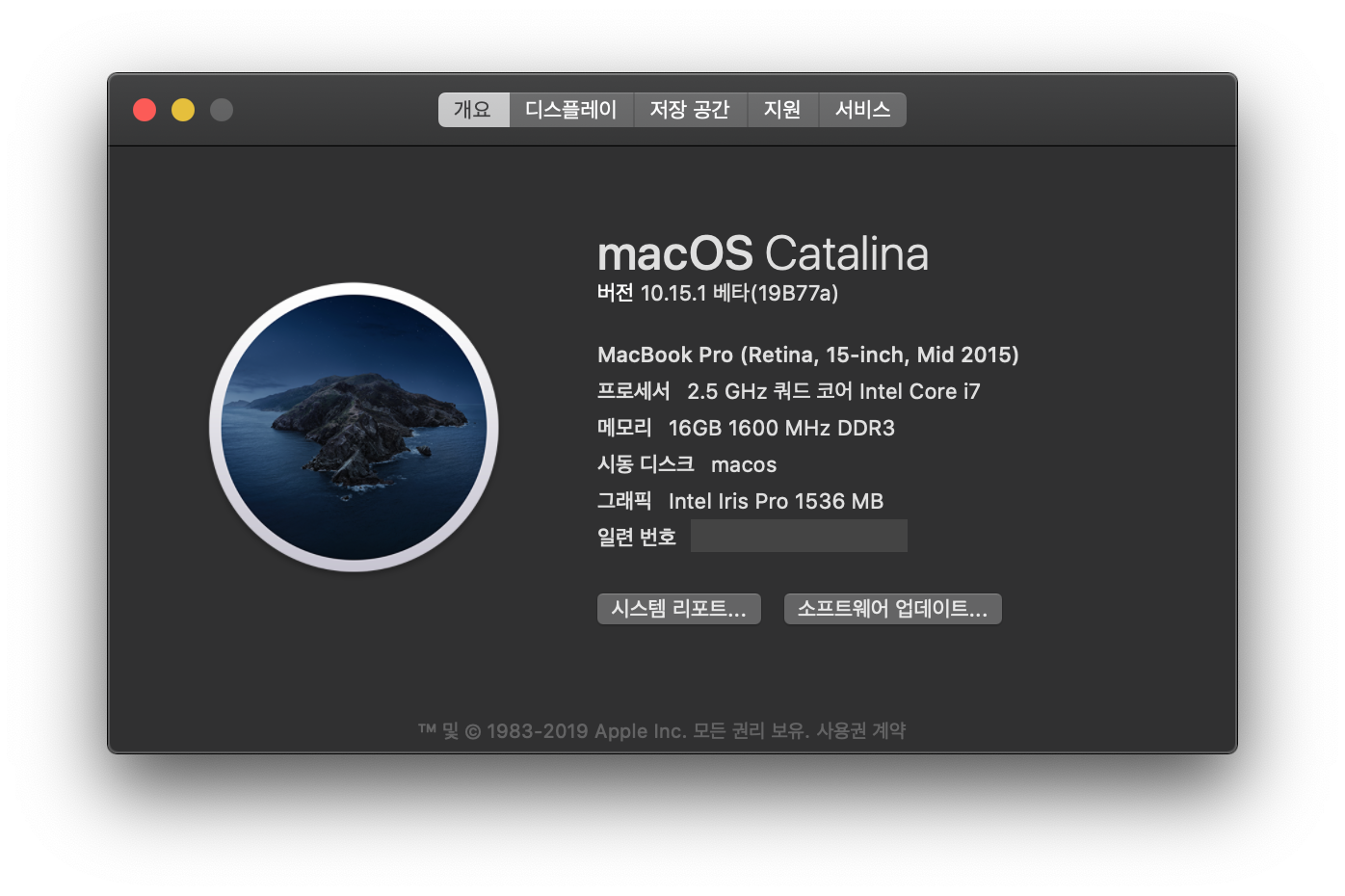 현재 설치되어 있는 macOS는 위와 같이 Catalina 10.15.1이고, USB 설치를 위한 부팅 가능한 macOS 설치 프로그램을 생성할 것이다.