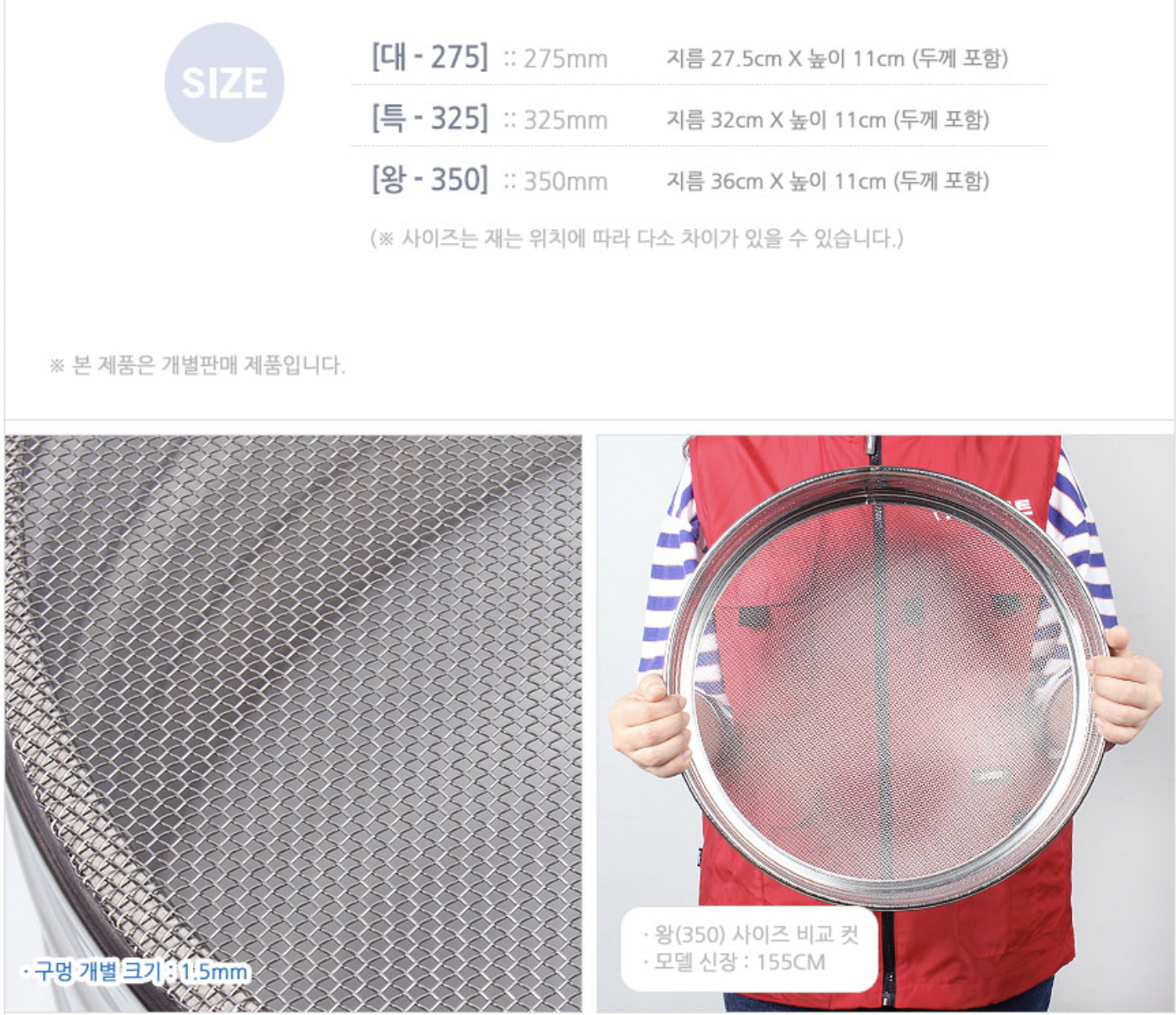식깡 내부에 이 타공채반이 위치할 중간 지점 부근의 내경이 33.5cm 쯤이라 좀 애매할 수도 있을 것 같아 한 사이즈 작은 31.5cm로 주문했는데 받아서 보니 그냥 원래 주문하려던 33.5cm로 주문했어도 될 뻔 했다. - 26번 술을 거를 때 처음 사용해보니 좀 작아서 주변부에 유격이 꽤 남는다.
