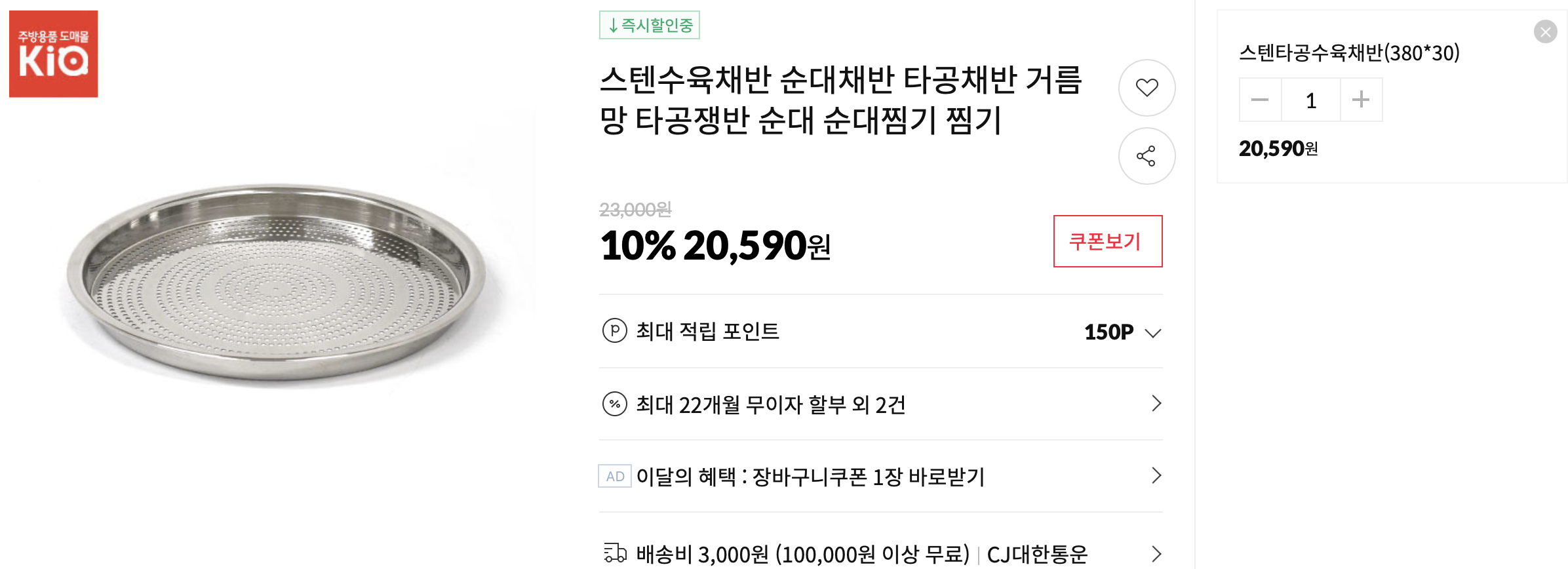 스텐 뚜껑은 타공 채반을 잠시 옆에 빼둘 때 스텐 믹싱볼을 올려둘 때 쓸 예정. - 구매처 (45,900원. 배송료 포함 @ 2024.10.16.)