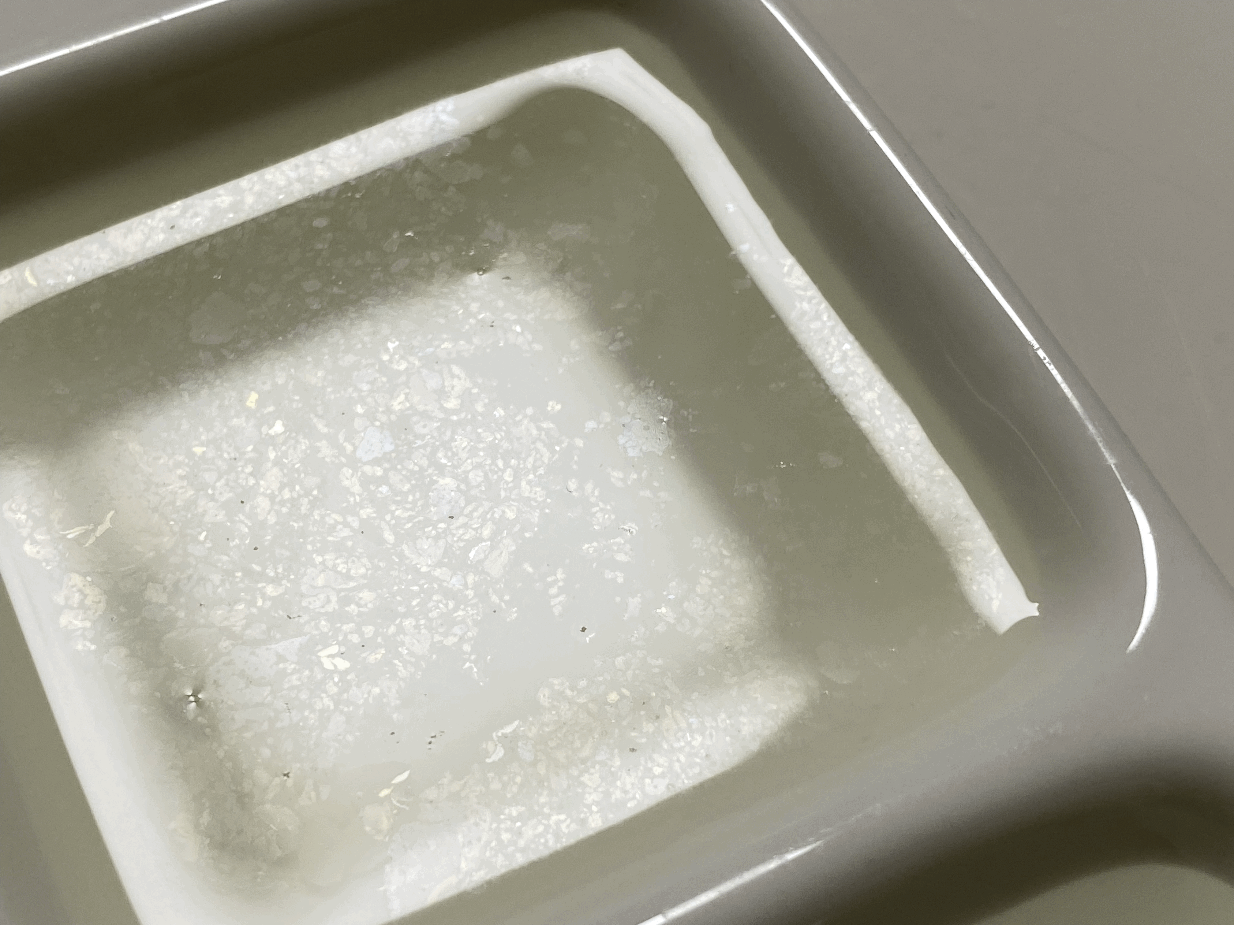 - 사흘 지나니 쉰내가 강해졌고, 유분이 많은 진안연찹쌀을 담궈둔 물의 색이 왼쪽처럼 누렇게 변했다.