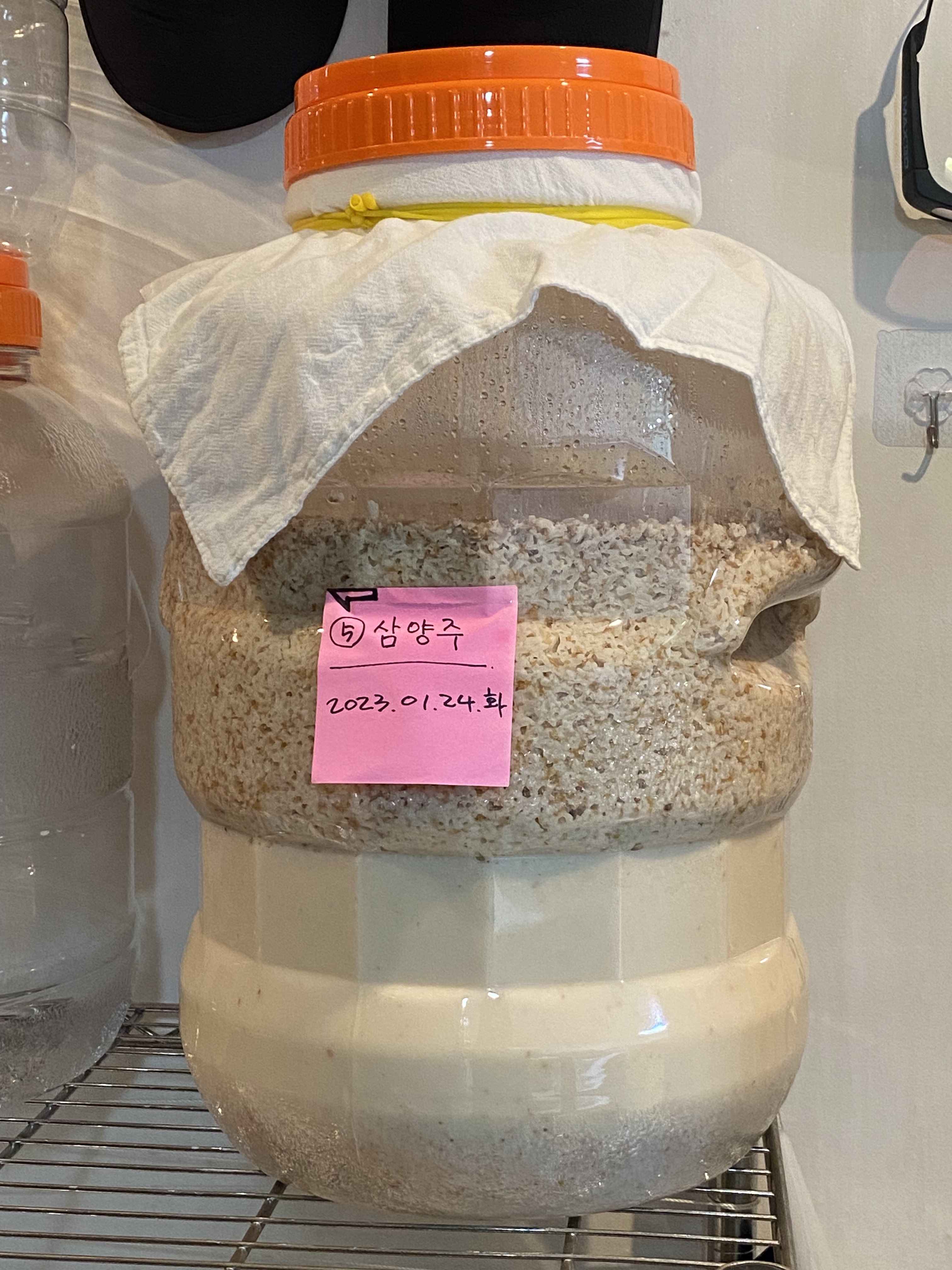- 마지막 덧술 후 4주 2일간 발효한 삼양주. (2/25.토.18:31)