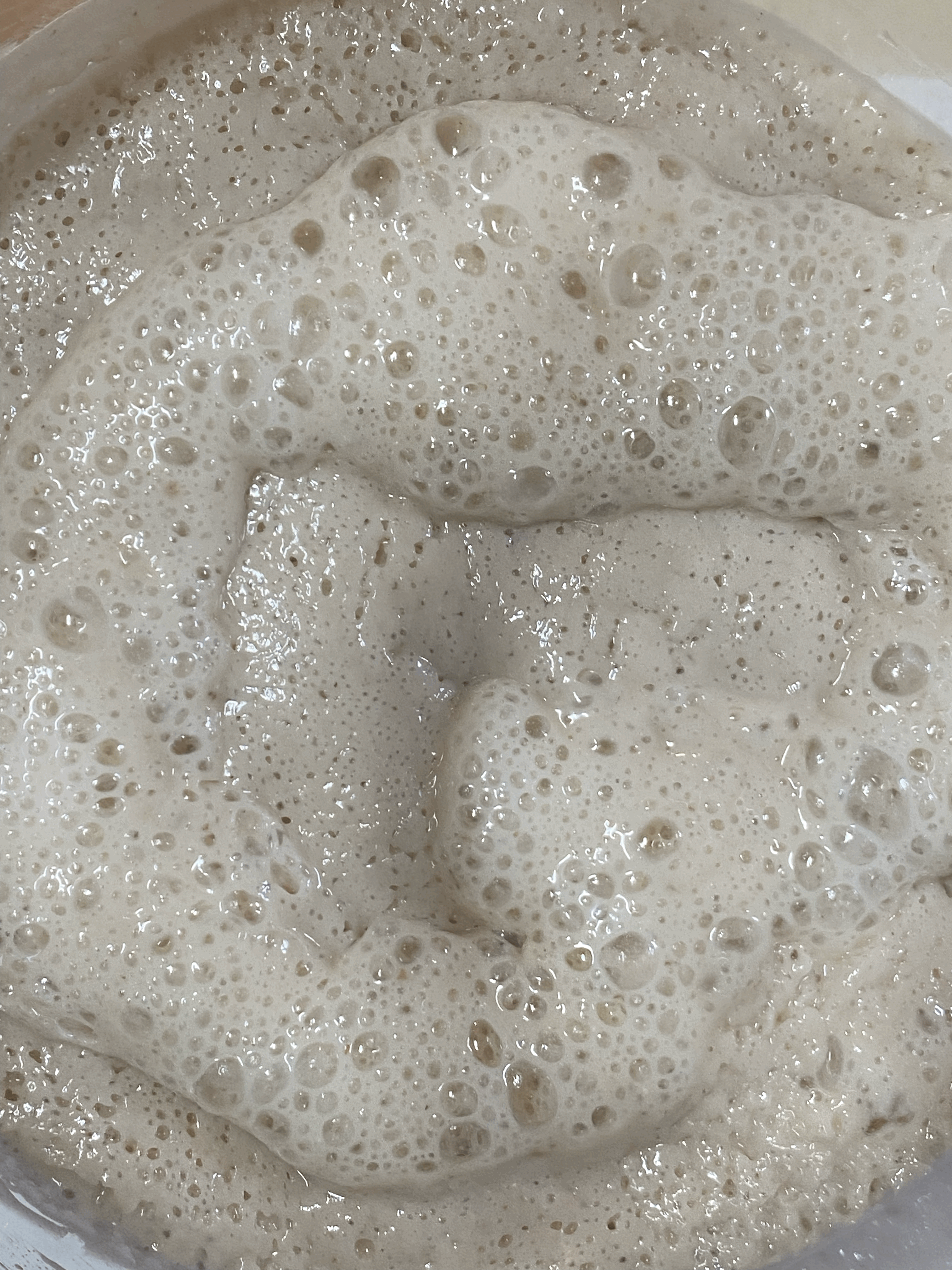 - 위 사진과 같은 때에 밑술의 표면을 찍은 사진인데, 이전에는 볼 수 없었던 기포가 꽤 보임.