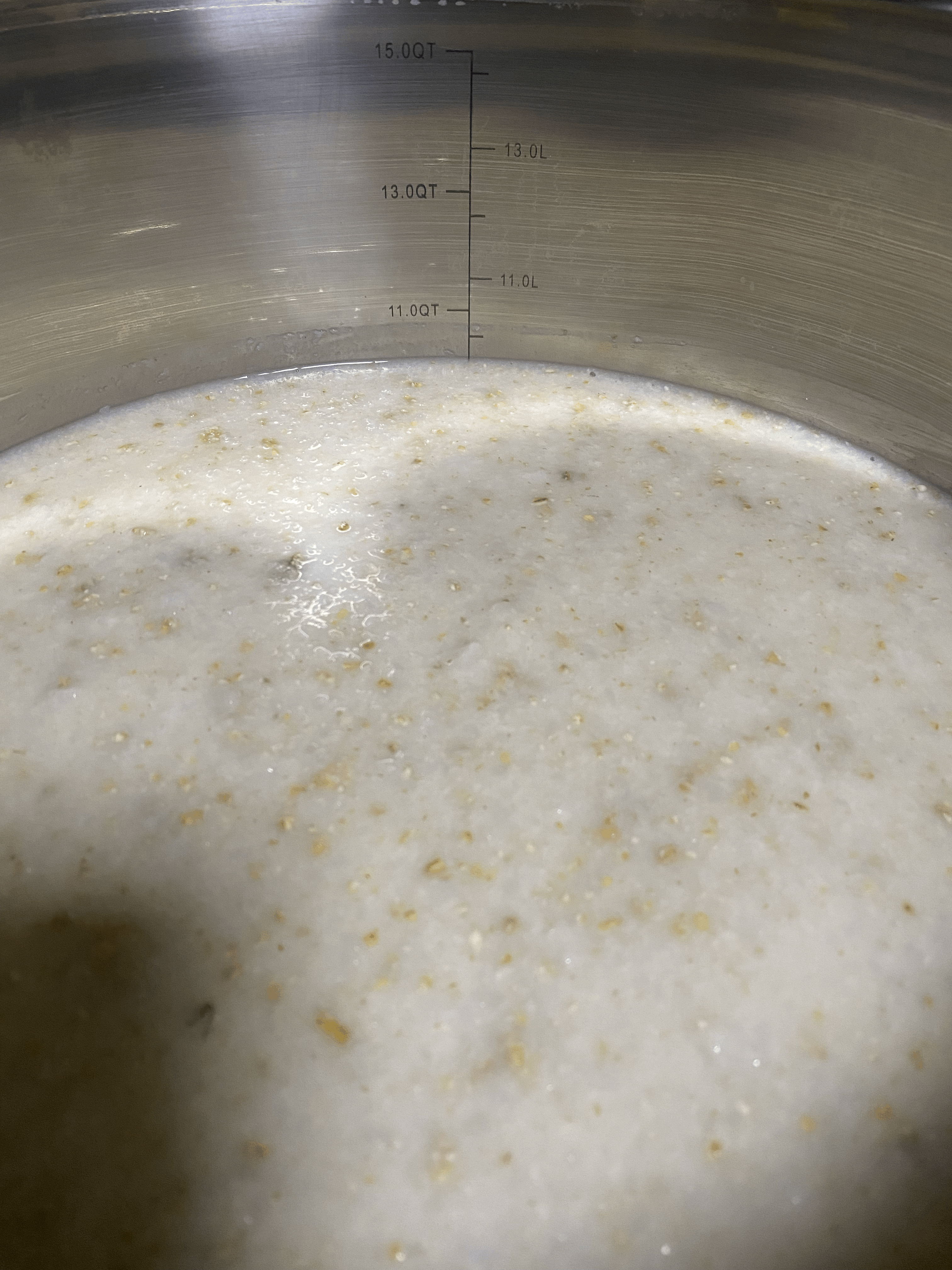 - 이 솥은 15L 곰솥이며, 현재 9.5L정도의 부피를 유지하고 있다. 이 밑술은 범벅이 아닌 죽을 썼고, 평범한 양산형 누룩인 진주곡자를 썼기 때문에 넘치지는 않을 것으로 예상한다. (2/16.목.22:20)