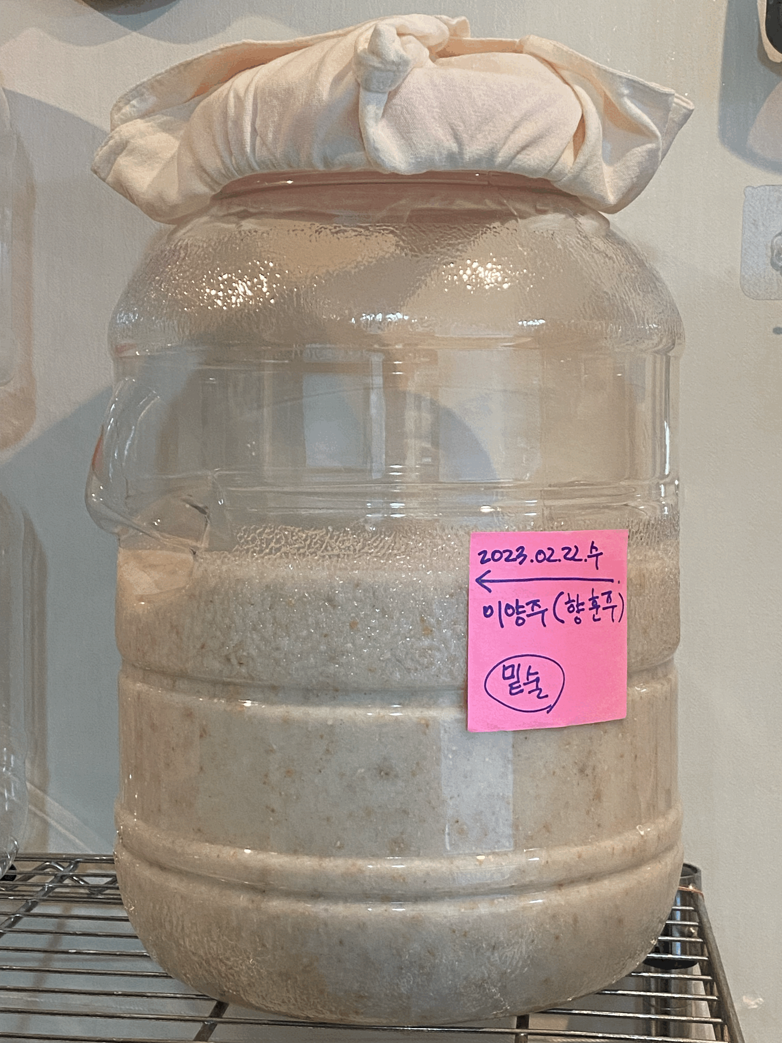 - [2/22.수] 밑술(통쌀죽) = 멥쌀 1.6kg(2되) + 물 7L(10사발) + 누룩 900g(1되5홉)