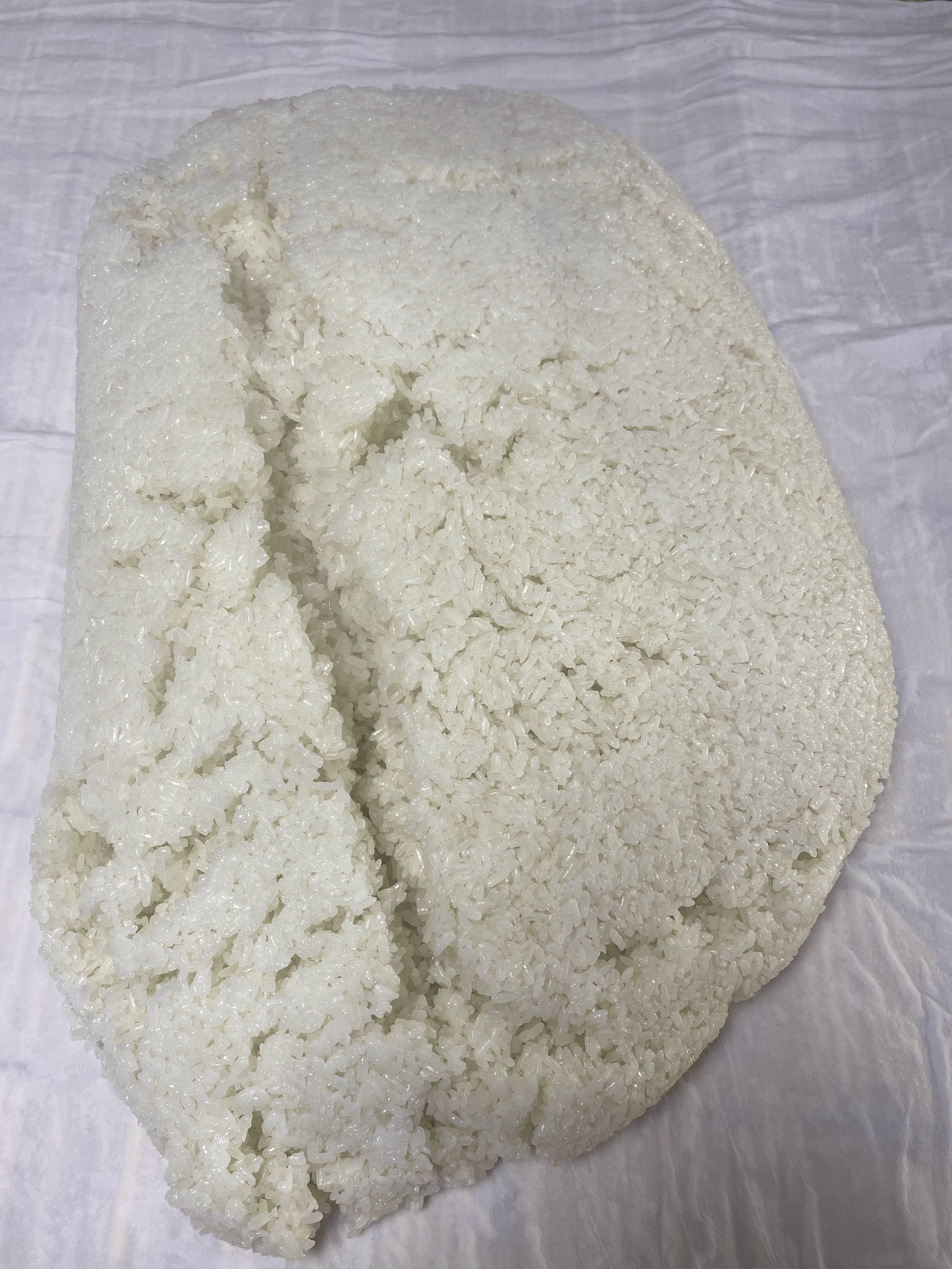 - 식힌 고두밥과 거른 밑술을 잘 치대어 22L 술독에 넣고 뚜껑을 꽉 닫아 (가스 빠질 정도만 살짝 열어둠) 보쌈해서 주발효를 진행한다.식힌 고두밥을 밑술과 치대기 전 (2/26.일.18:28)