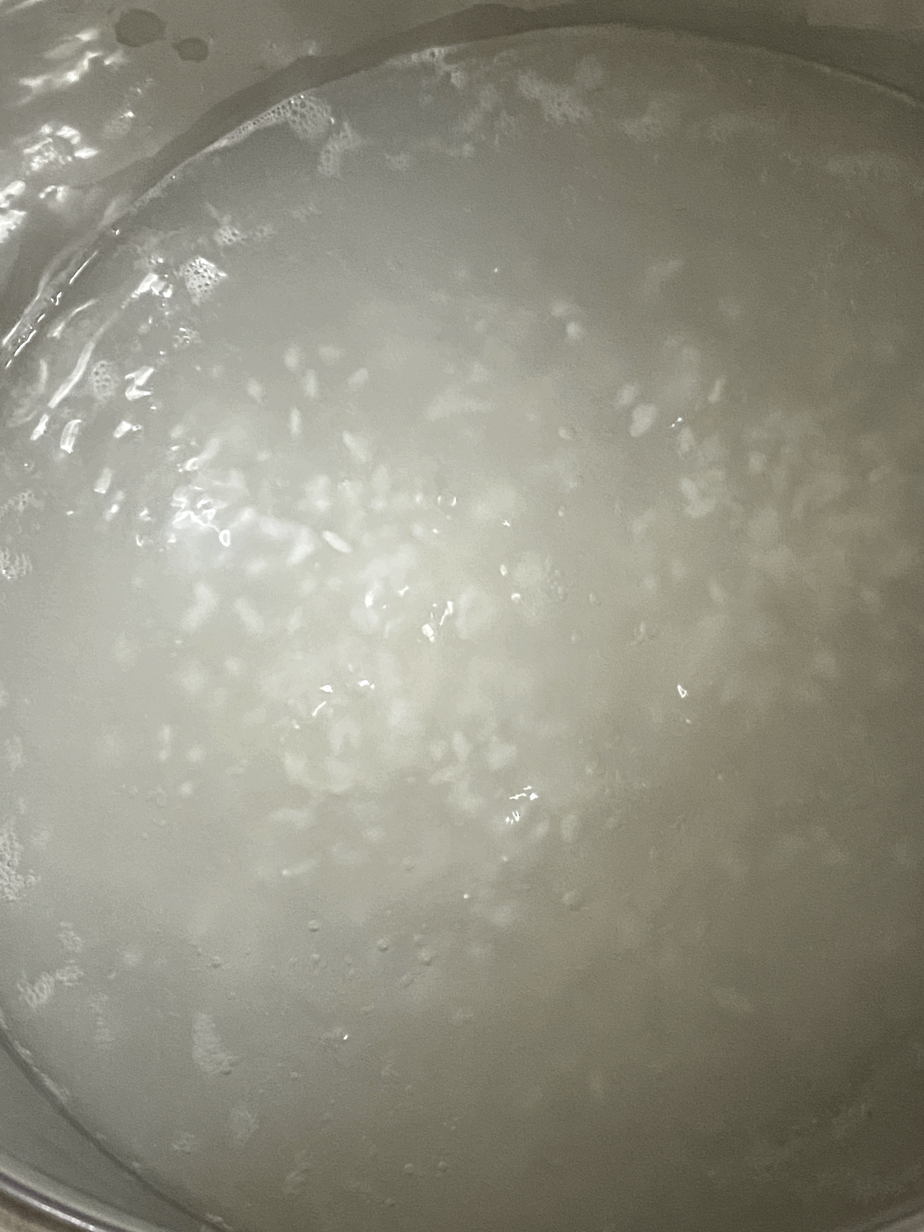 - 불린 쌀의 절반을 넣고 끓이기 시작한 뒤 4분 뒤 끓음 (2/21.화.23:37, 죽 끓이기 시작한지 4분 지남)