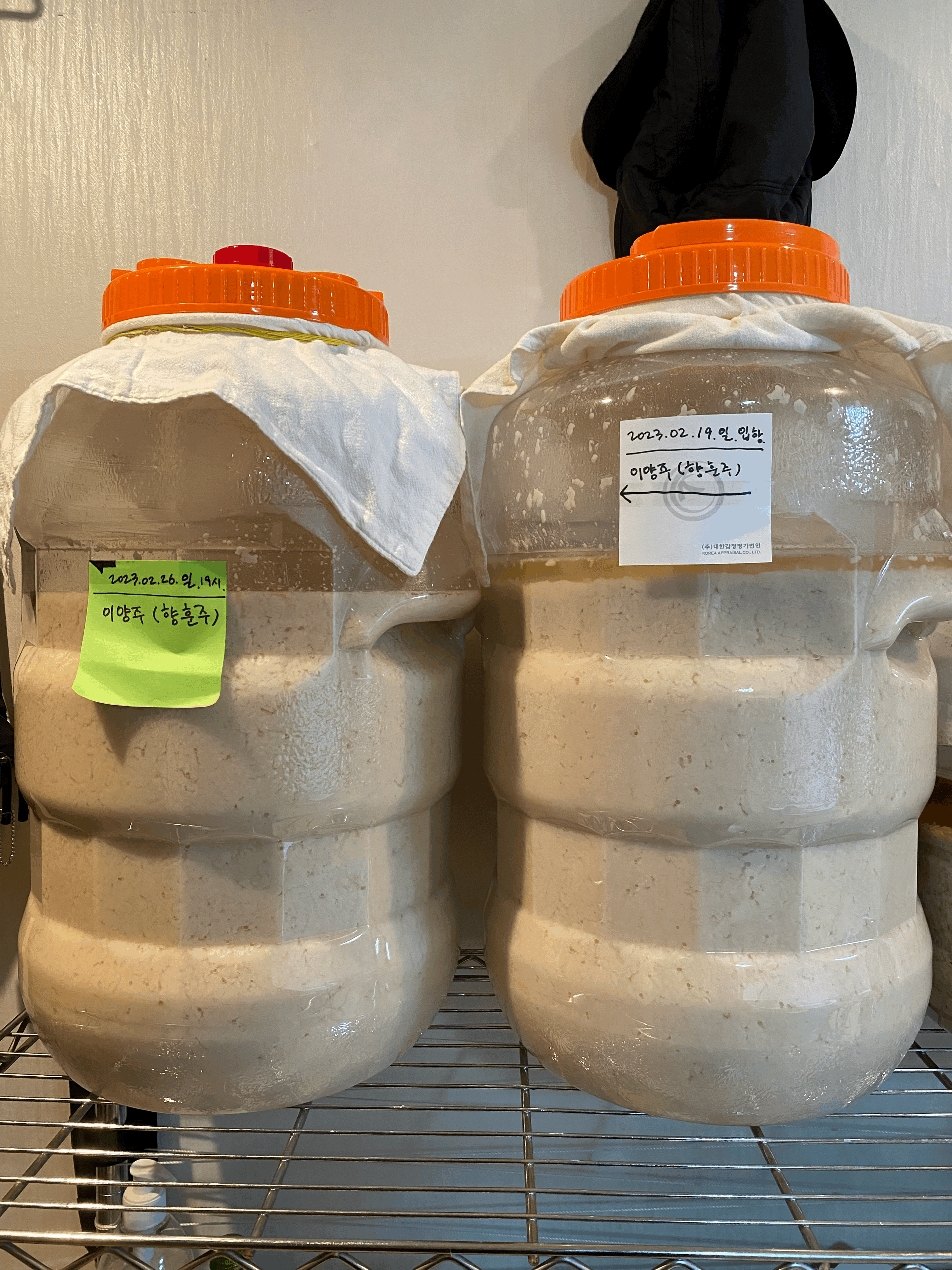 - 재료 상세 → 멥쌀: 지인의 처가에서 농사지어 올려보낸 쌀(품종모름) → 찹쌀: 햅쌀(코스트코 미이랑/혼합품종) → 물: 스파클 생수 → 누룩: 진주곡자(우리밀=조경밀)