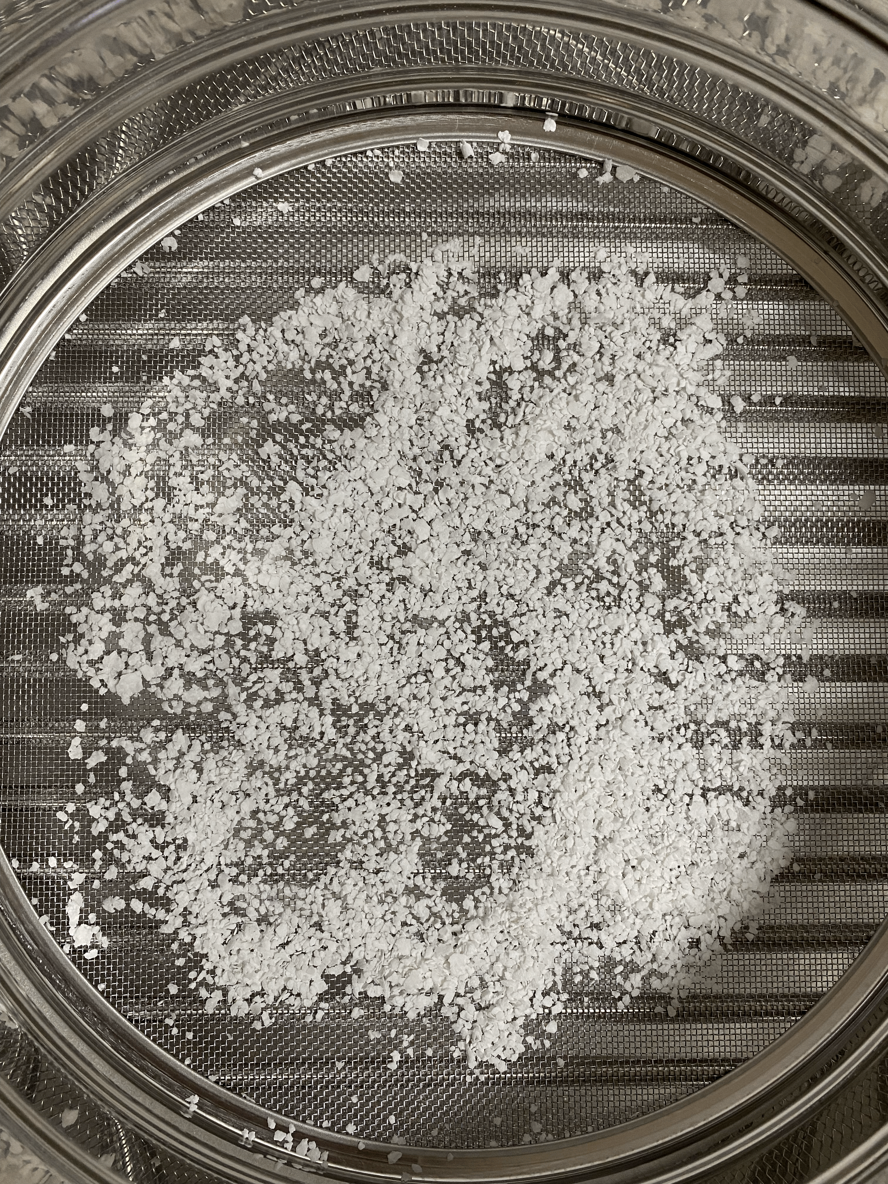 중간체로 먼저 거른 뒤에 150메쉬 거름망으로 걸러볼까 했더니 중간체로 거르는 것 보다 150메쉬 거름망을 쓰는 편이 작업도 편하고 효율도 더 좋다. 결국 중간체로 거르다가 중간체는 치워버리고 50메쉬 거름망으로 거른 뒤 다시 150메쉬 거름망으로 걸렀다. 50메쉬 거름망으로 거를 때 너무 눌러 짜지 않고 대충 짰고, 남은 지게미에 냉장고에 있던 생수 500mL를 섞어 막걸리로 짜내니 막걸리가 3L 정도 나왔다. 술독 바닥에 가라앉아 뭉쳐있는 생전분이 남아 있으면 이번에는 술 거를 때 쓰지 않으려했었는데, 없었다.