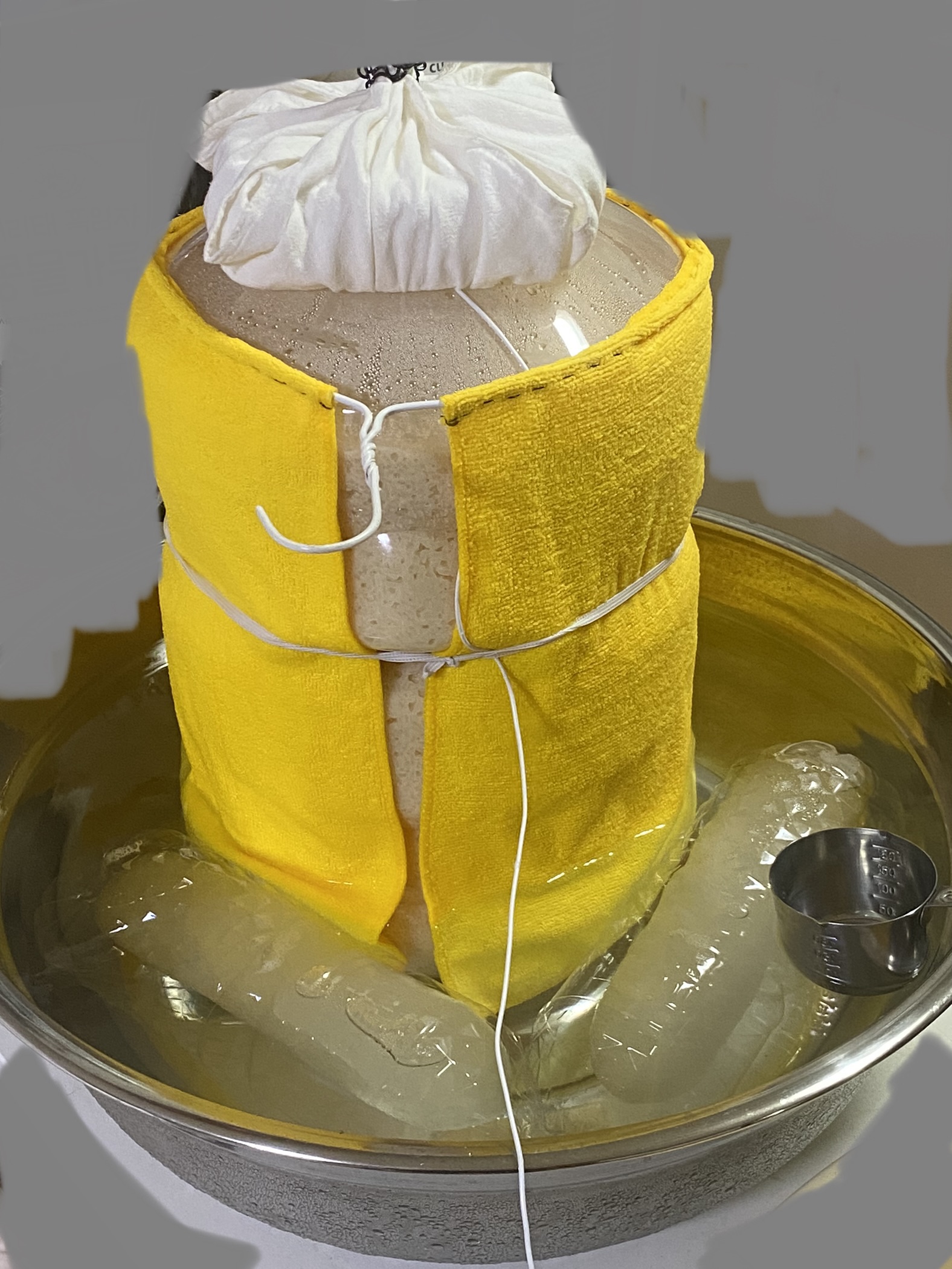 → 밑술을 냉각시킬 때는 냉각팩, 보쌈, 온도계를 사용할 예정 (주발효 후 5일간 15~20℃로 유지하며 냉각시킨 뒤 덧술 시기를 지연시킬 예정)