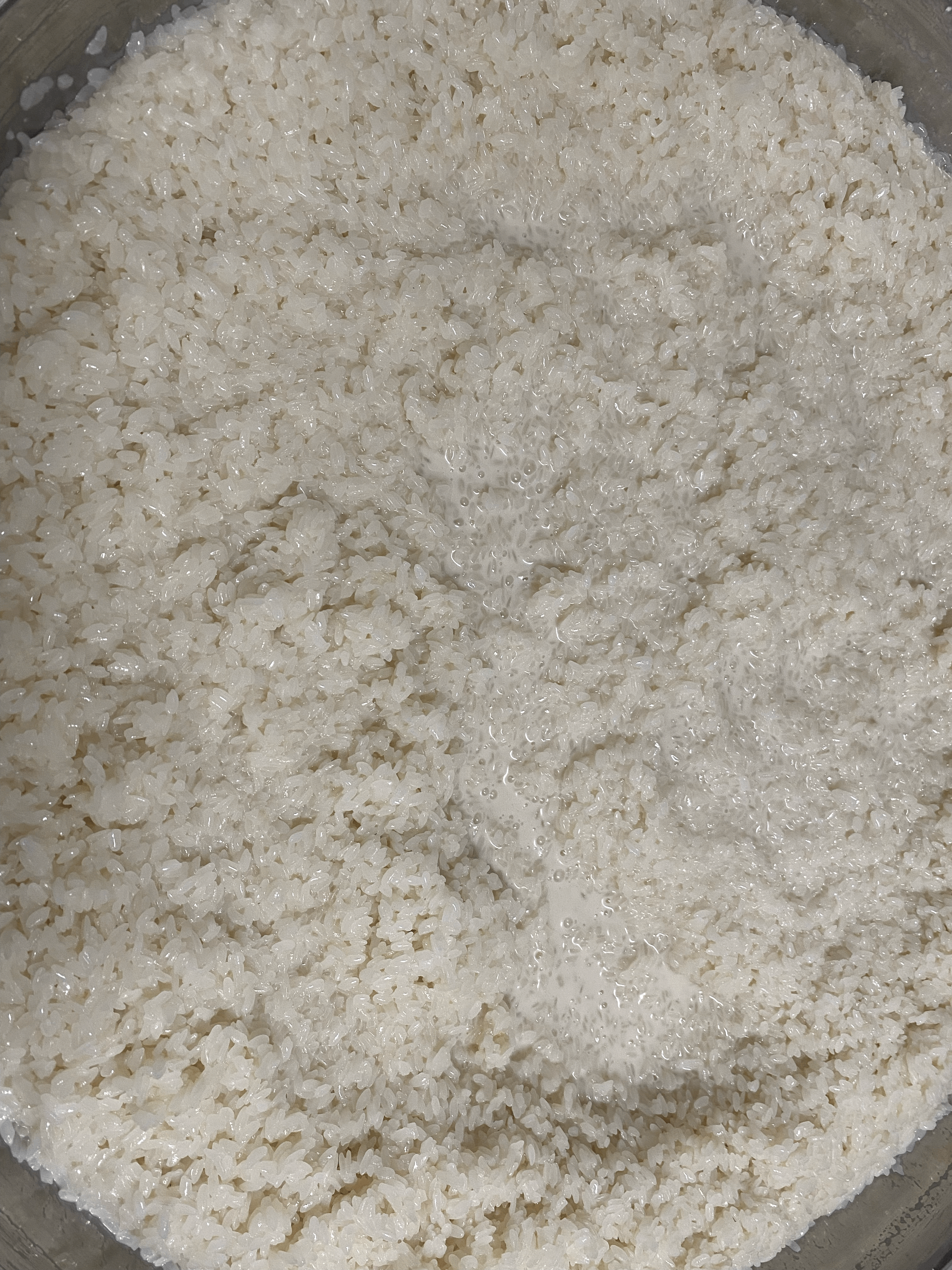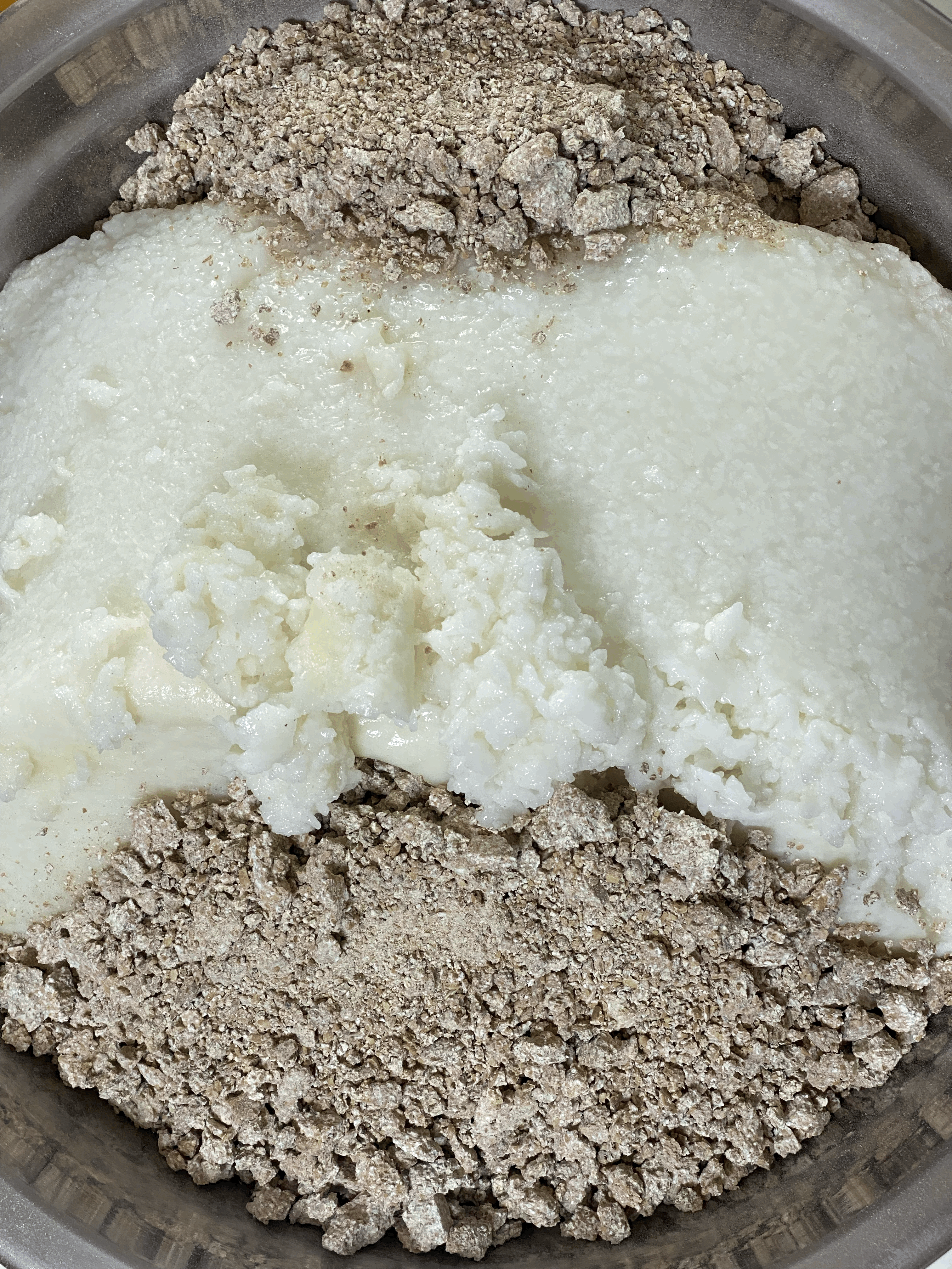 - 식은 통쌀죽 덩어리 위에 약간(약 50mL)의 수분이 남아있길래 그 수분을 따라내서 버림.