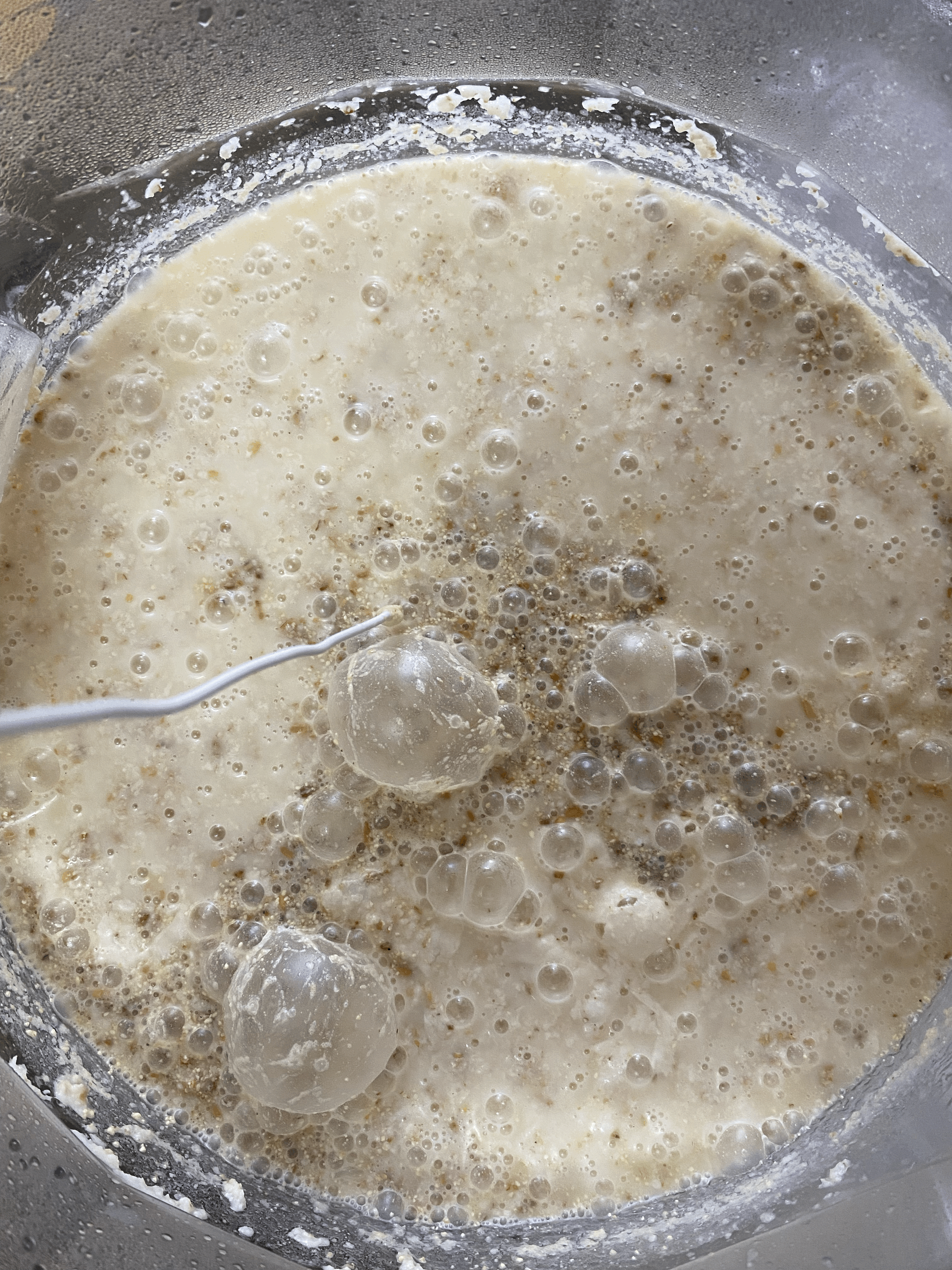 - 밑술 윗면의 기포활동 영상 (기포 터지는 소리도 남)