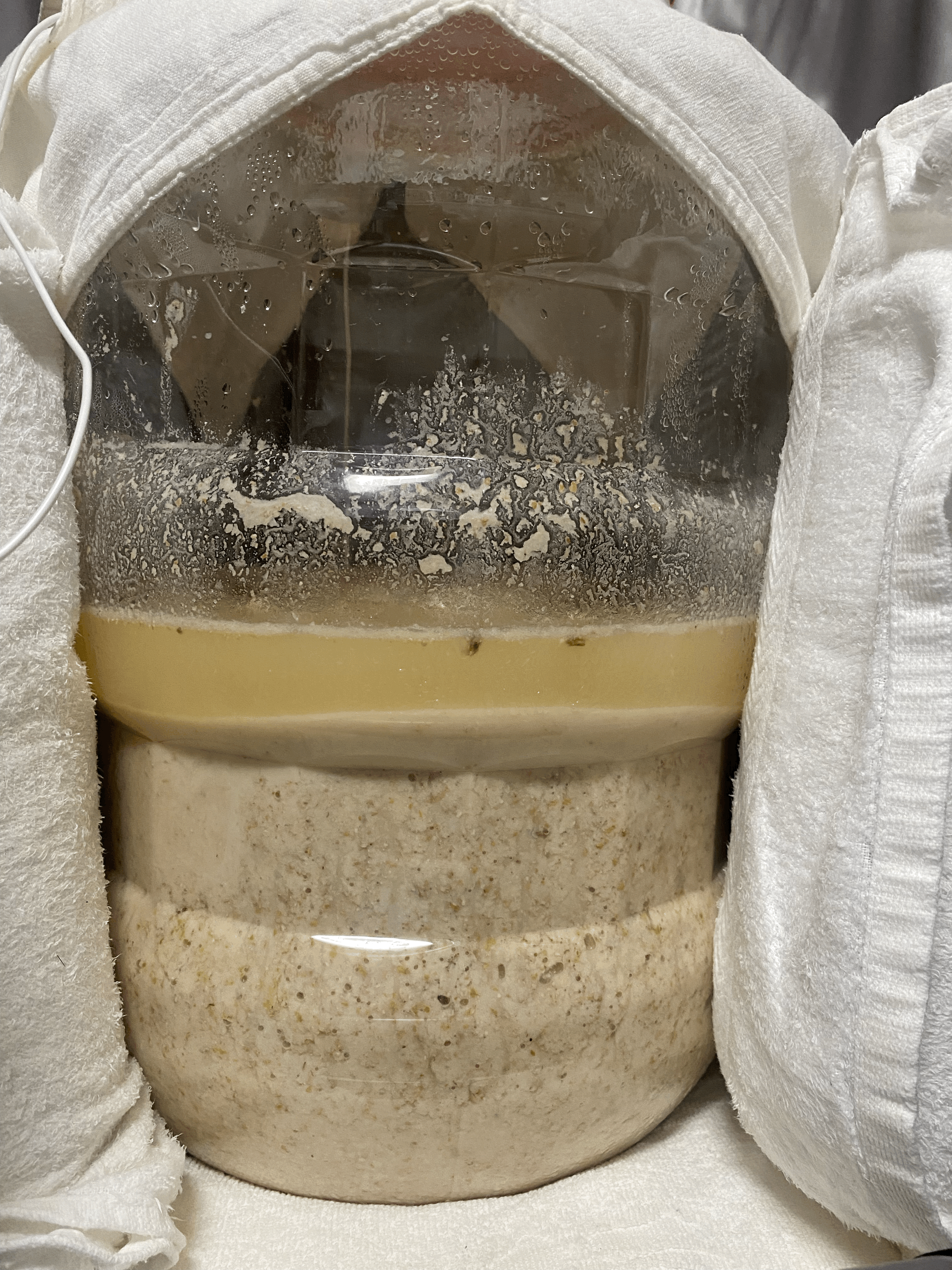(죽 치고는 물이 적은 편이고, 당화와 발효의 밸런스를 맞추기 위해 평소보다 당화 속도를 늦추기 위해 덜 치댐) - 밑술 후처리