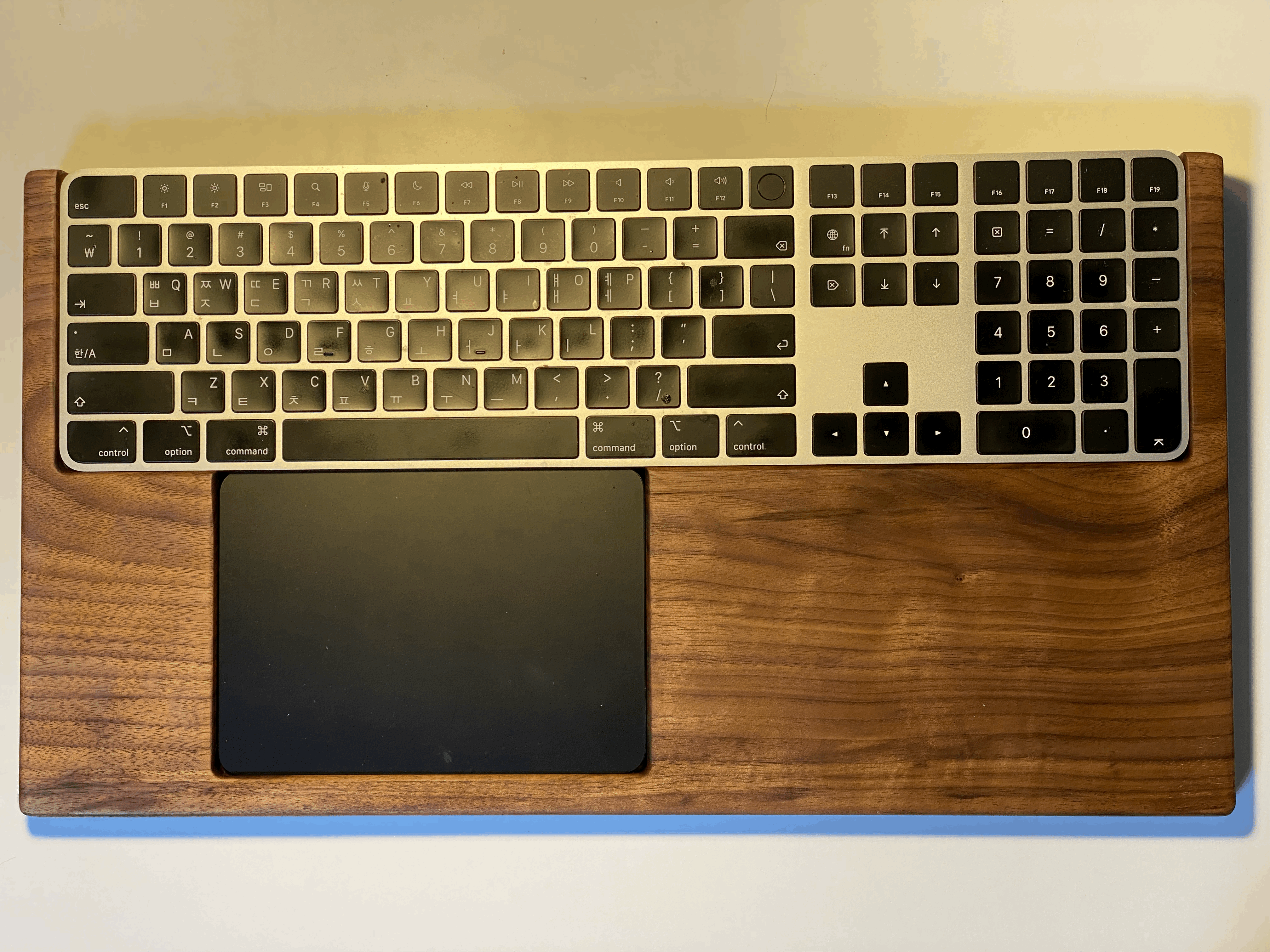 Apple Magic Keyboard Tray Walnut Wood Let your Apple Magic Keyboard be the center of attention. Crafted from solid walnut, this handsome wooden tray makes a handsome accent to your workspace. The base is lined with felt to protect your desk, and keep your
