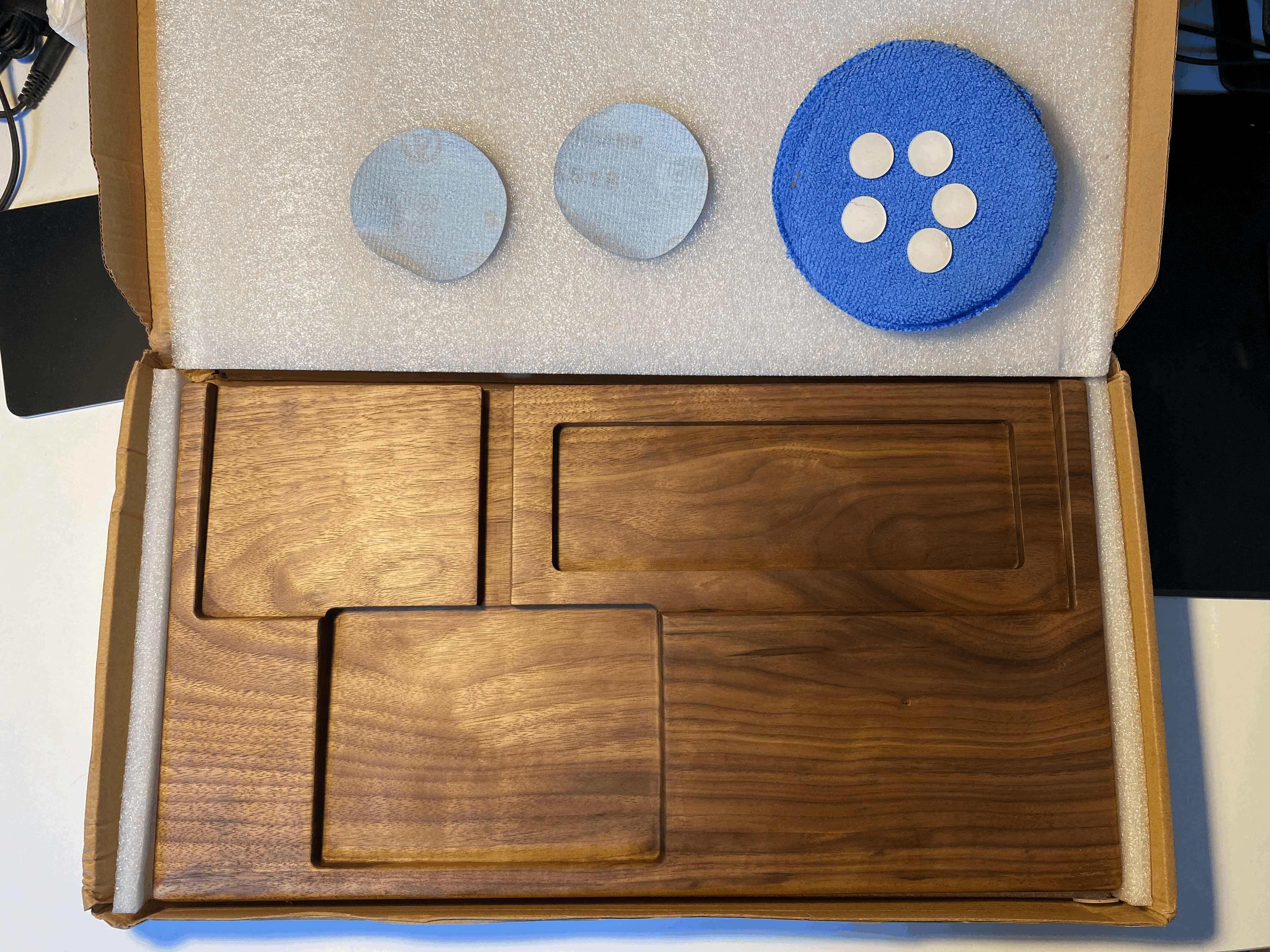 나무 트레이의 바닥면은 금속판이 뒤틀림을 잡아주고 그 아래엔 펠트로 덧대어져 있어 책상 위에서 스윽 밀면 밀려서 이 점은 애초에 구매할 때 부터 필수 기능으로 생각하고 알아봤던 기능이었다.
