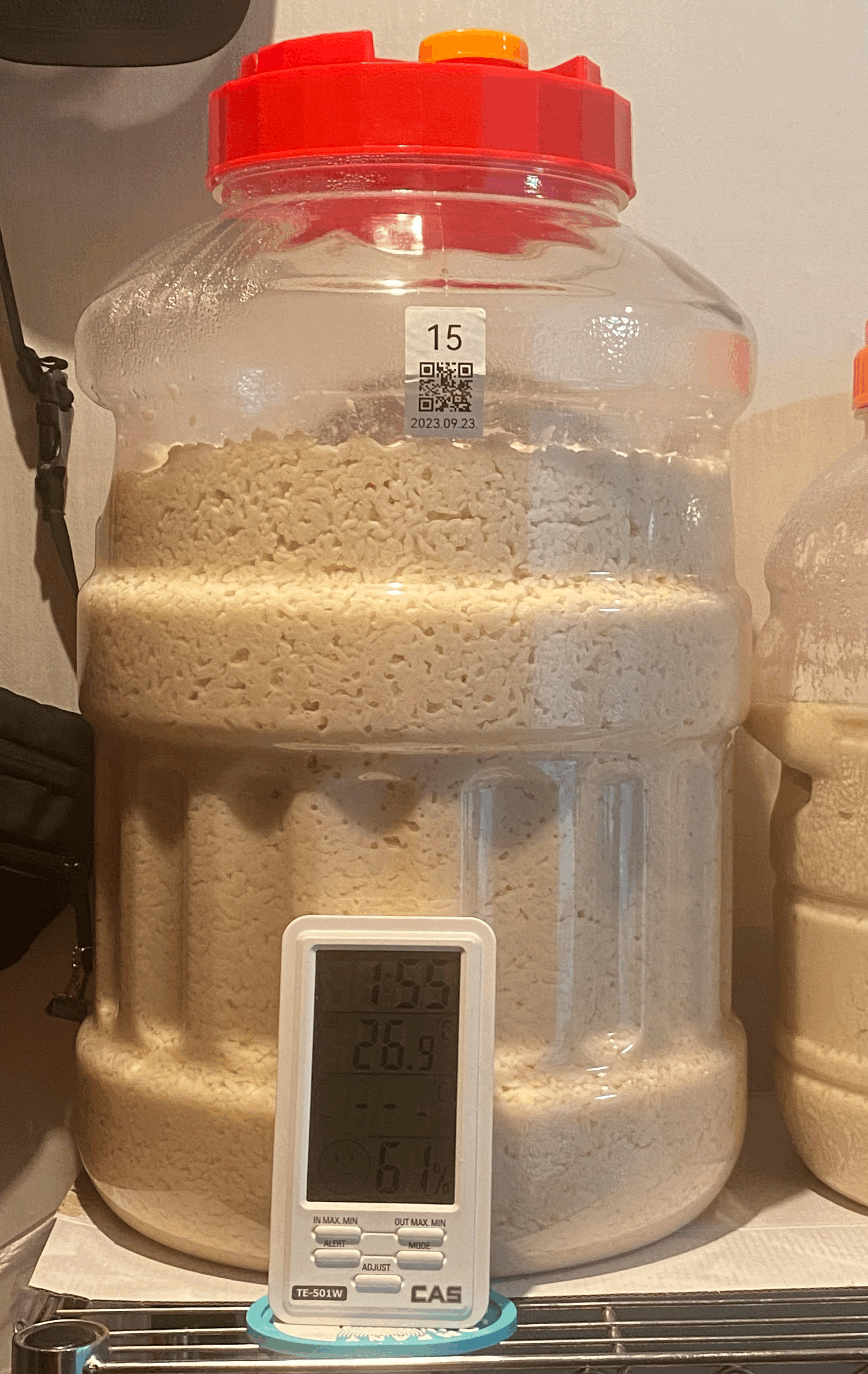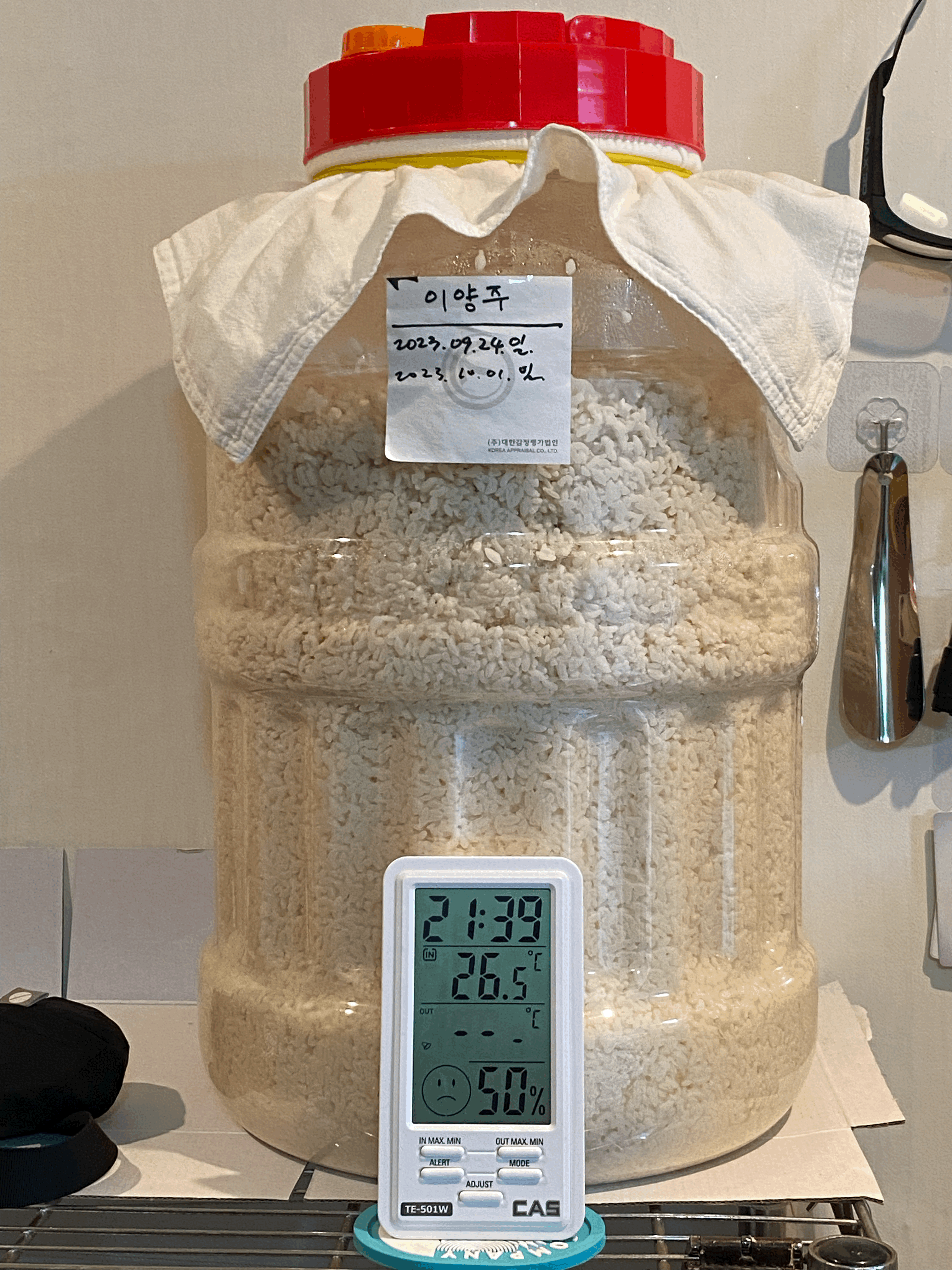 - 후수하기 위해 술독 뚜껑을 열어서 고두밥을 확인해보니 표면이 마르지는 않았음.