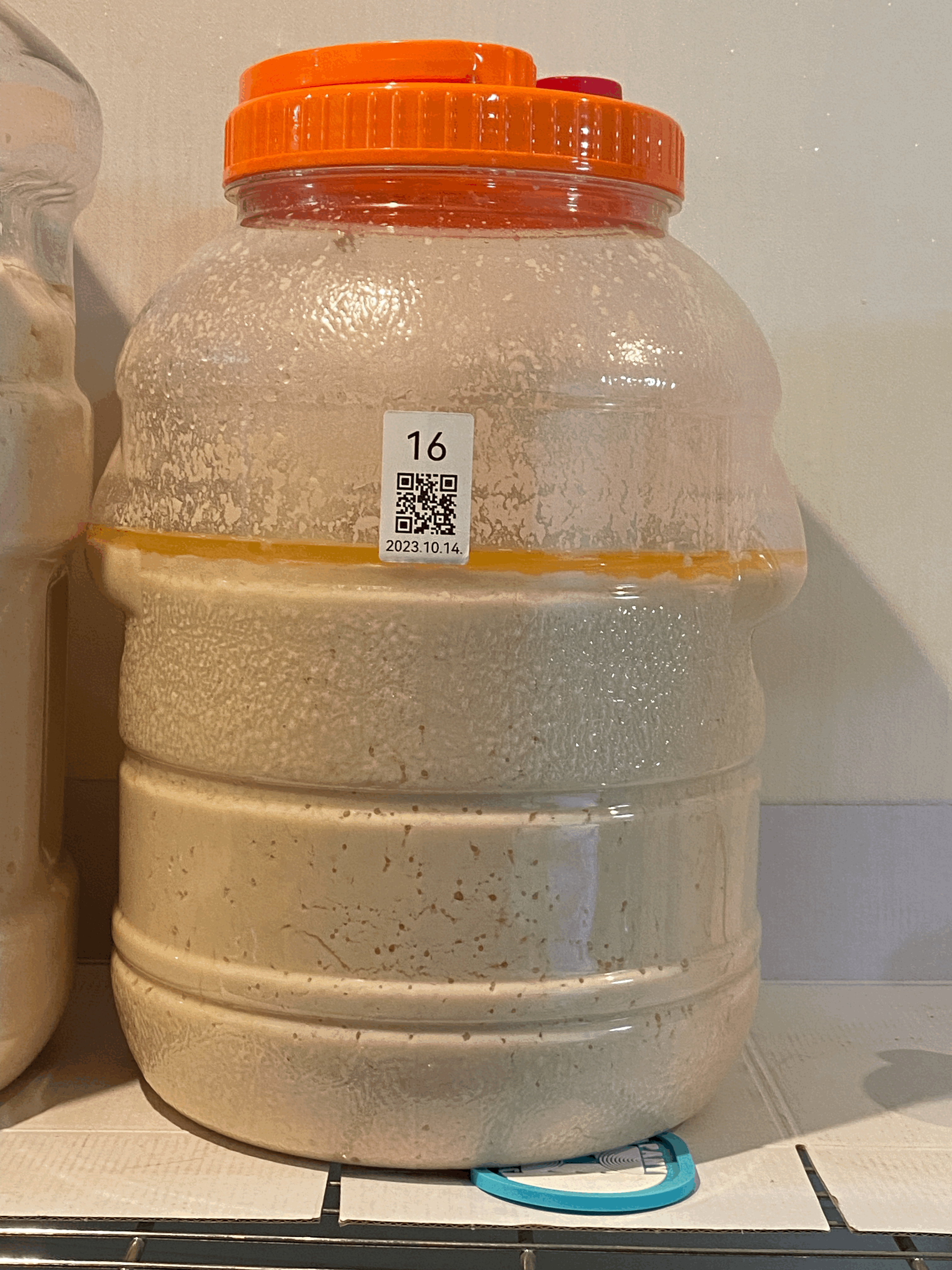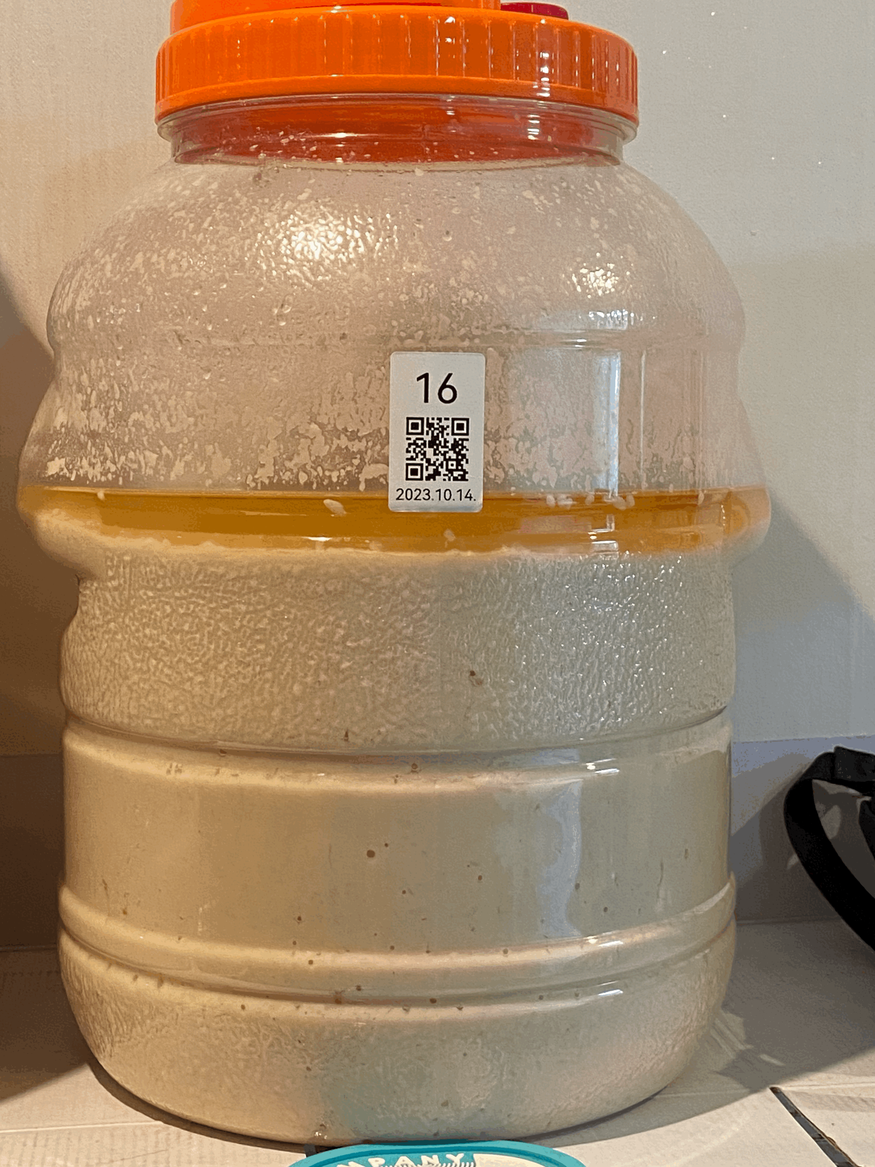 - 후발효가 끝났는지 확인하기 위해 술덧을 다시 흔들어서 기포를 최대한 빼줌. (아마 거의 끝난듯)