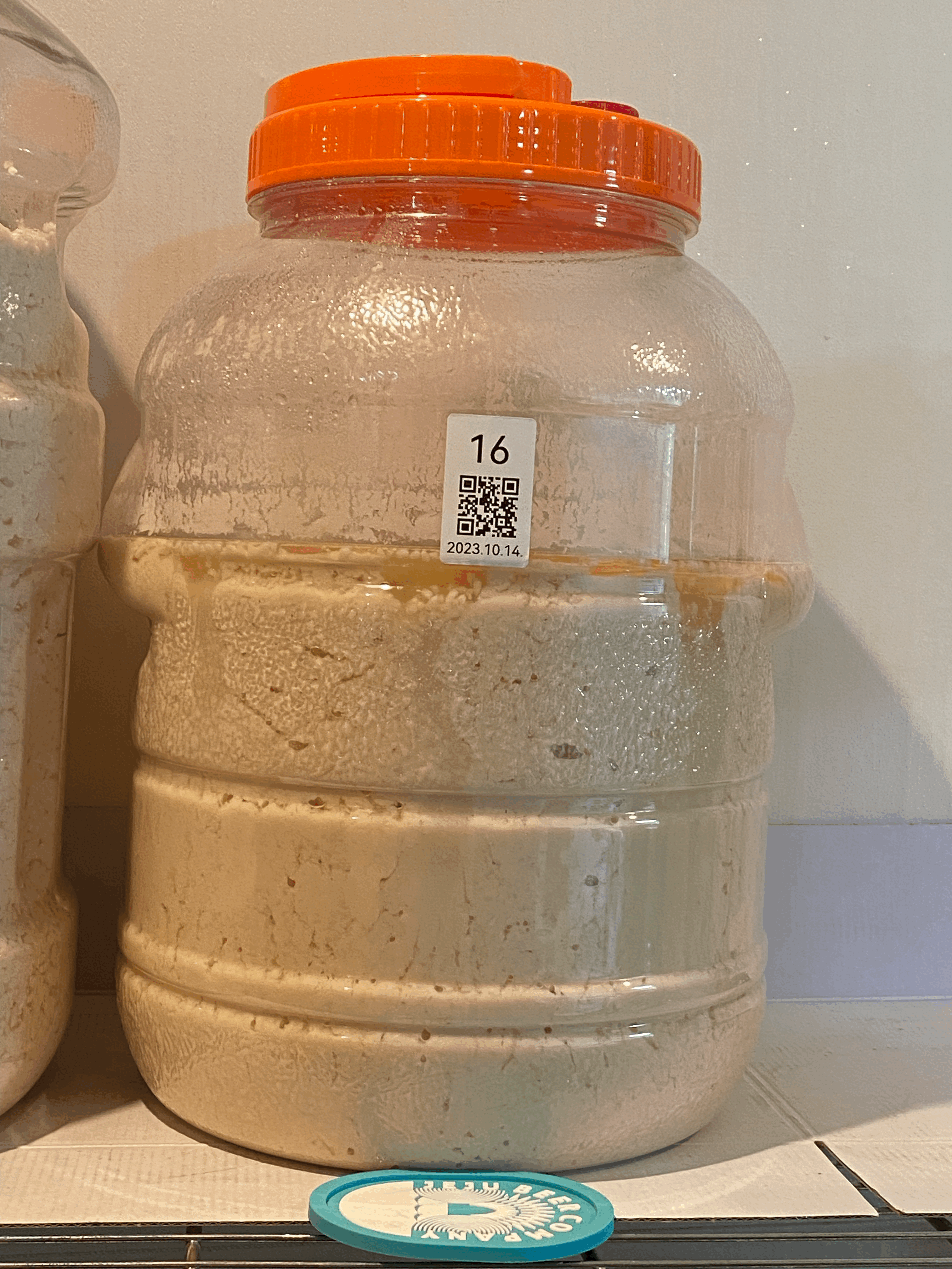 - 술독을 만져보니 어제 밤 보다 픔온이 식었고, 기포 터지는 속도가 느려졌길래 이제 혐기성 발효를 하면서 알코올을 많이 생성하라고 뚜껑을 닫아줌.