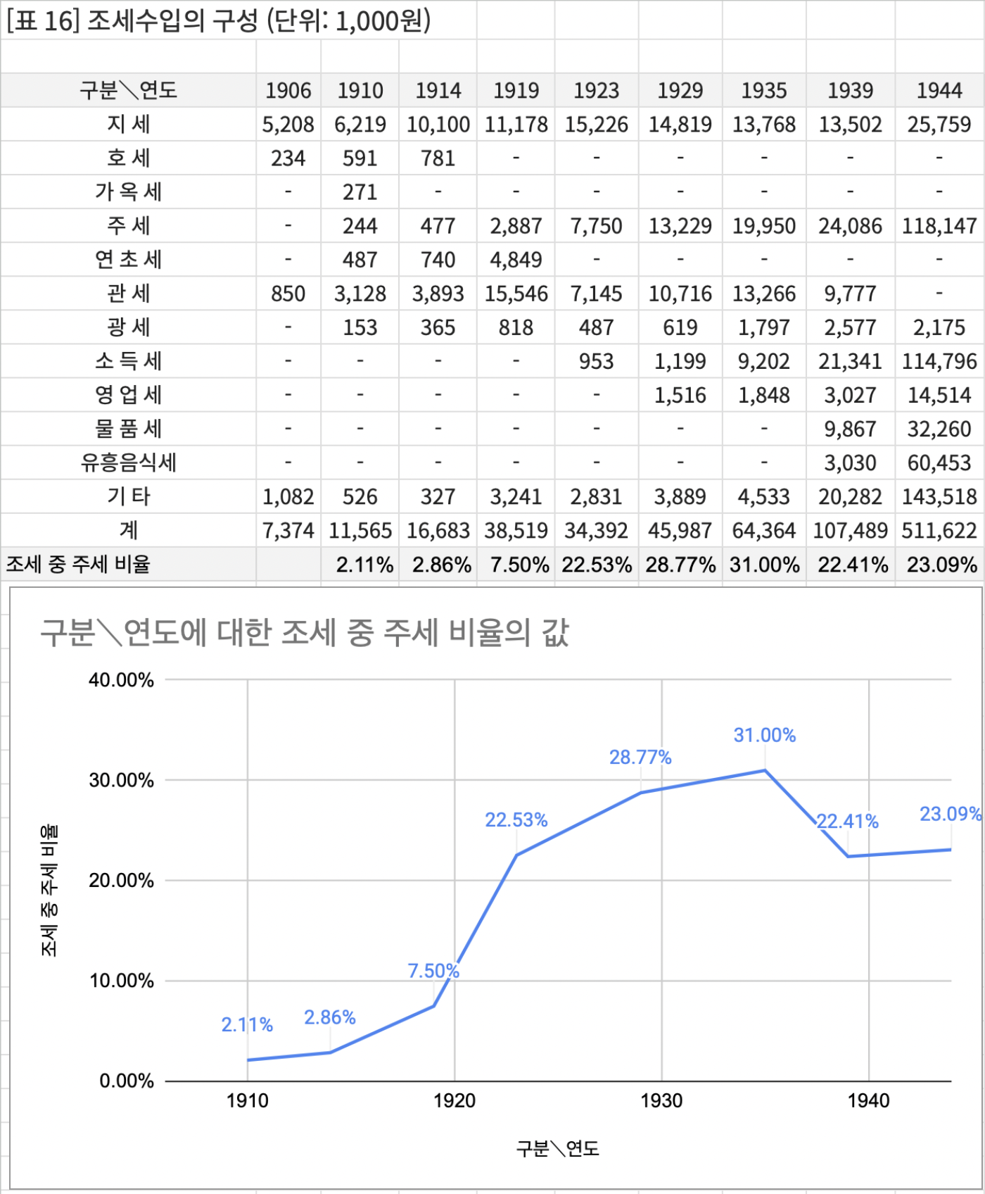 이후 1937년에 일본이 중국을 공격하여 중일전쟁이 발발할 시점에 이르러야 일본의 식량 수탈이 극심해져 술 빚을 쌀이 모자라니 주세는 줄어들어 20% 초반대를 유지하지 않았나 추정해본다.