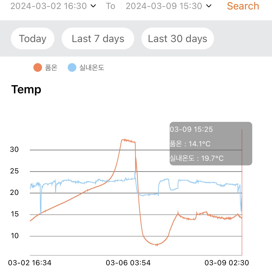 - 집에 와서 보니 아까 22시 무렵에 확인했을 때만 해도 품온은 가파르게 상승 중이었는데, 갑자기 품온 상승이 멈췄다.