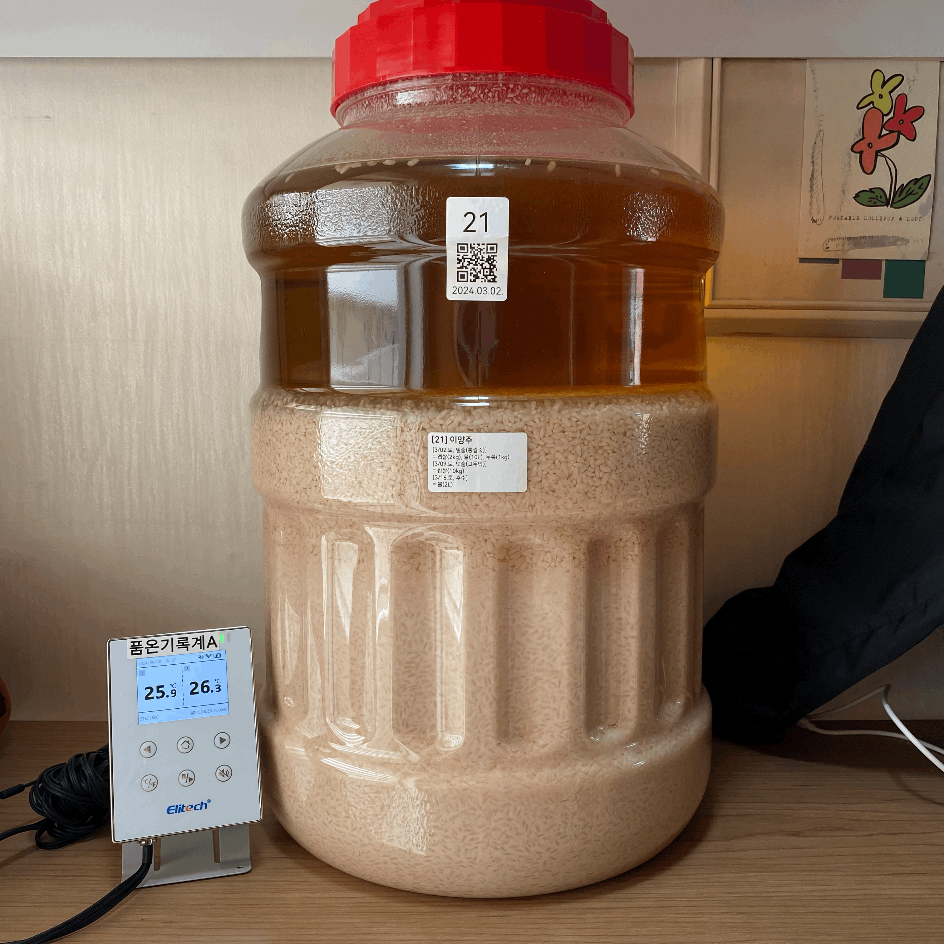 - 덧술한지 1주일이 지났을 때 술맛 점검을 해봐서 끓이지 않은 실온의 생수를 최대 2L 이내로 추가할 예정.