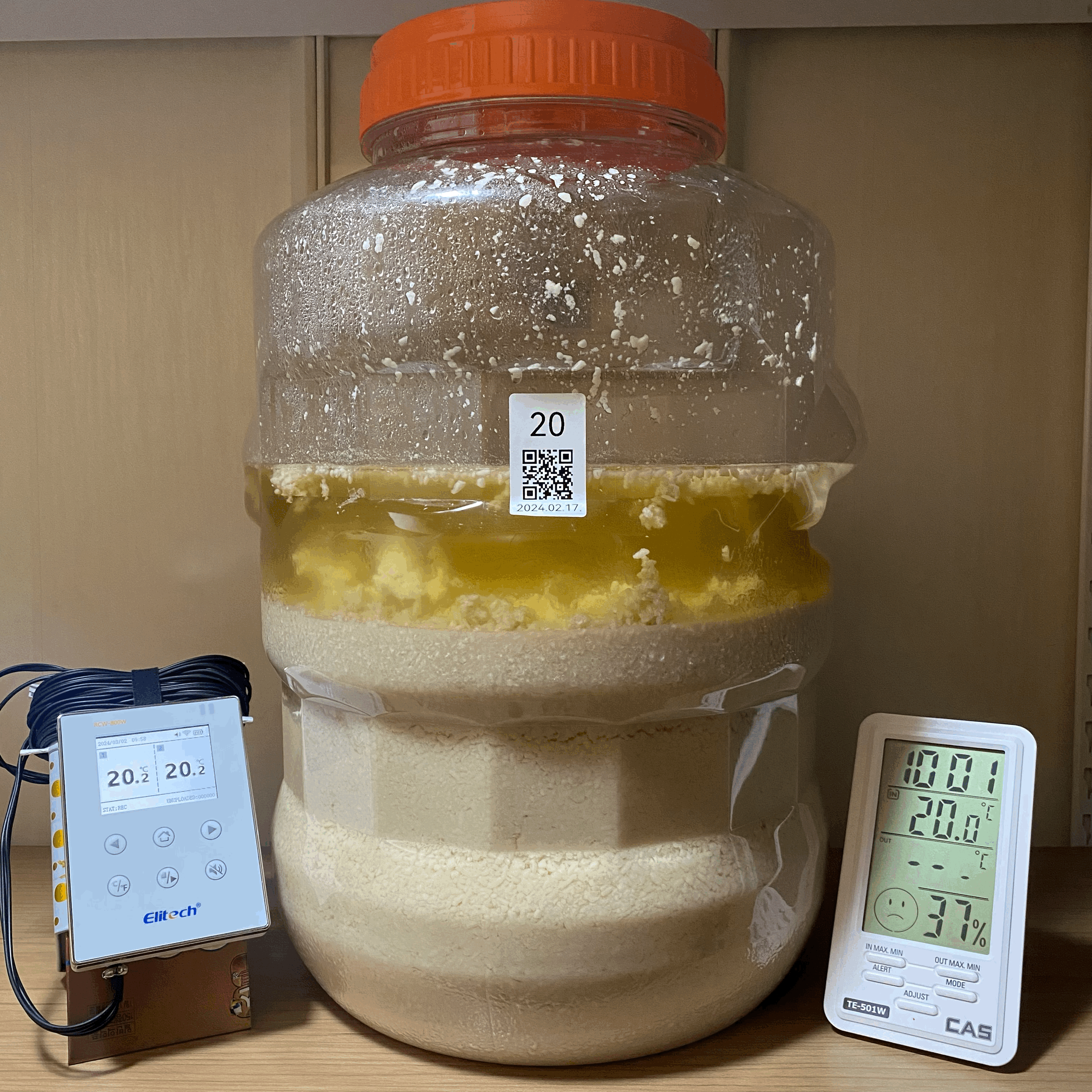 품온이 확실히 꺾였고, 이미 술 안친지 5박6일이나 되었기 때문에 면포를 제거하고, 품온 센서 제거하고, 사진 찍은 후 뚜껑을 잠궜다.