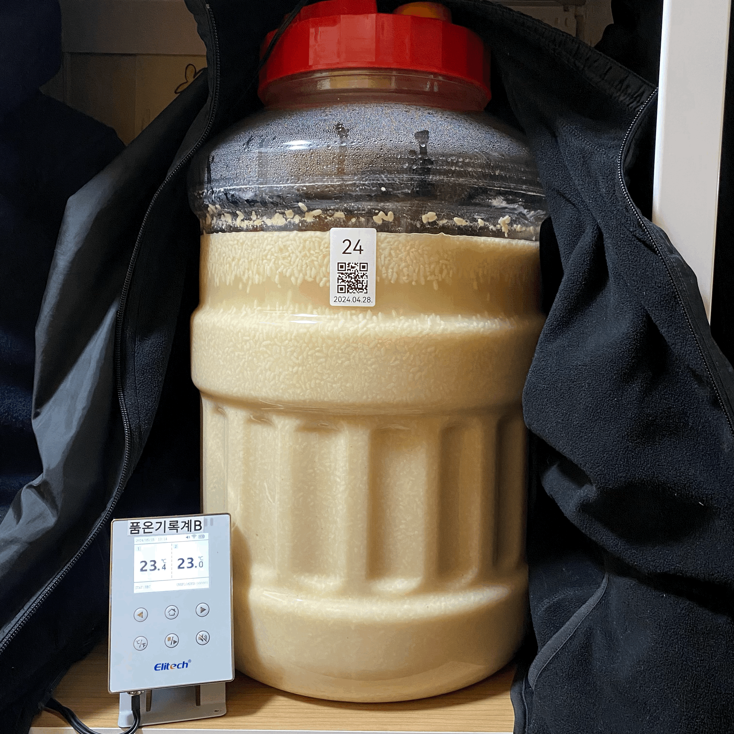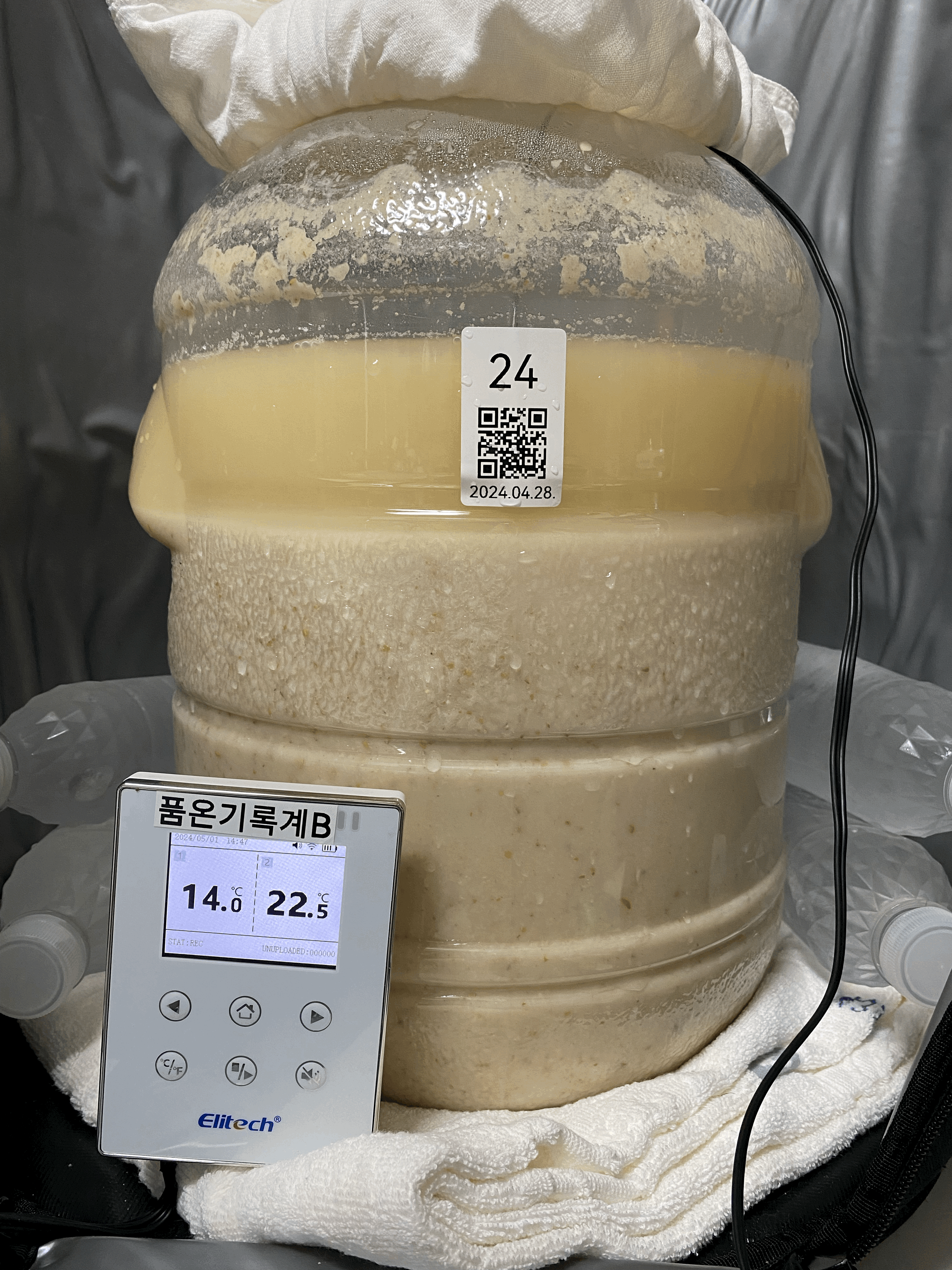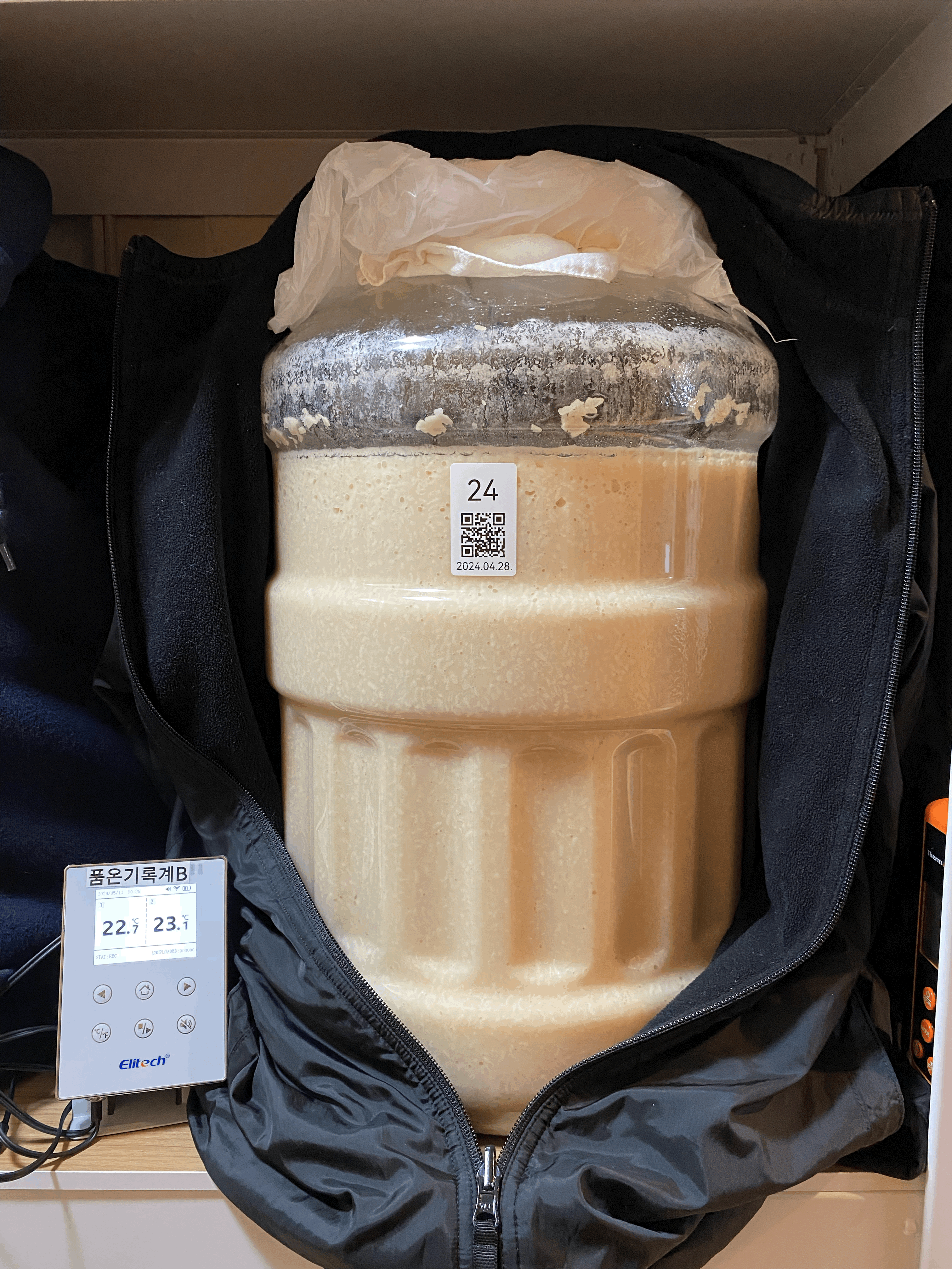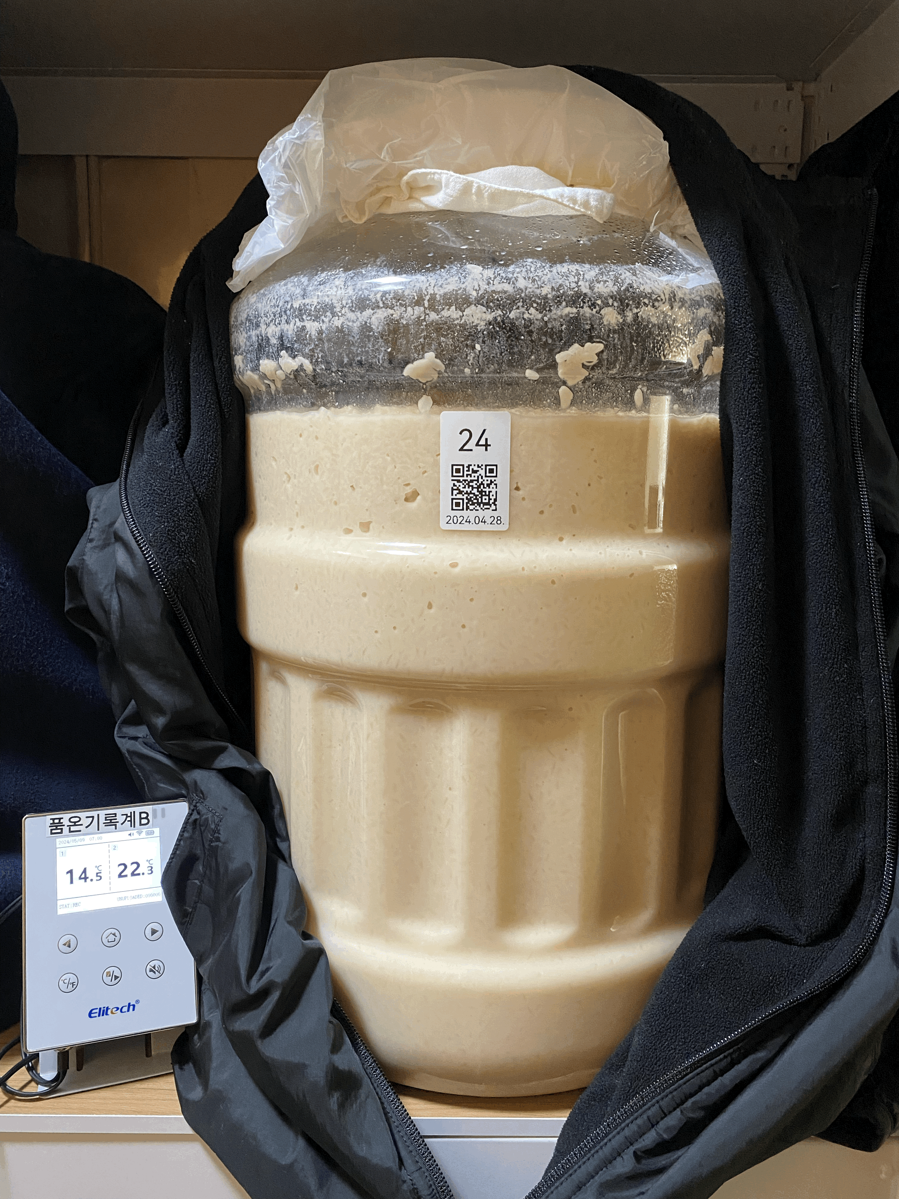 2024.05.01.수.14시반 (밑술 + 2일 14시간반) → 냉각종료 & 저온 후발효 시작