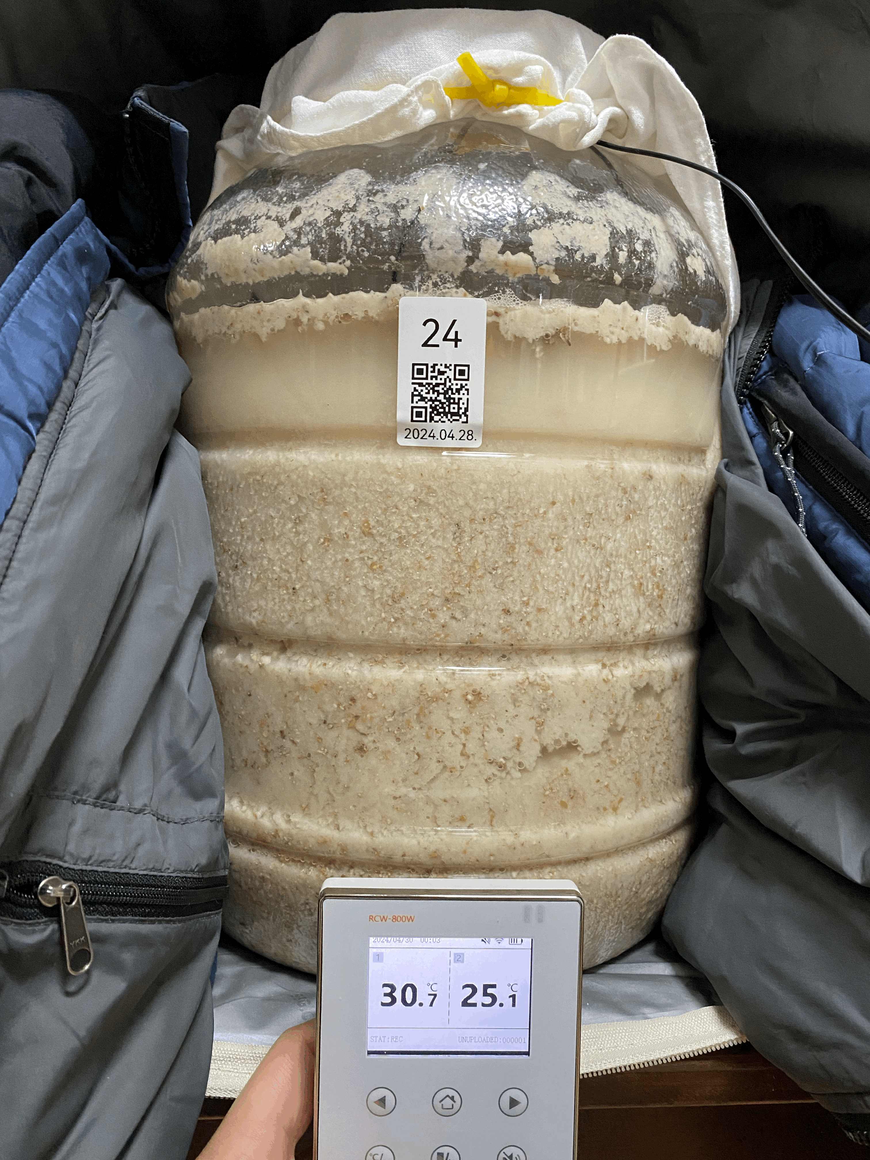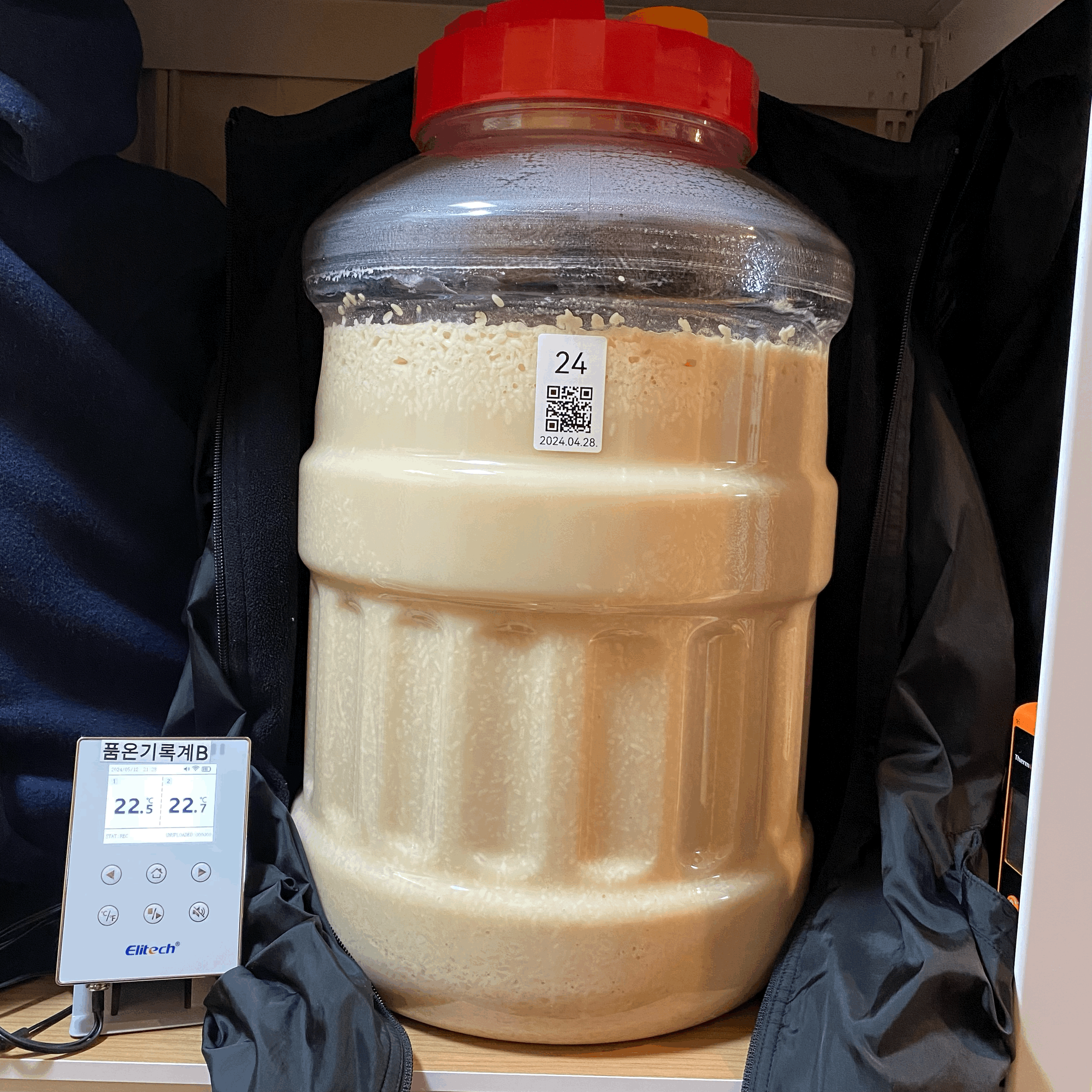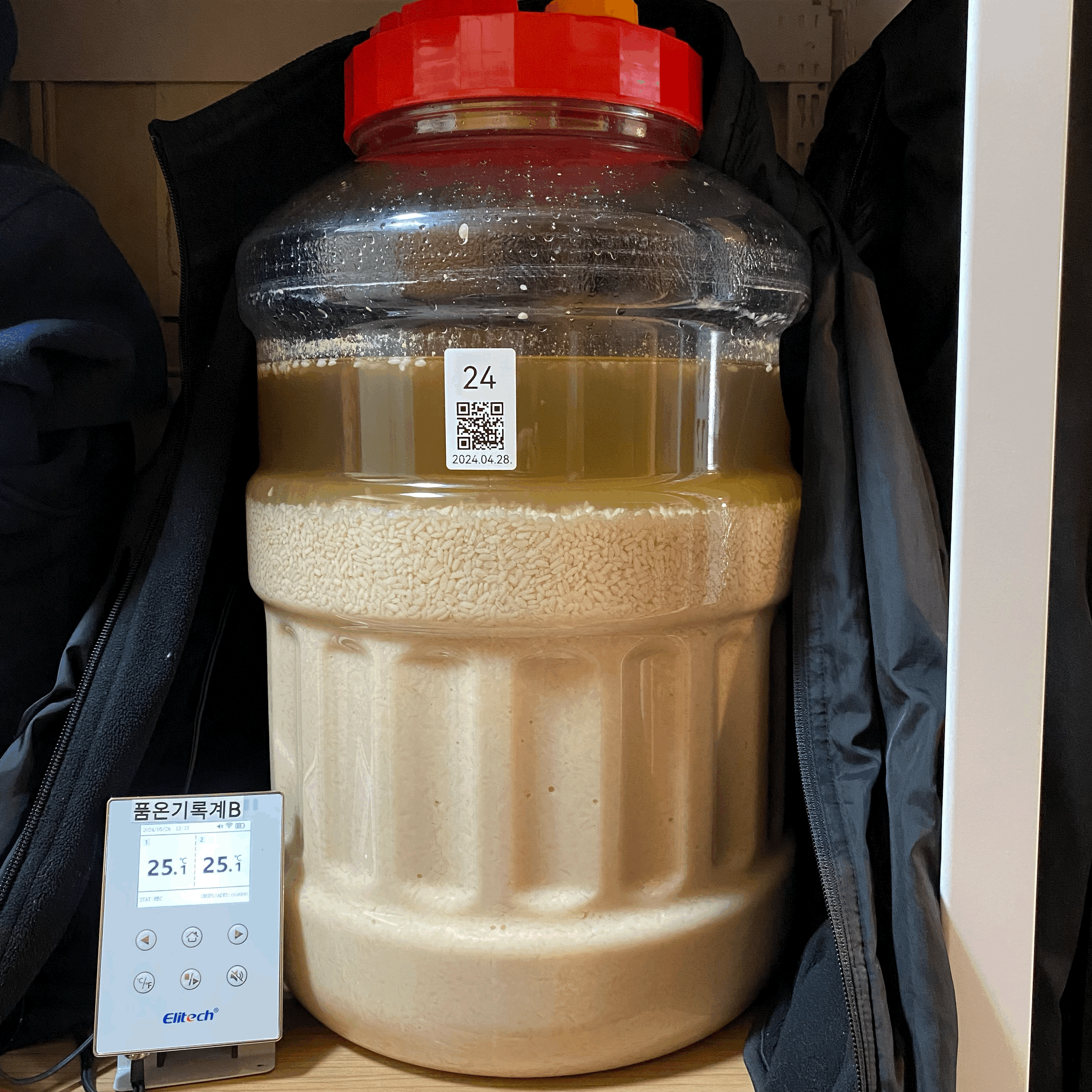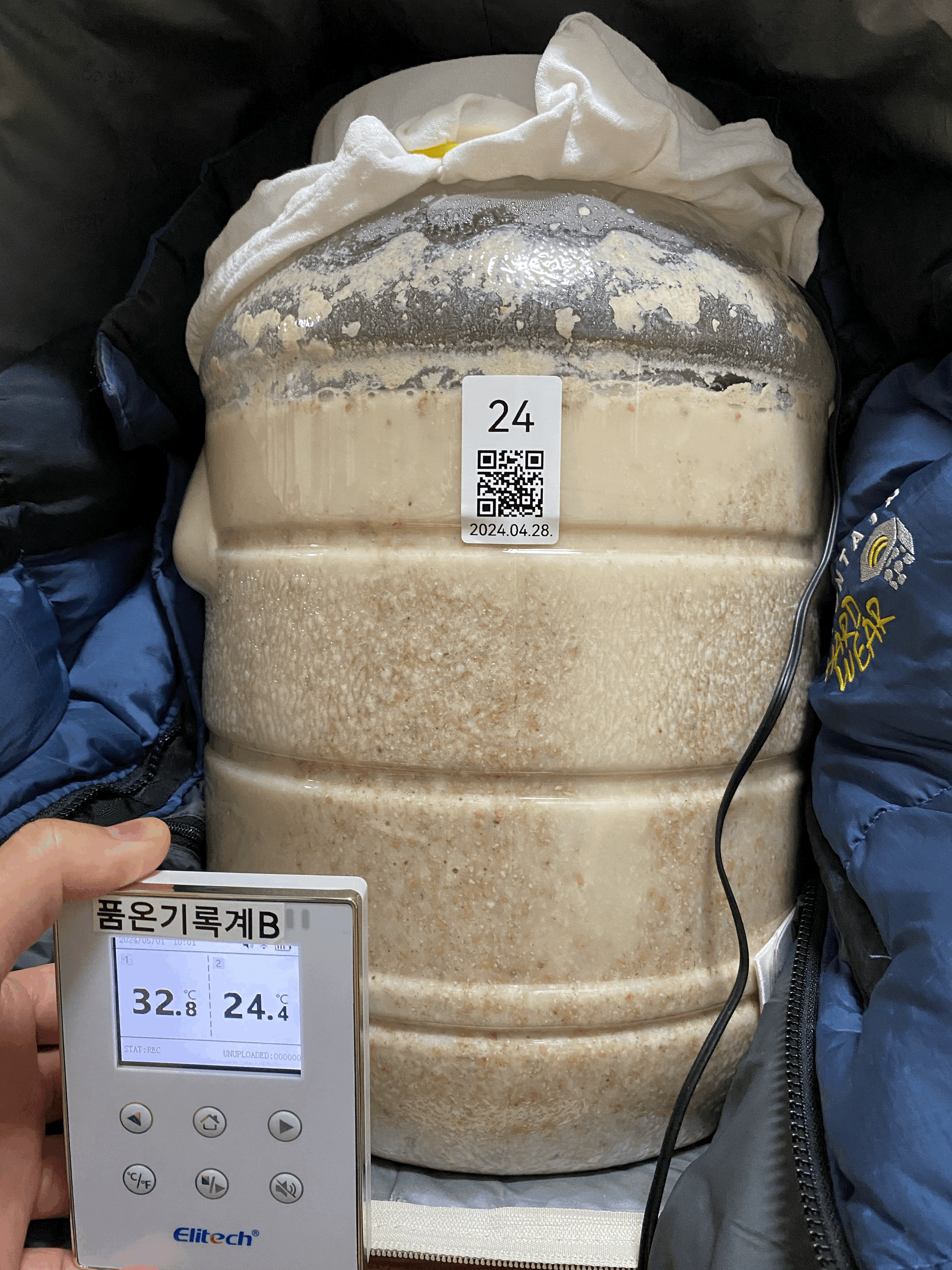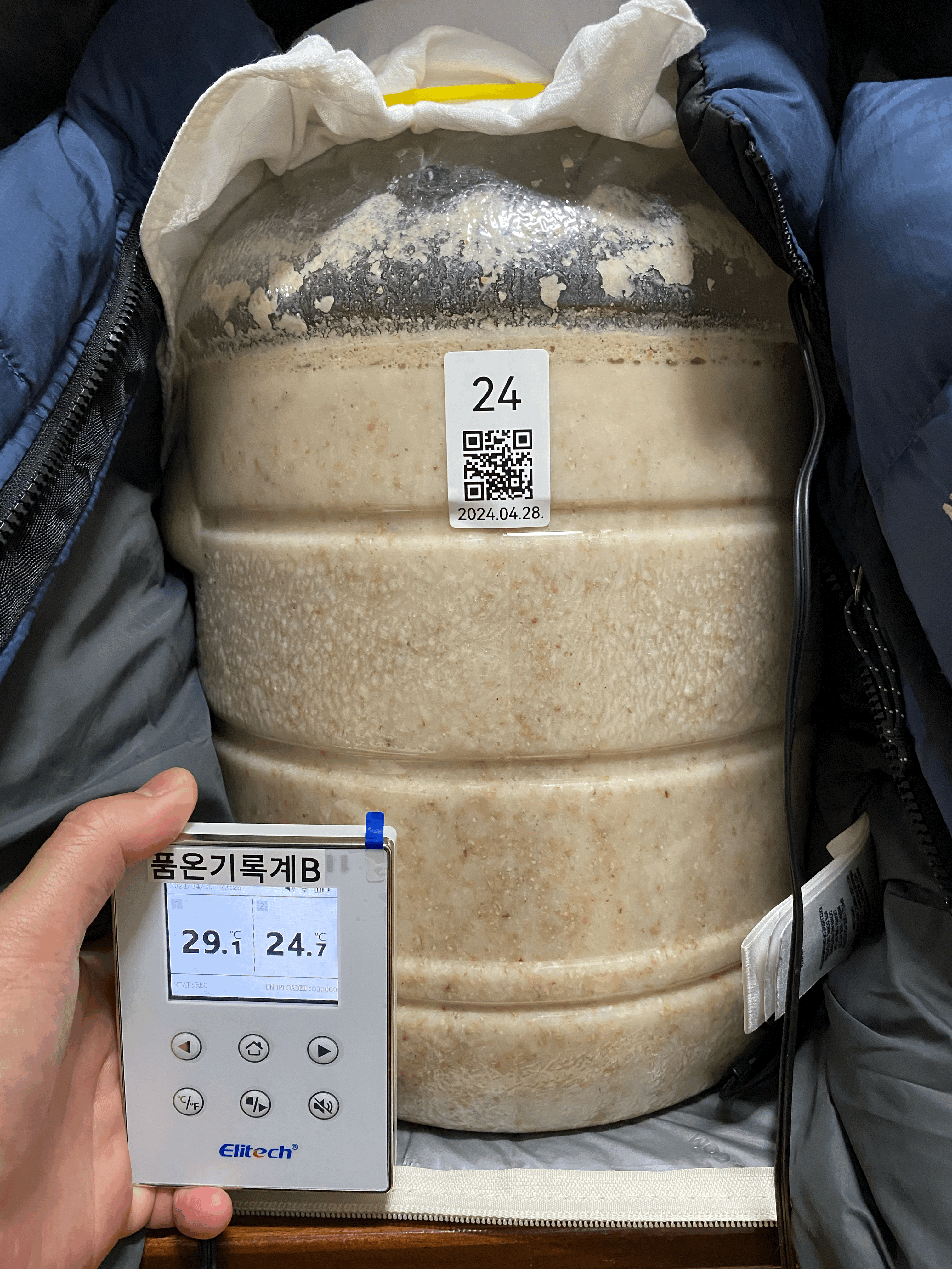 2024.05.01.수.14시반 (밑술 + 2일 14시간반) → 냉각종료 & 저온 후발효 시작