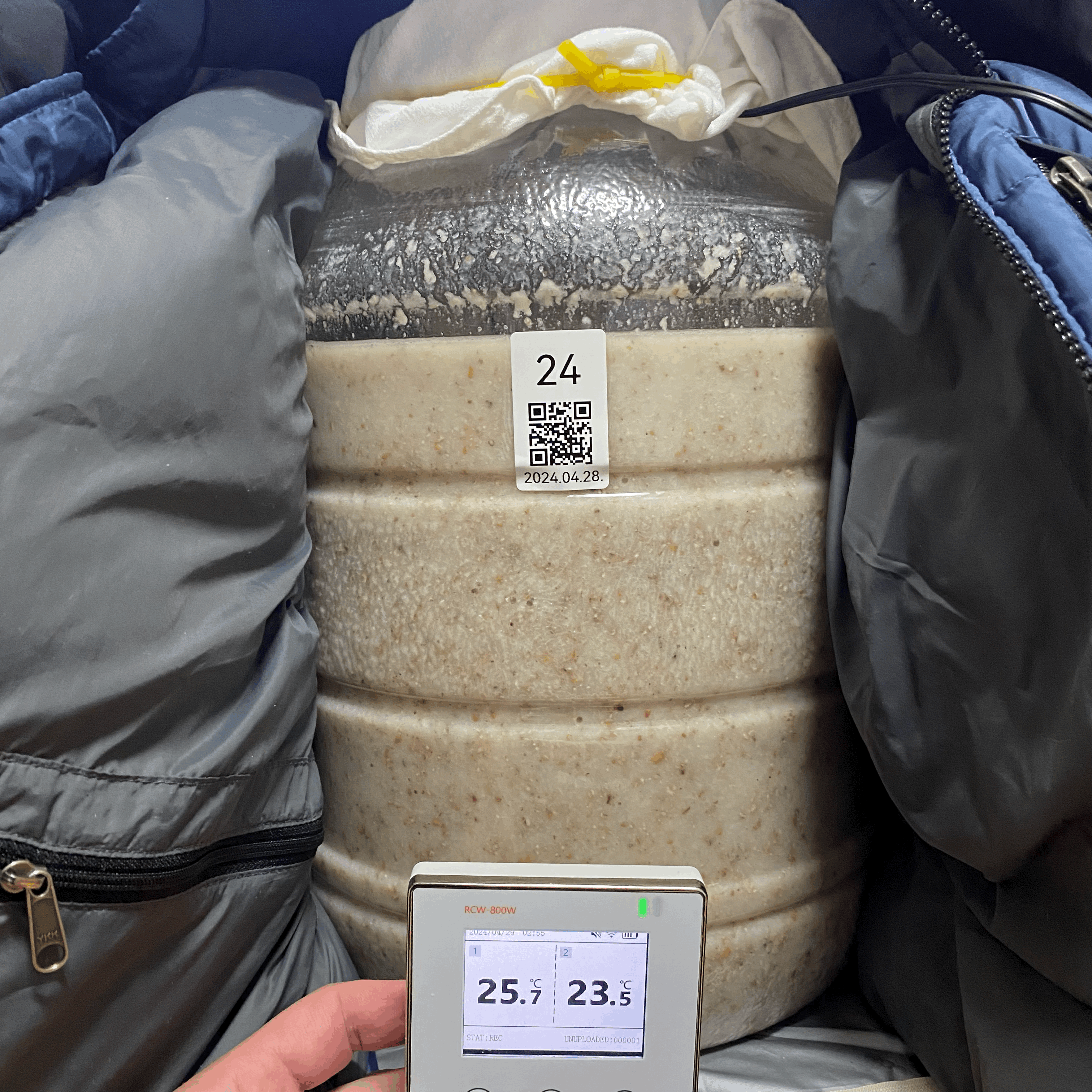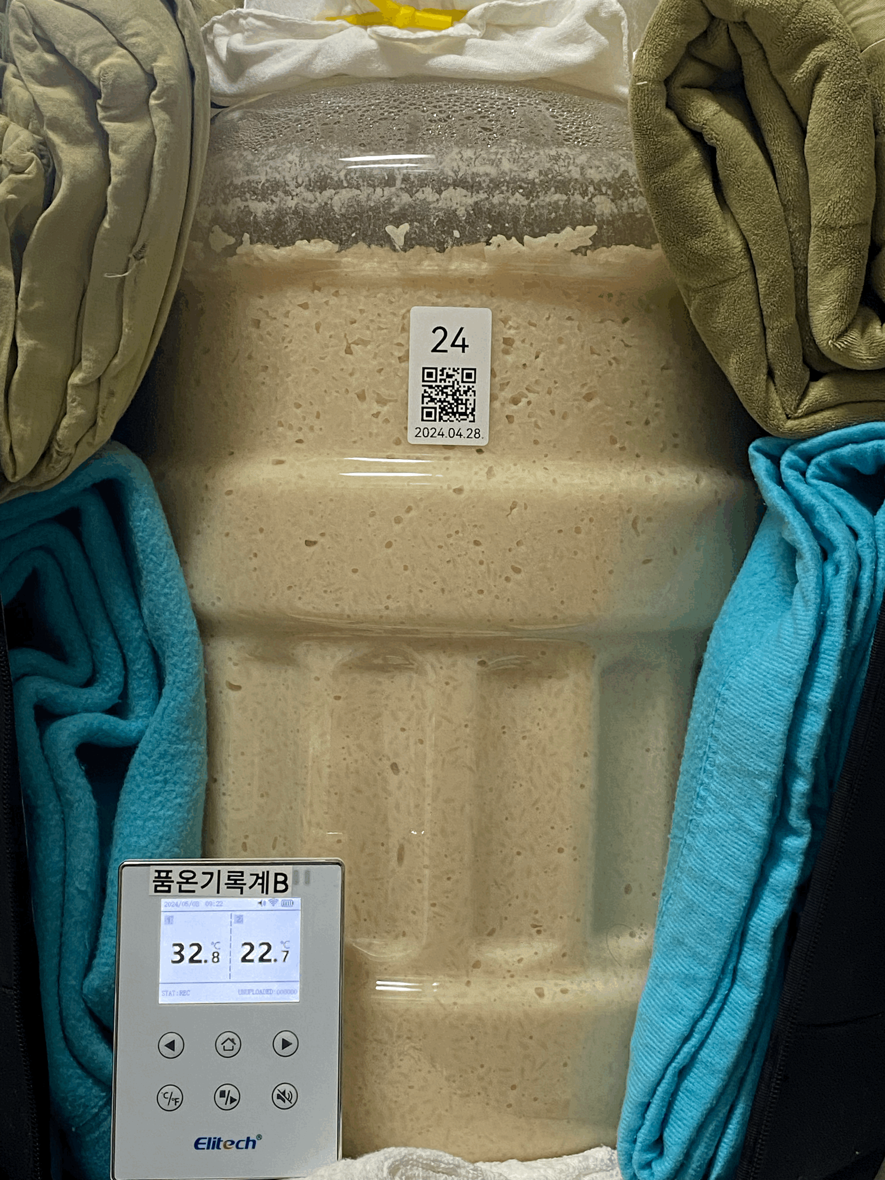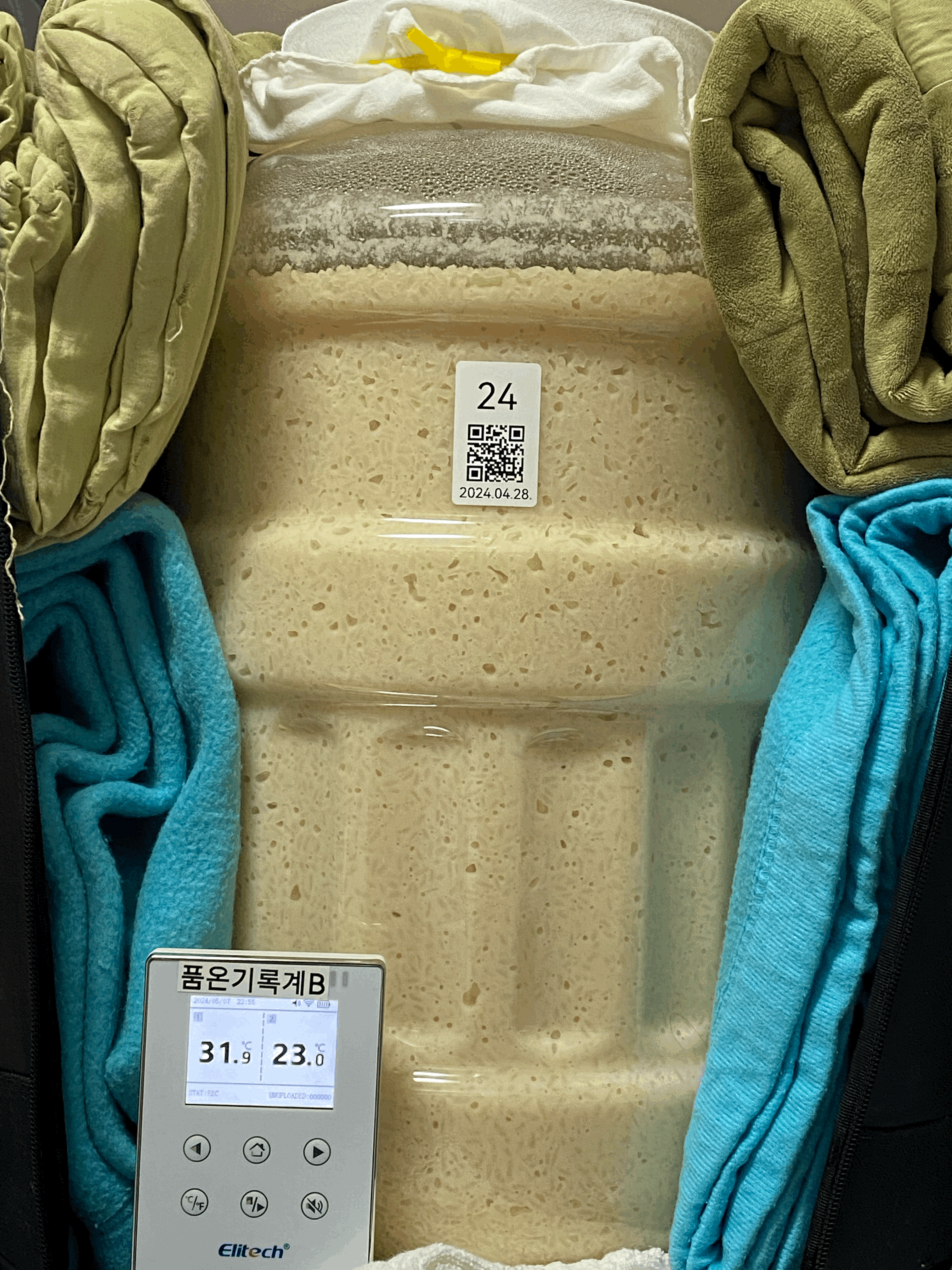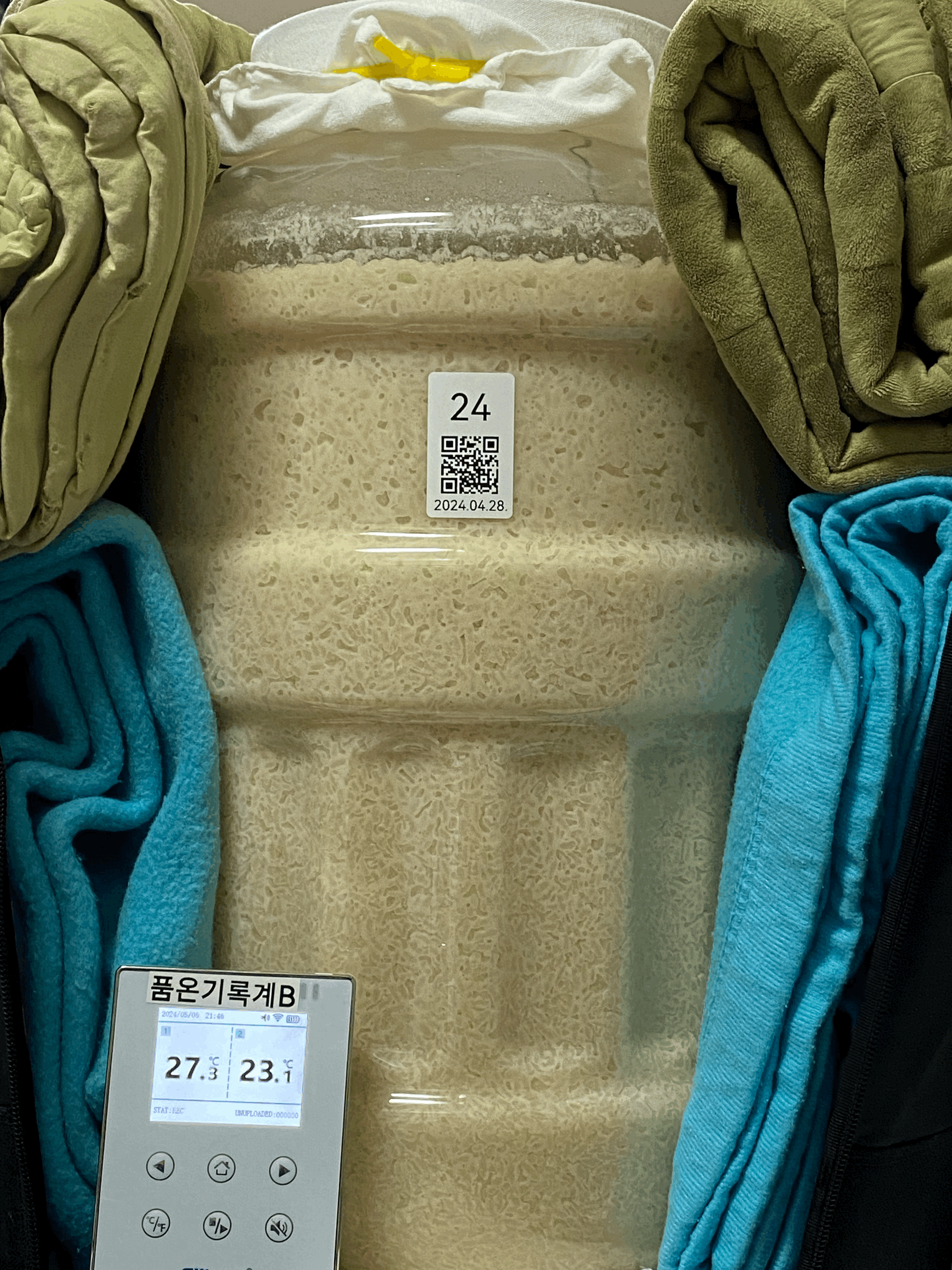 - 비닐로 밀봉한 채로 그대로 품온이 실온 수준으로 올라올 때 까지 기다렸다가 품온 센서 빼주고 뚜껑 닫을 예정.
