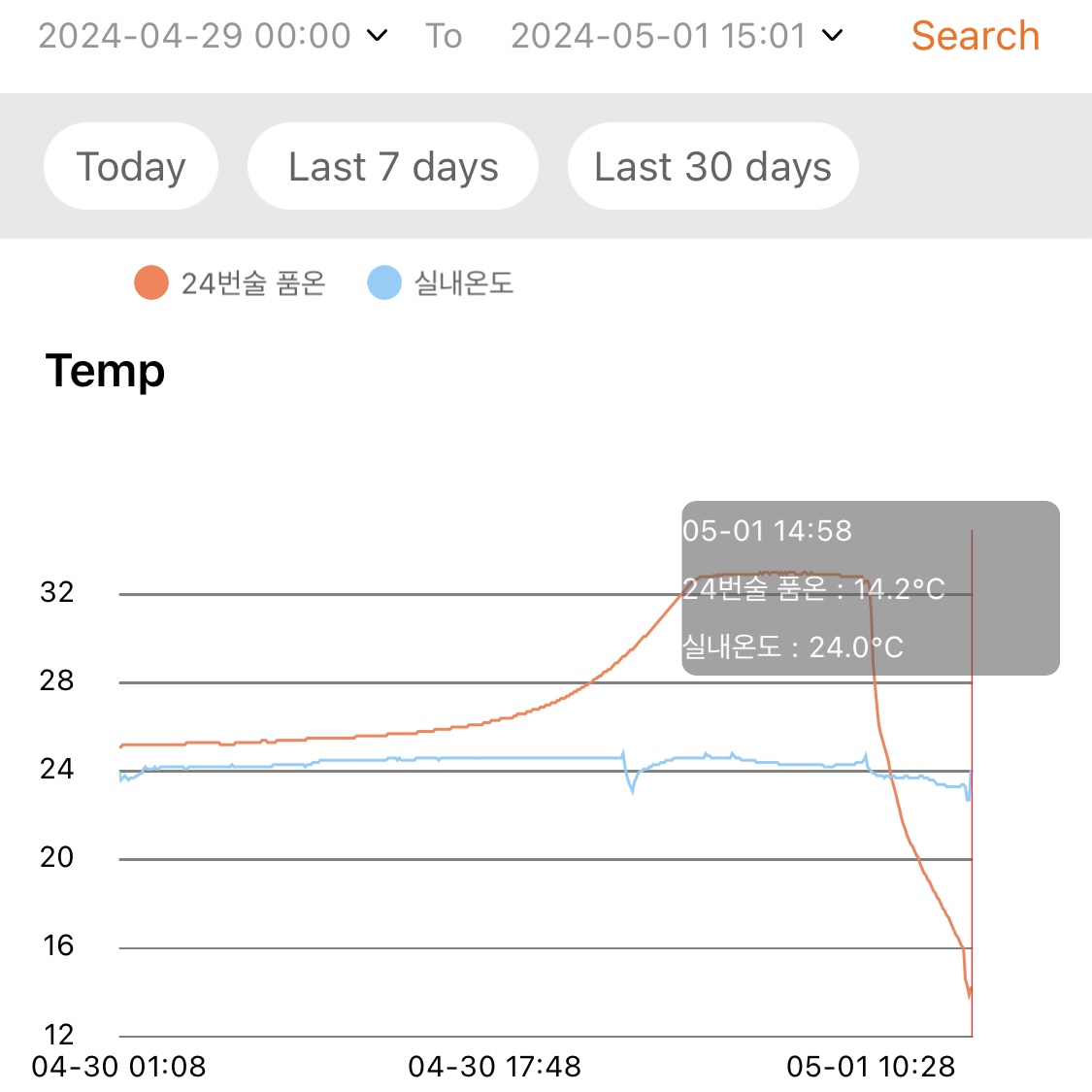 - 의도대로 품온 상승세가 꺾이고 내려가기 시작했다.