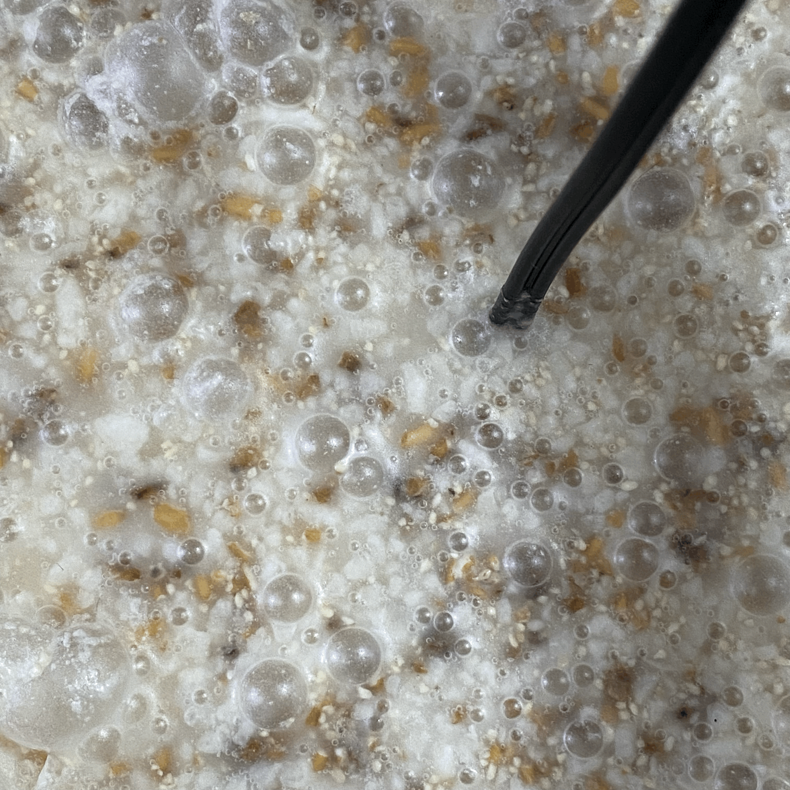 - 술독 아래에서부터 기포가 많지는 않지만 꾸준하게 계속 올라오면서 중층부의 고두밥들을 계속 가르고 밀어올리고 있어 아직 층분리는 되지 않고 있다.
