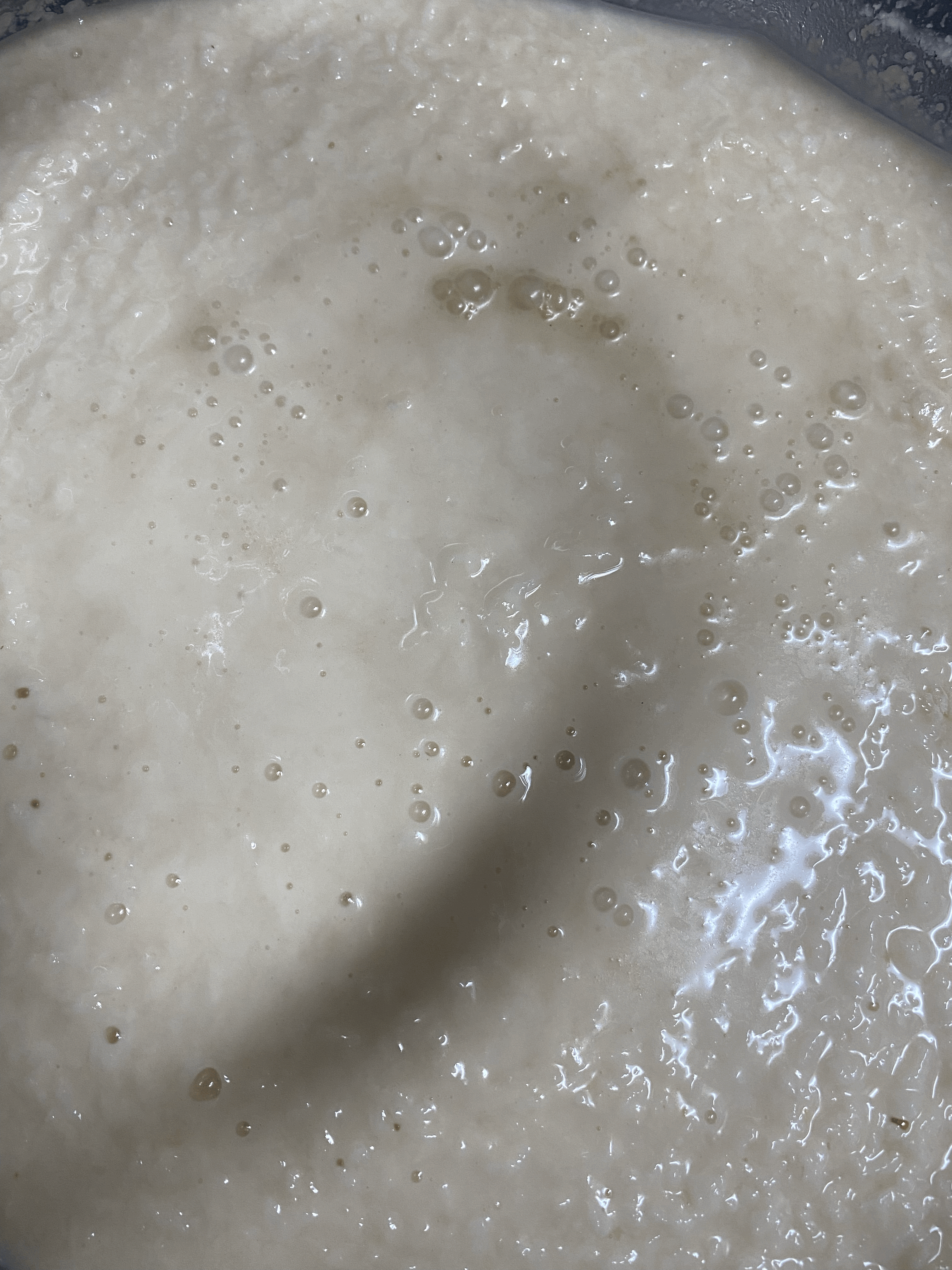 술덧의 점도는 아직 높아 보인다. 기포가 술덧 중간 중간에 꽤 보인다.
