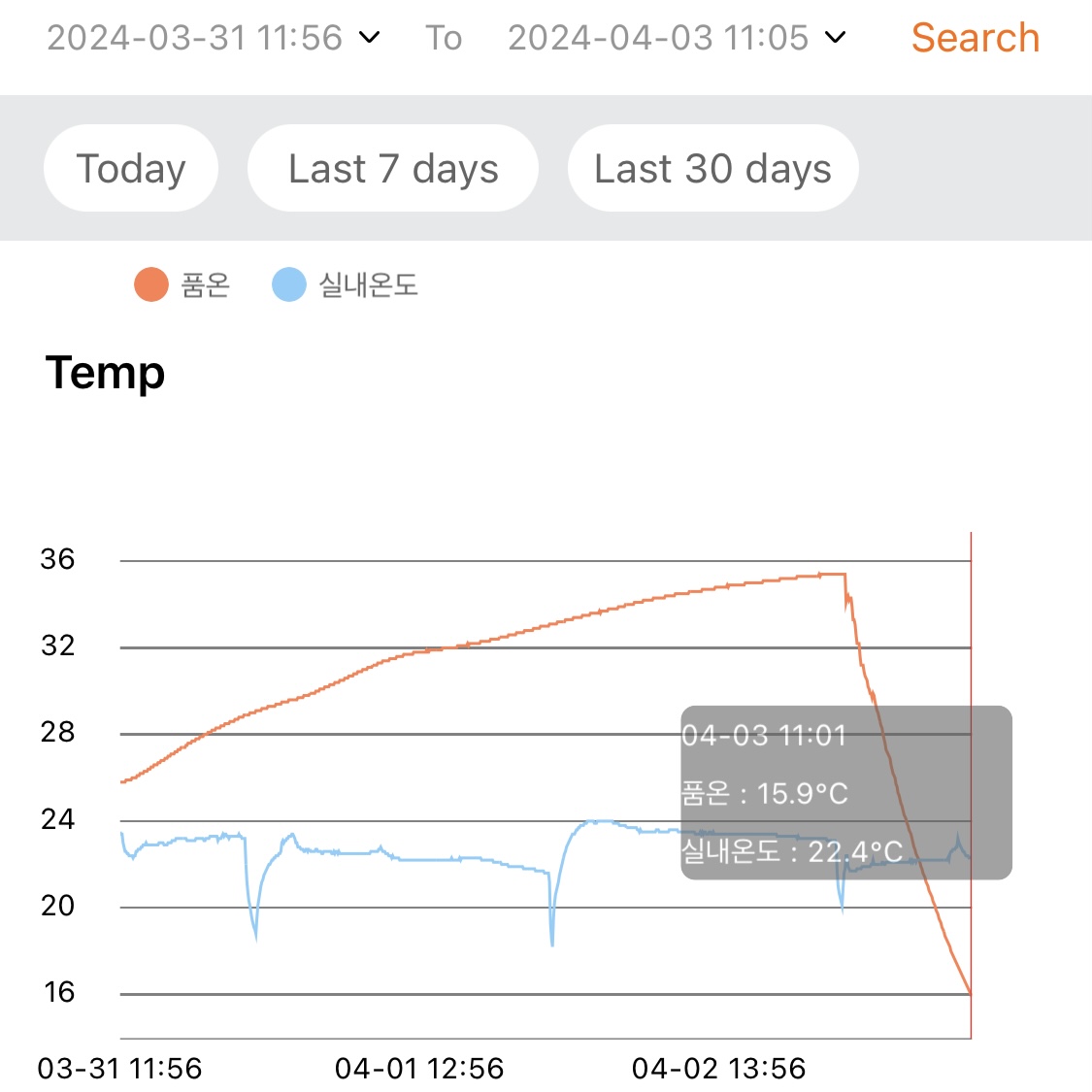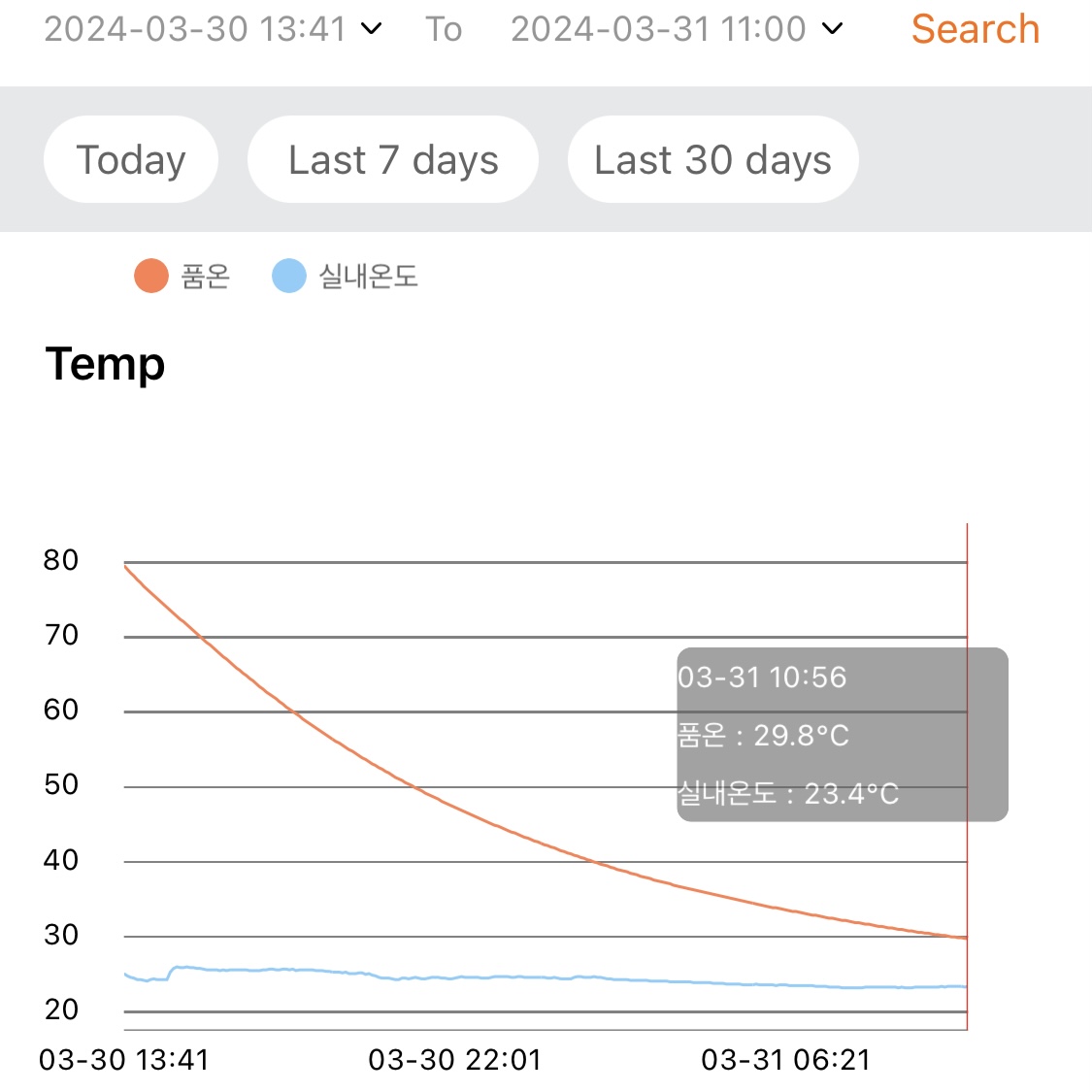 냉각 종료 후 품온 센서를 뺐기 때문에 품온 기록은 여기까지.
