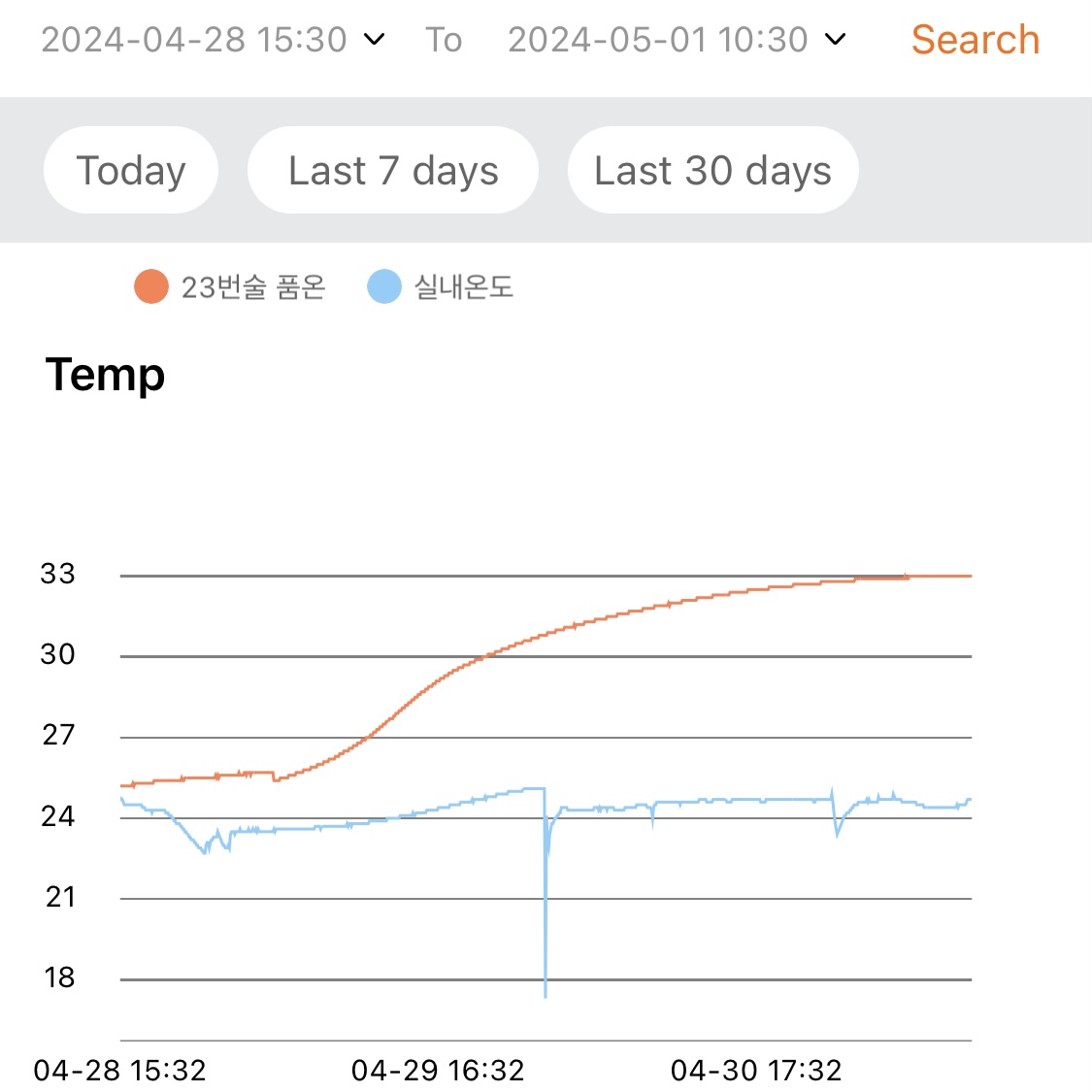 위의 그래프 처럼 품온 기록계를 꽂아두면 내가 원하는 온도까지 식었는지 확인해보기 편하다.