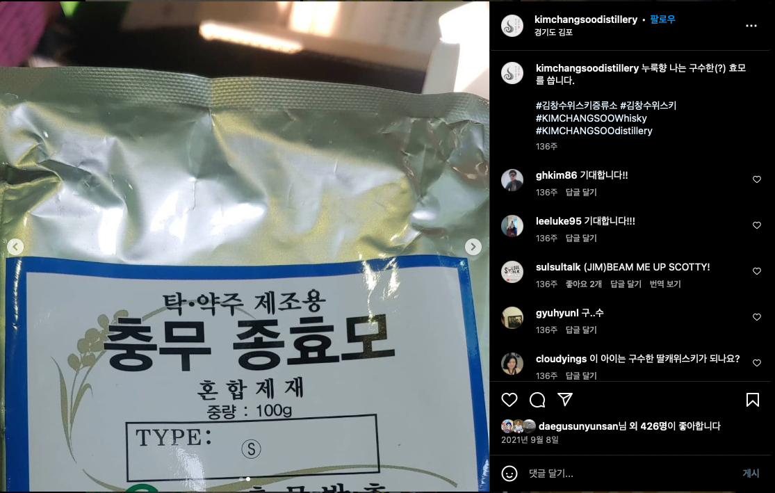 김창수씨는 위스키 증류를 배우기 위해 스코틀랜드의 양조장까지 찾아가서 배우고 온 사람으로 알고 있는데, 위스키 증류용 효모가 아닌 탁약주 제조용 효모를 쓴다는 것 자체에 어떤 의도가 함축된 것인지 궁금하다.