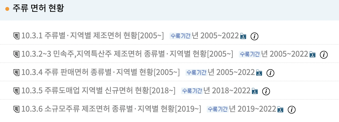 주류제조면허 통계가 궁금해서 조회해봤다.