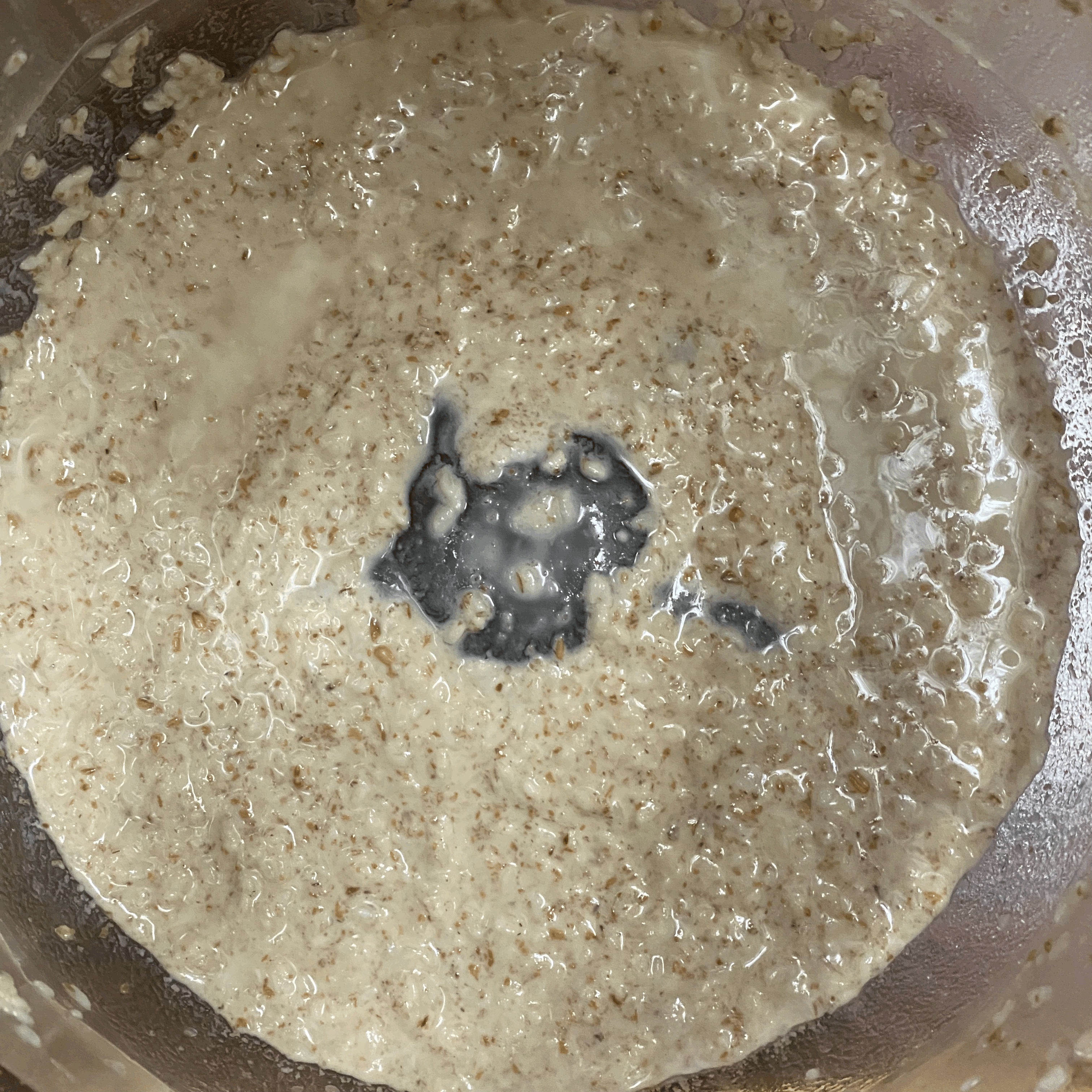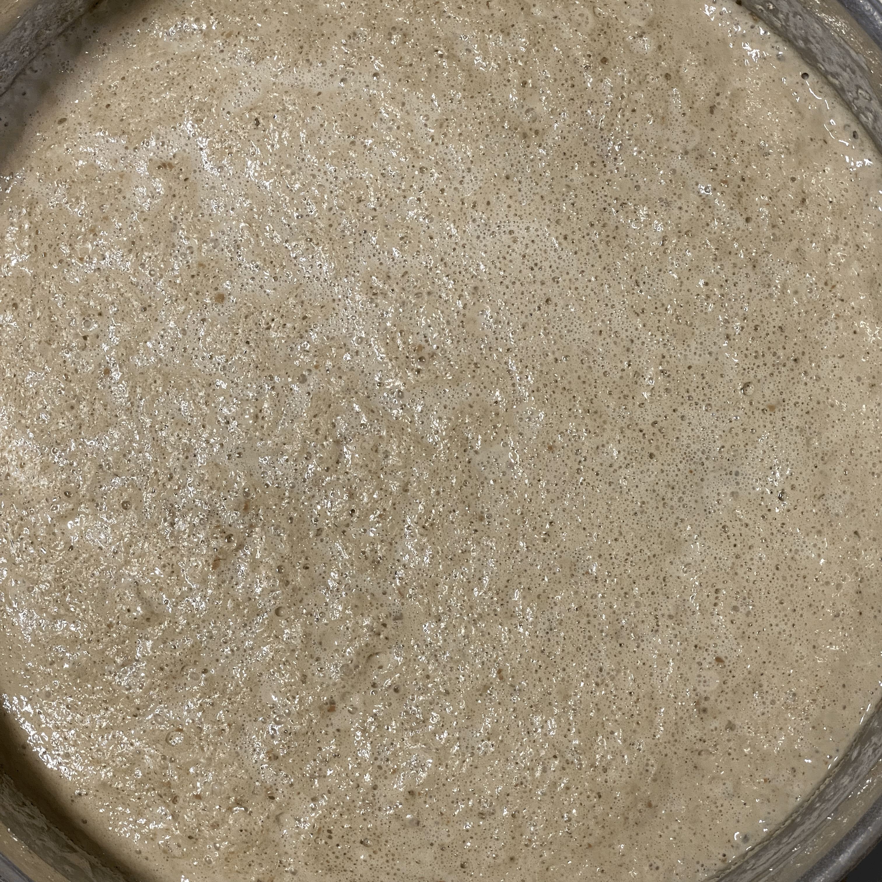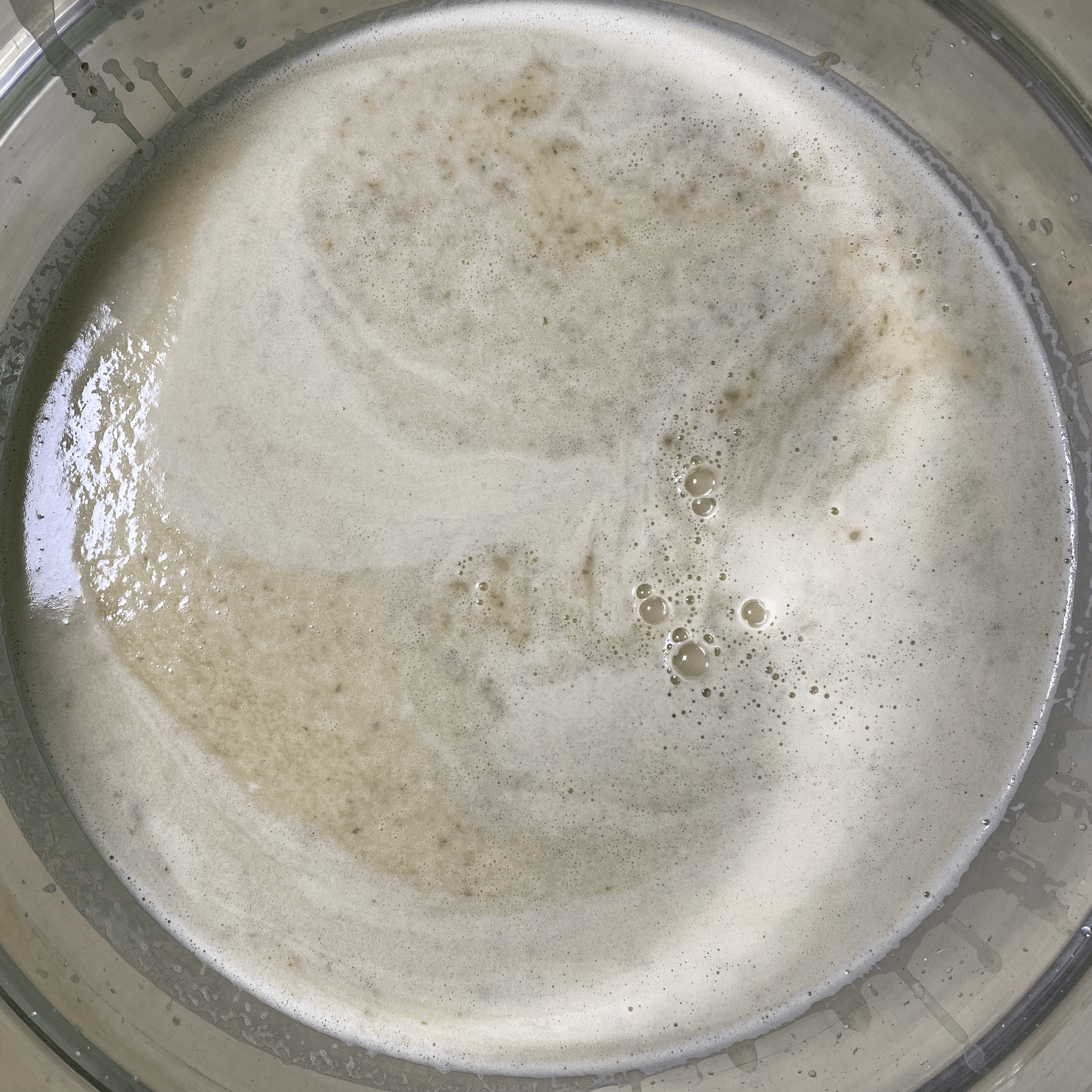 어제 23시반부터 수곡으로 불리다가 10시간 지난 오늘 아침 9시반에 밀가루를 넣은 뒤 거품이 더 많이 났다. 총 15시간 불린 수곡의 상태는 다음과 같음.