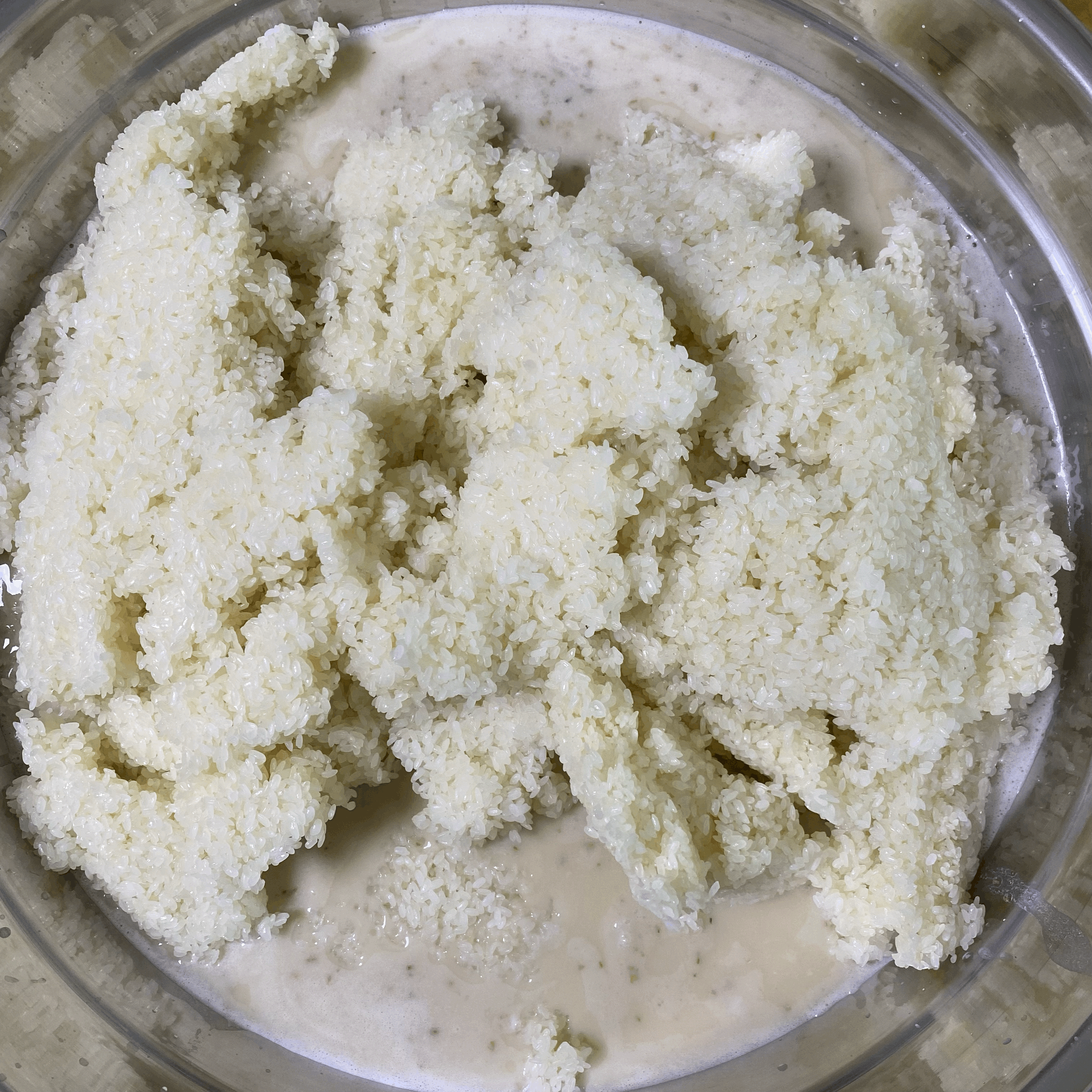불린 쌀의 물을 빼기 전에 수곡에 밀가루를 넣음. (밀가루 넣는 시기 실험)