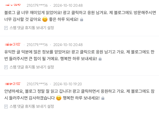 즉, 본인 블로그로의 방문을 유도하기 위해 단순 복붙했거나 매크로 등의 자동화 프로그램을 썼을 수도 있을테다.