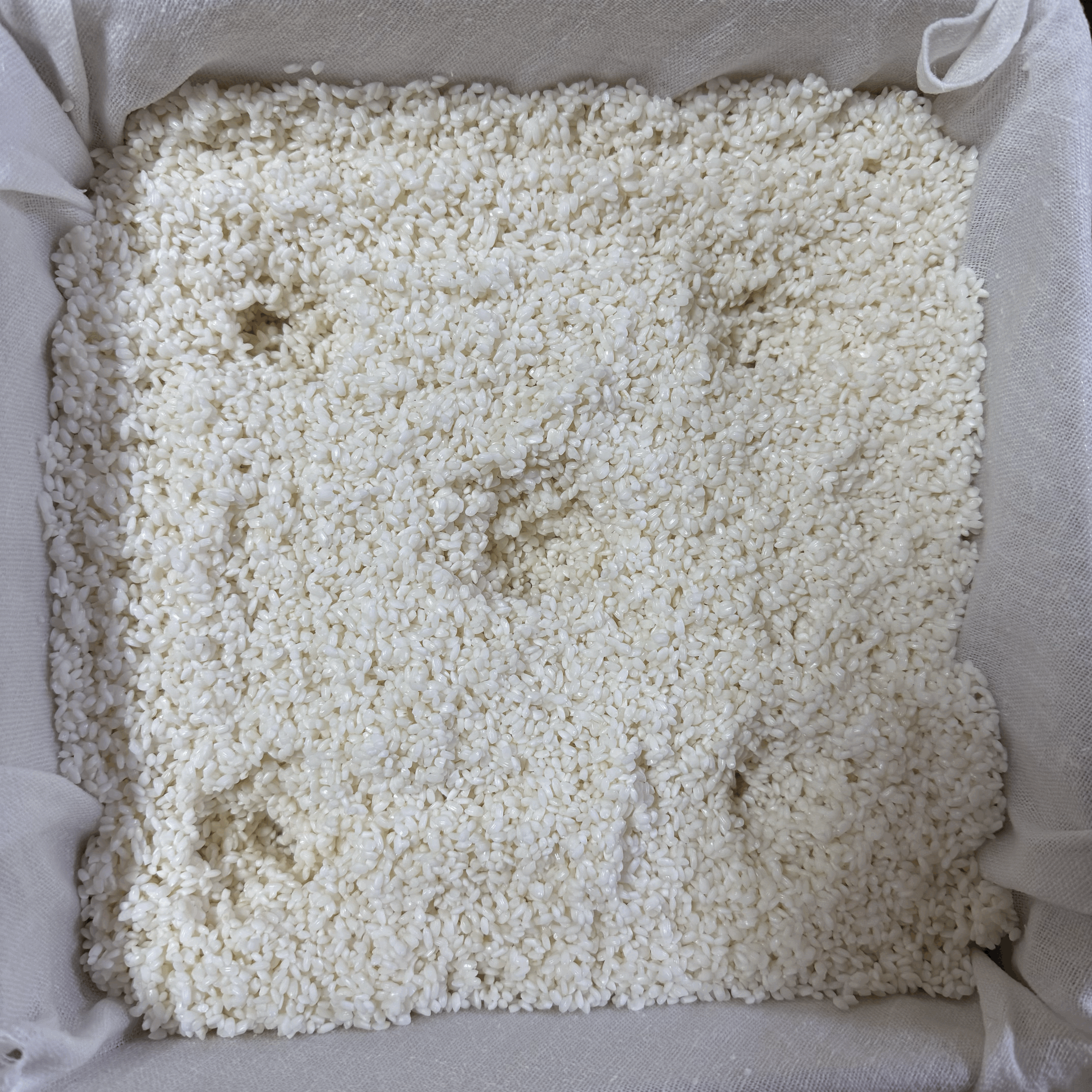 양푼에 고두밥을 덜어내면서 확인해보니 시루보에 접한 부분은 고두밥이 좀 질어졌음. 불린 쌀을 찜솥에 올리기 전에 10분 쯤 먼저 시루보 깔고 찜기에 부어놨다가 물이 끓었을 때 바로 올렸더니 그 시간 동안 물이 더 빠져서 시루보를 적시는 바람에 시루보 접촉면의 고두밥이 질어진 것으로 추정함. 앞으로는 늘 하던대로 물 끓고 나서 시루보 깔고 불린 쌀 올리고 찜솥에 안쳐야겠음.
