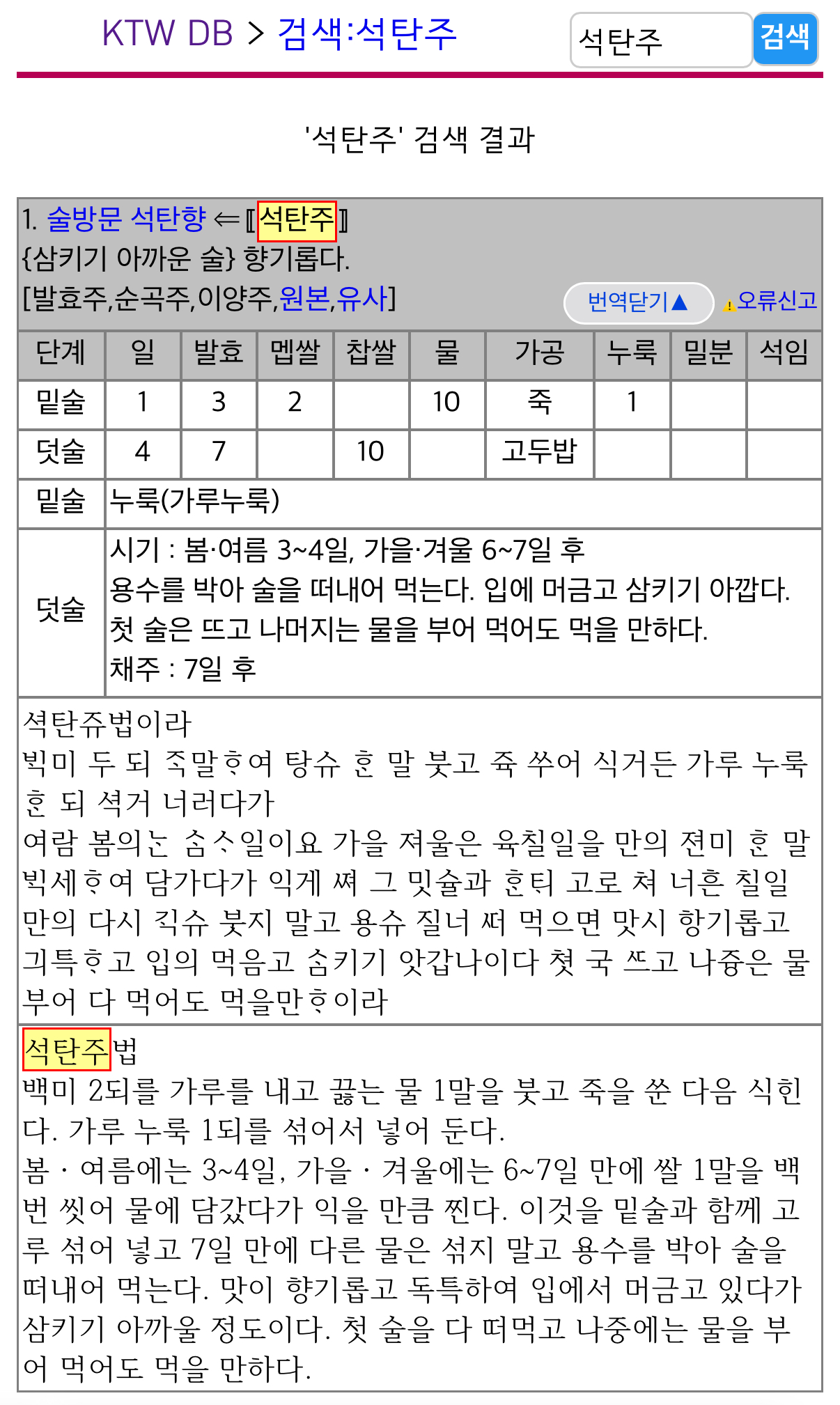 그렇기에 고문헌으로 전래된 술을 언급할 땐 어느 문헌에서 전래된 어느 주방문인지를 명확하게 언급해야 한다 생각한다.