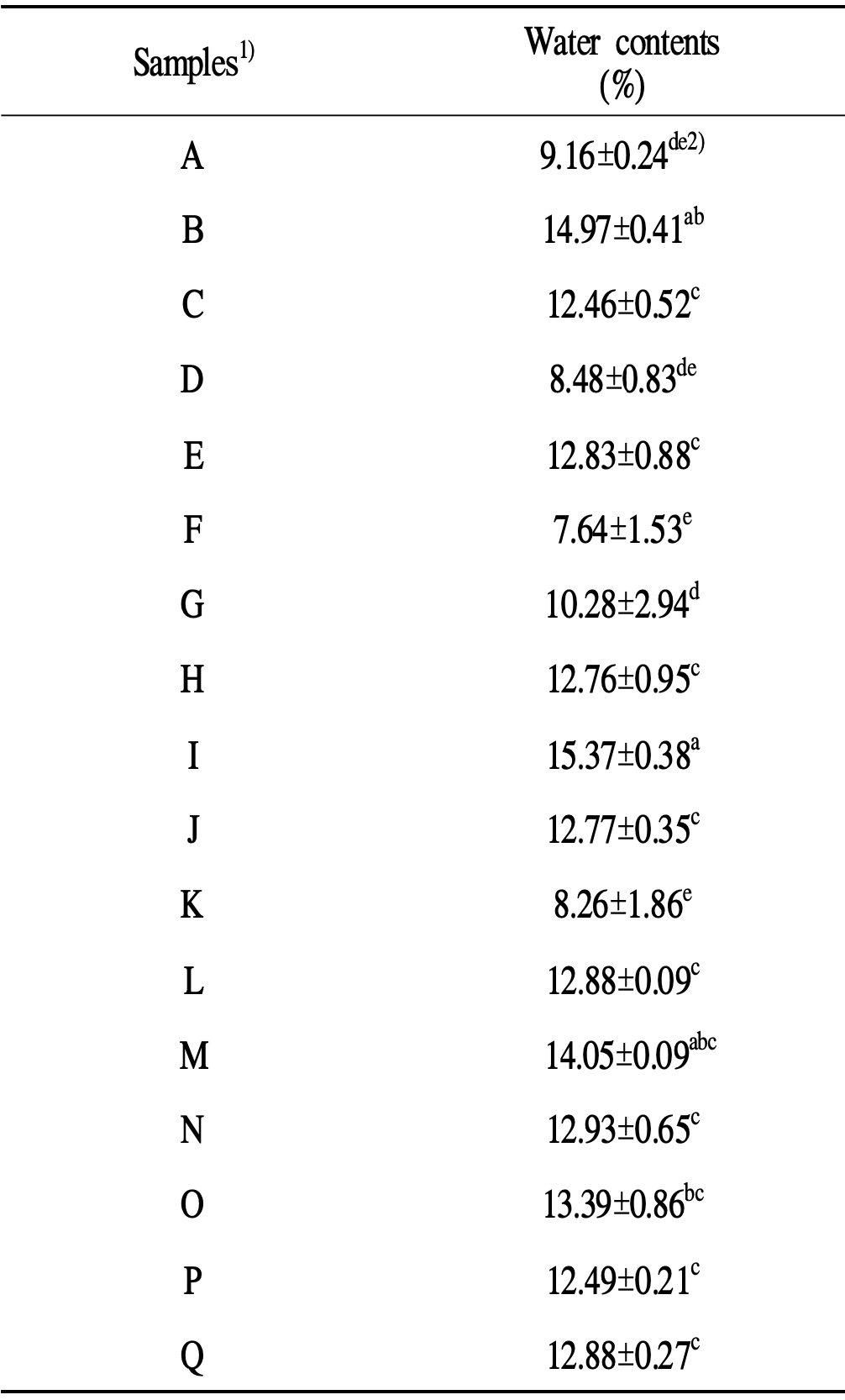 수분함량이 가장 높은 제품과 가장 적은 제품의 수분함량 차이는 7.33%로 거의 2배에 달한다.