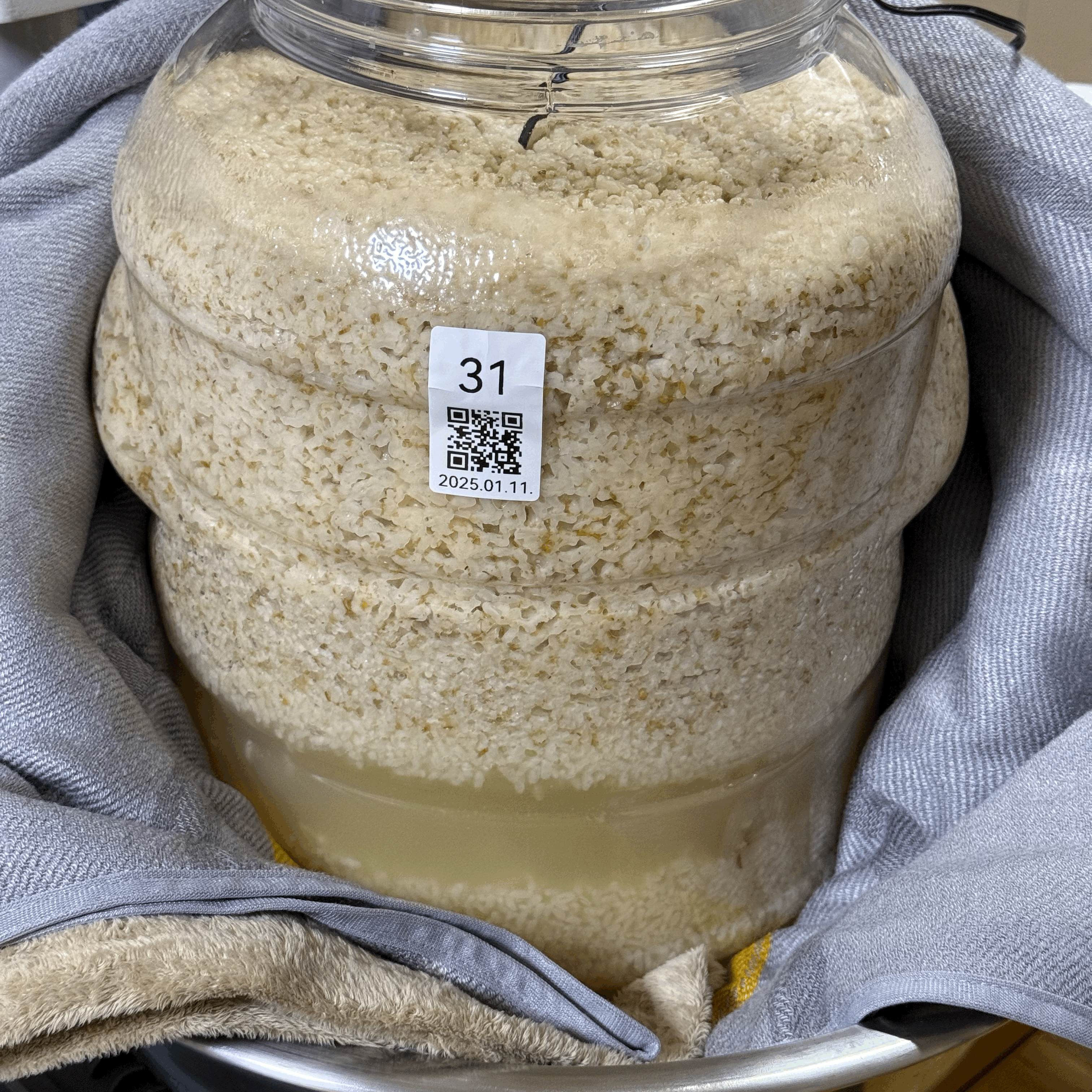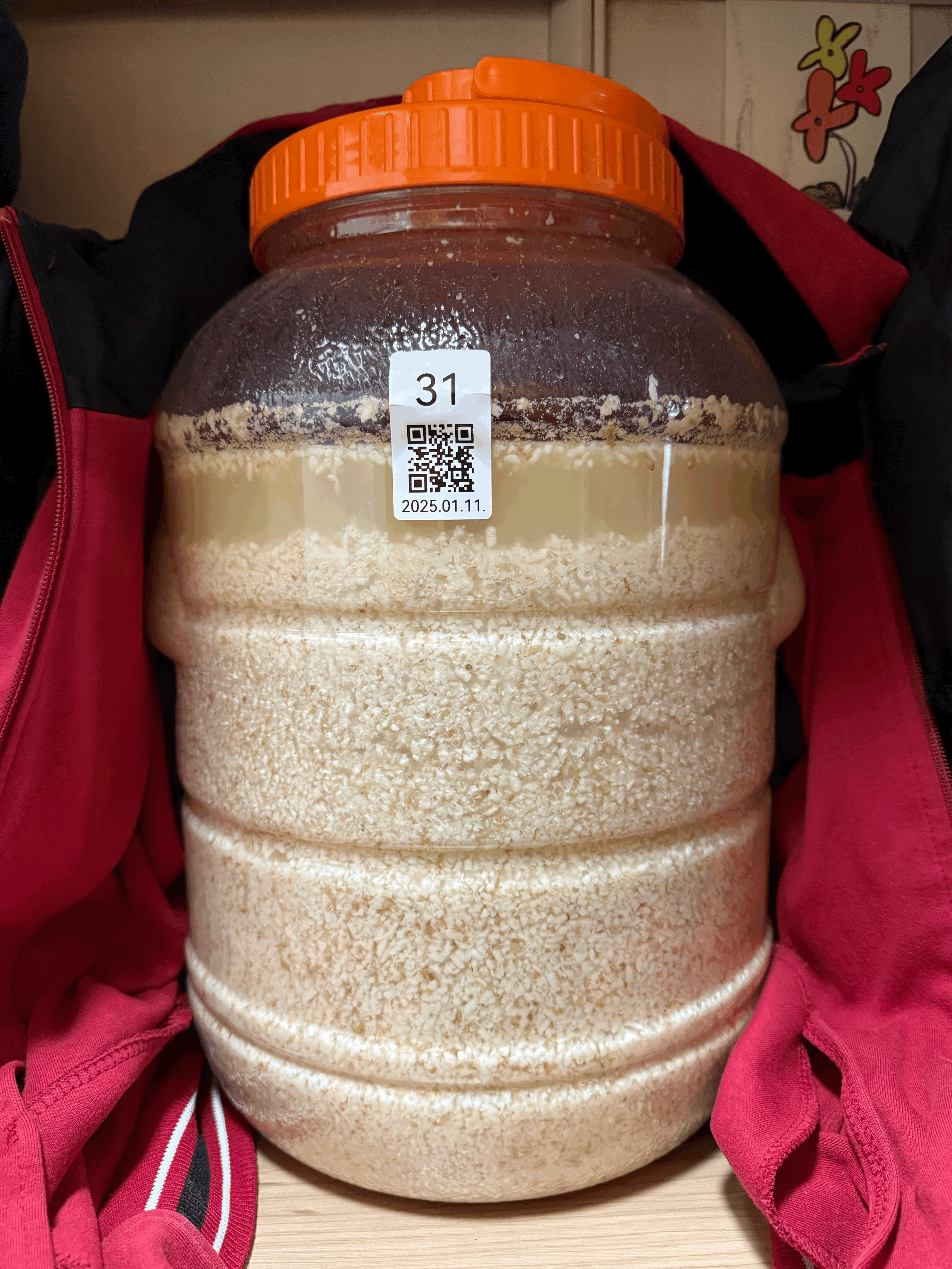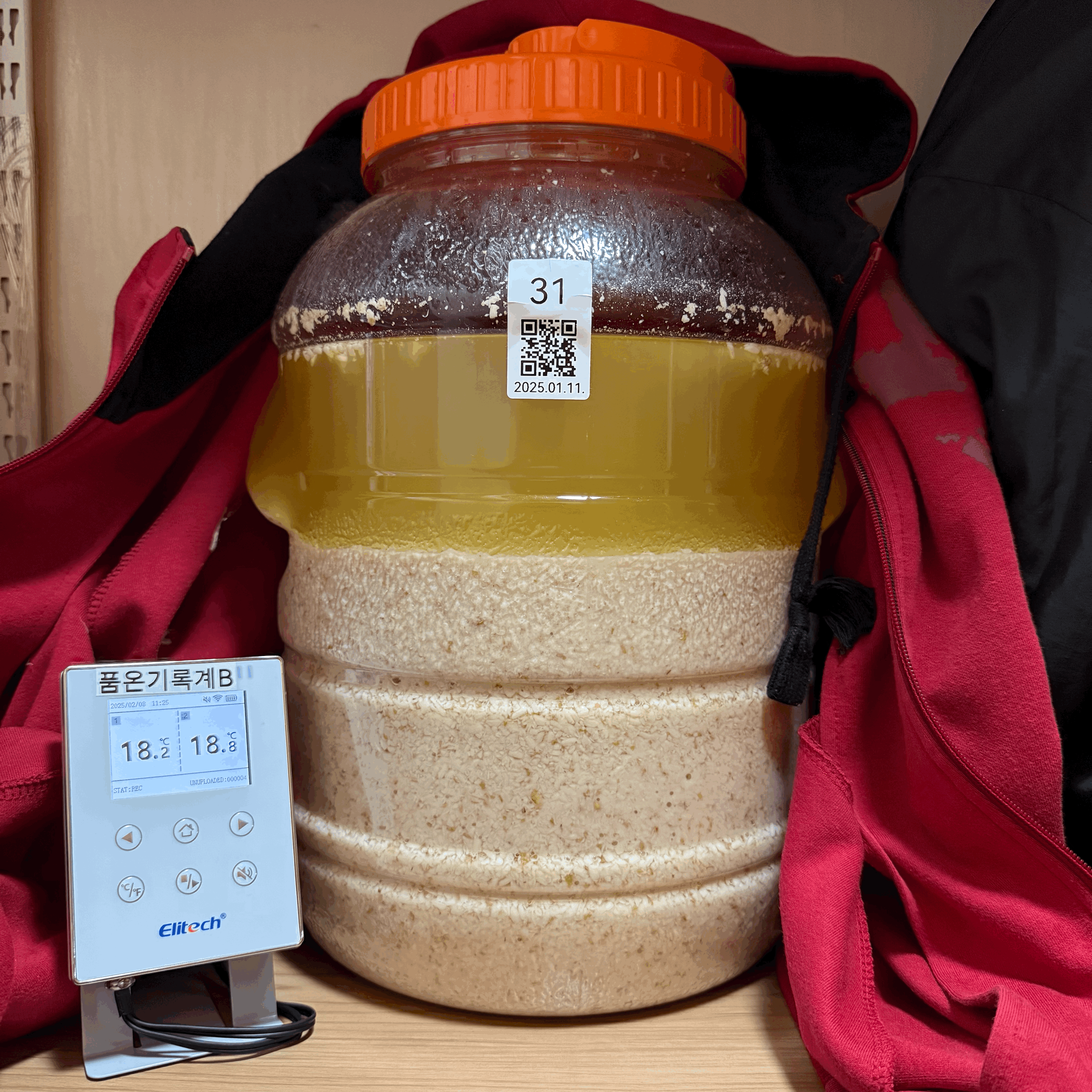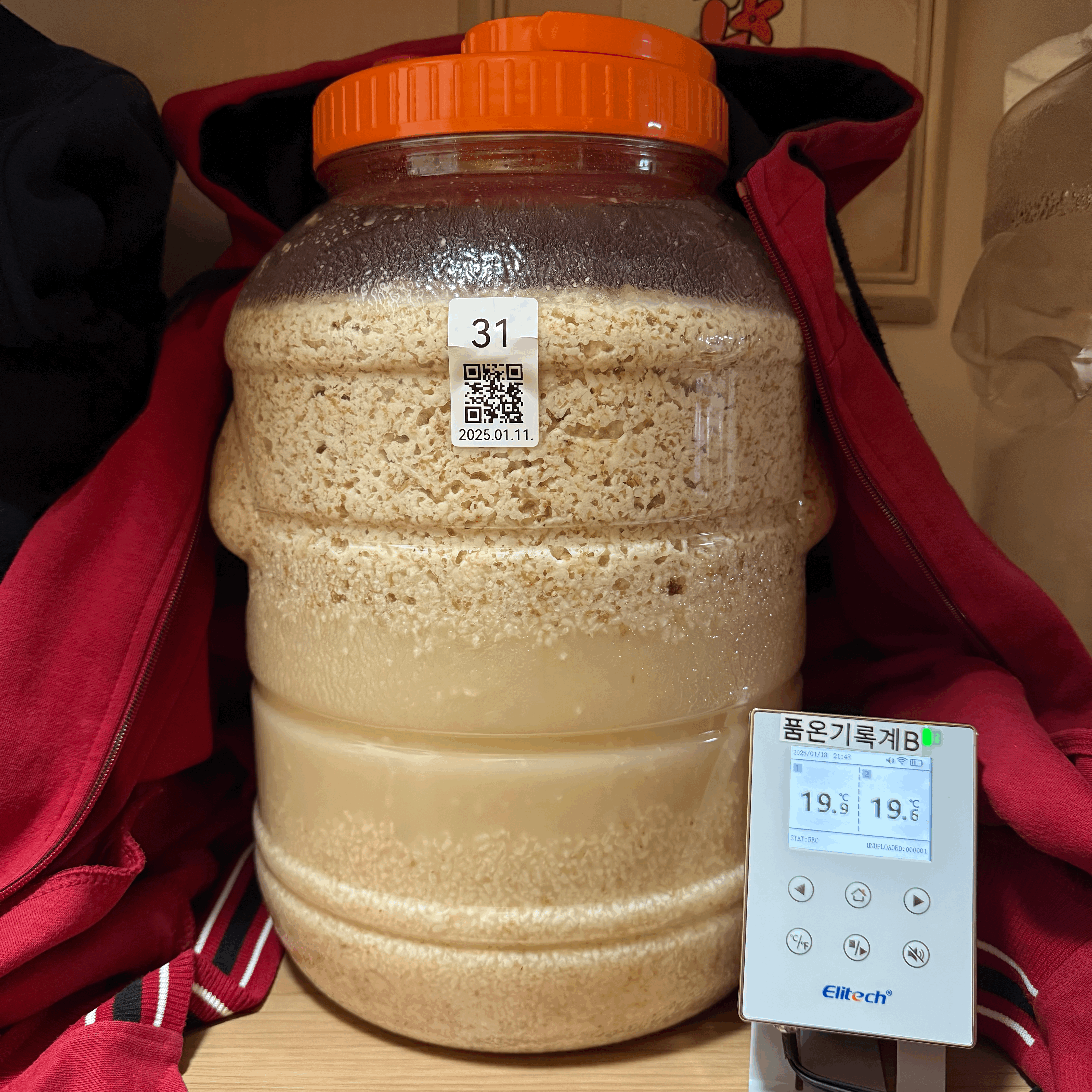 2025.01.11.토.20:20 → 주발효: 품온 17.5℃, 발효공간 온도 18.8℃, 술독 무게 15.26kg