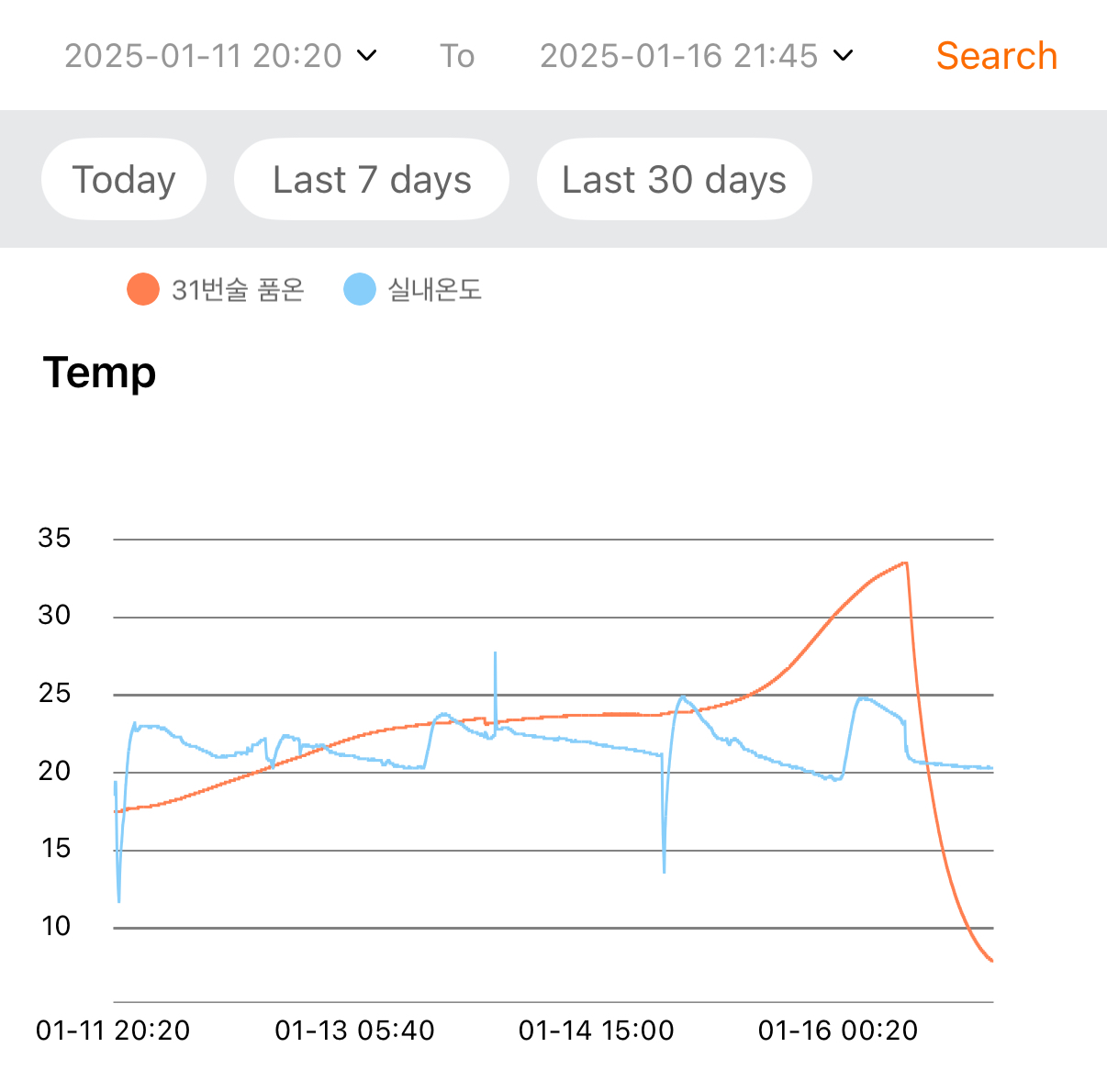 그 동안 품온 추이와 달리 오늘은 품온이 꽤 올랐다.