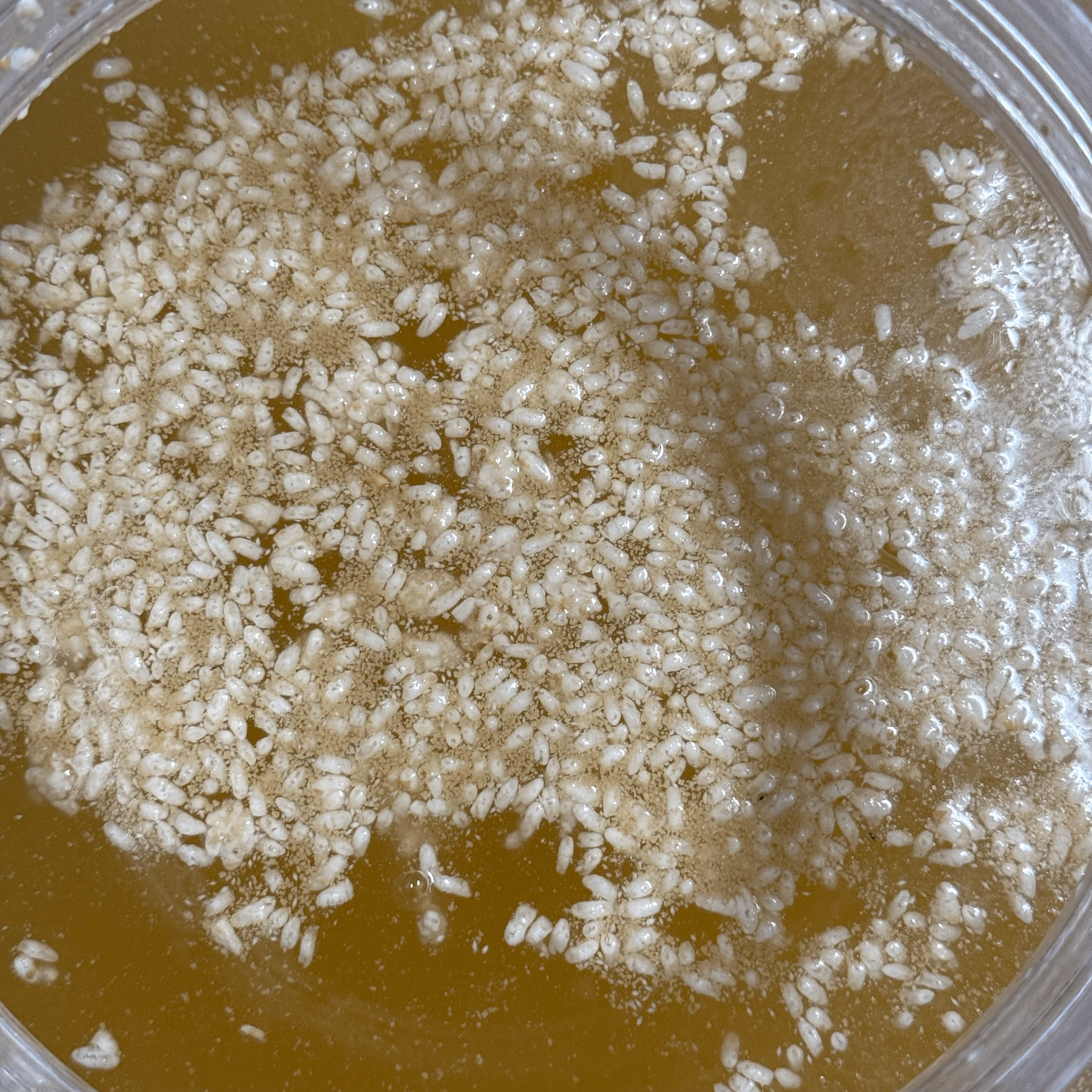 술덧 뚜껑을 열어보니 확 올라오는 알콜향이 그리 강하지는 않고, 새콤한 향과 알코올향이 비슷하다. 평소 잘 생기지 않았던 쌀눈이 매우 많다. 찹쌀을 평소처럼 하룻밤 불린 것이 아니라 오전에 불리기 시작해서 5시간만 불린 뒤 고두밥을 쪄서 쌀을 헹구는 과정에 쌀눈이 덜 분리되어 그런가? 다음엔 찹쌀이라도 멥쌀처럼 하루밤 불려야겠다.