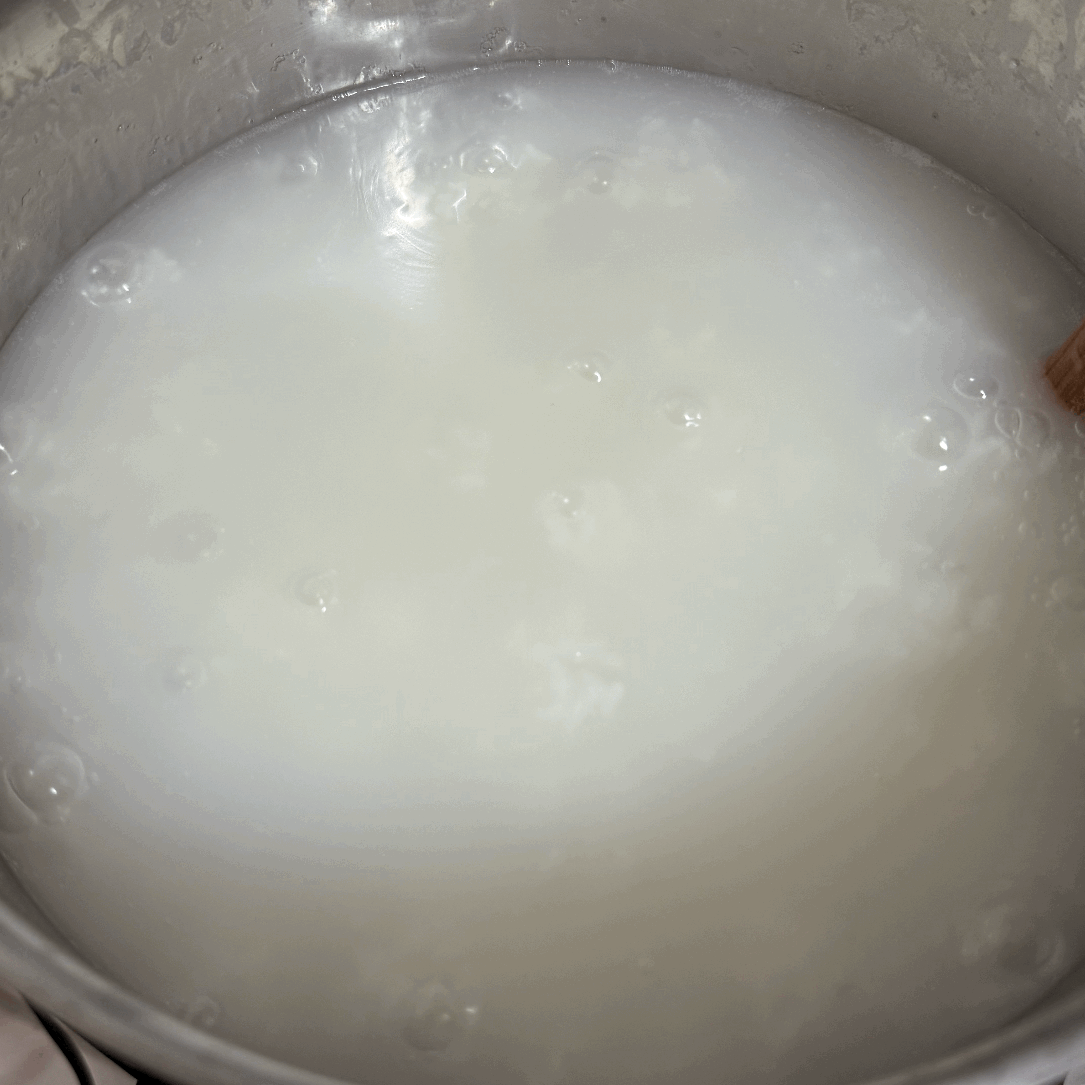 - 통쌀죽을 다 끓임.