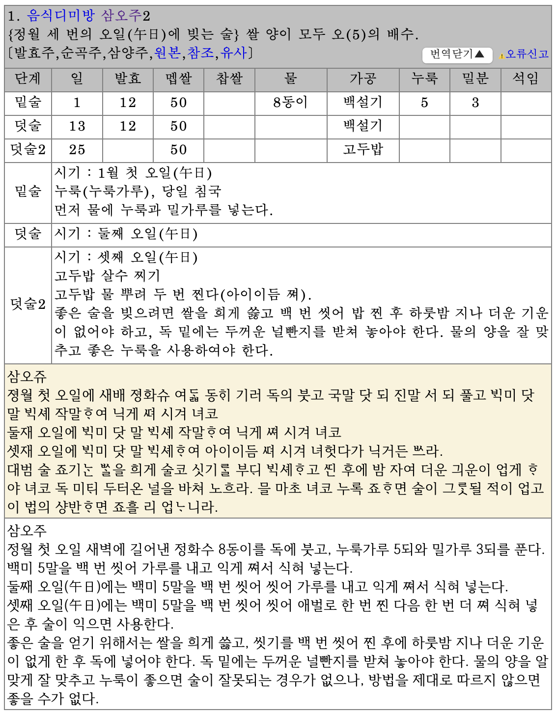 [참조.2] 한국술고문헌DB, http://koreansool.kr/ktw/php/print_table.php?table=SEARCH&_search_txt=삼오주