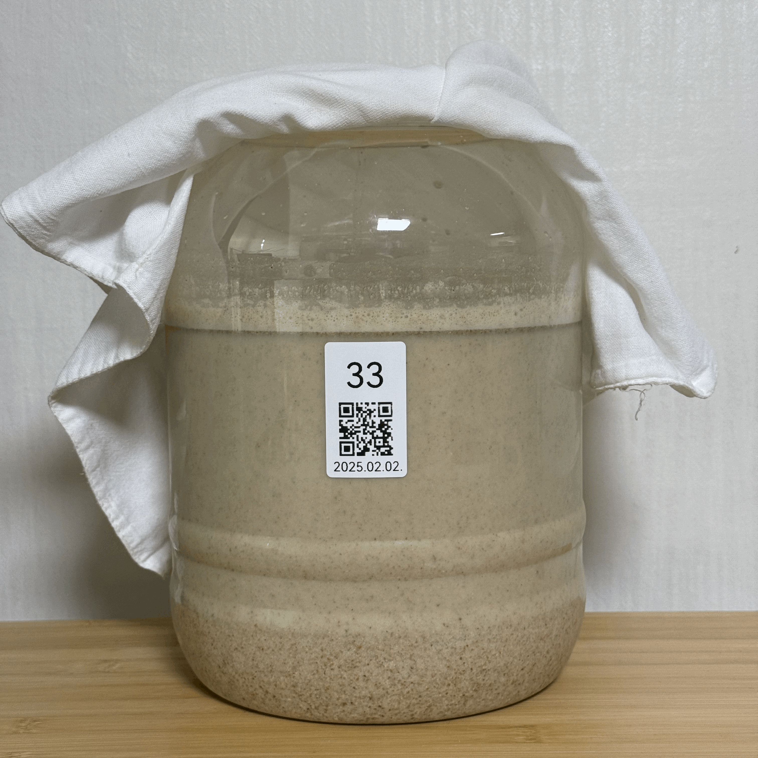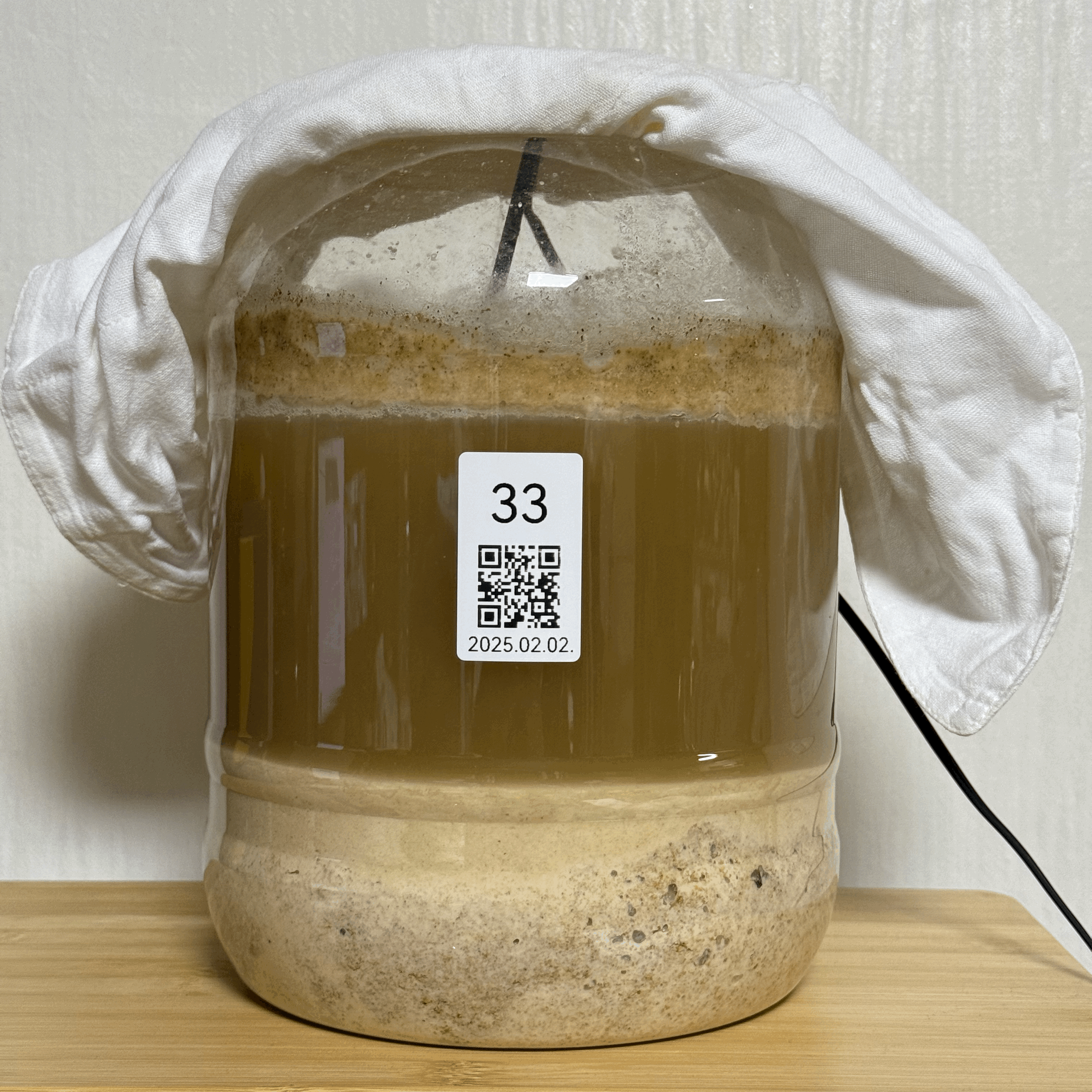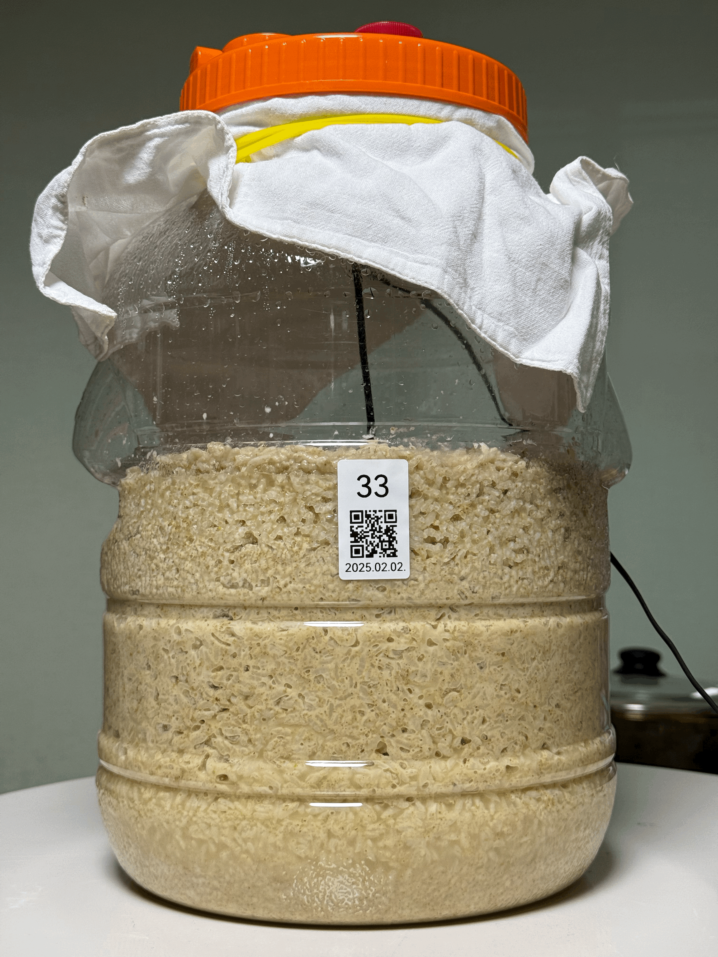 - 2025.02.17.월.22:30 (수곡 +2주 1일 6시간반) → 밑술 발효: 품온 34.7℃, 발효공간 25.0℃, 술독무게 10.09kg