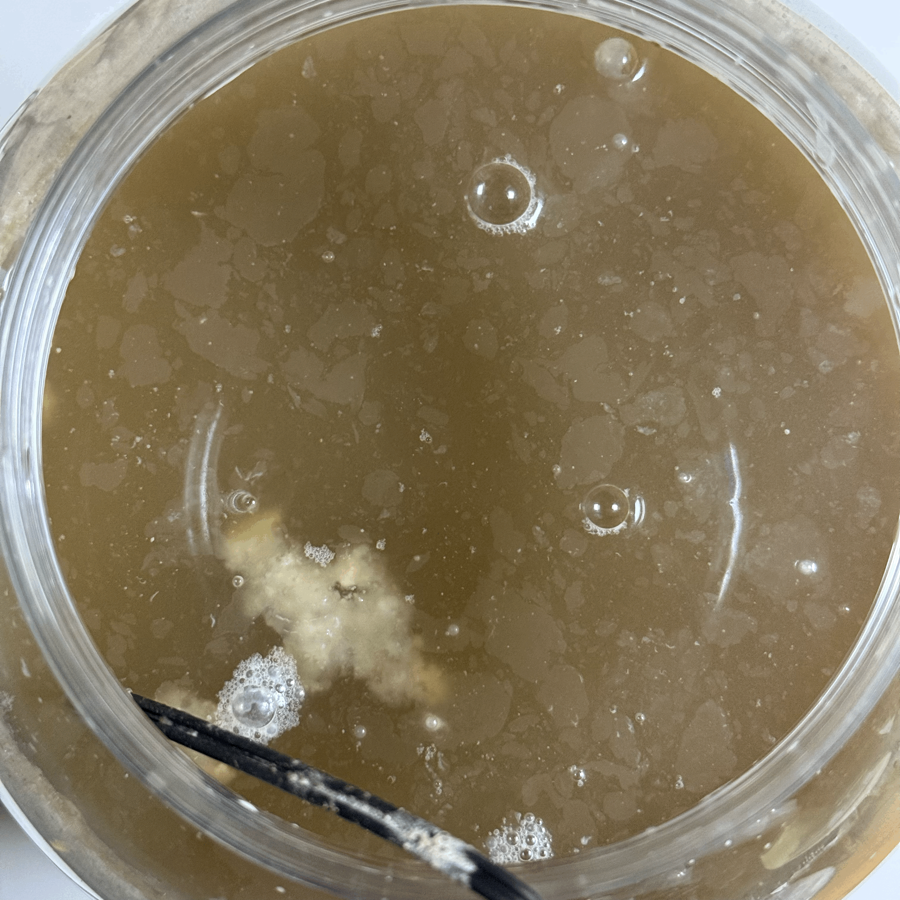 - 밑술의 옆모습만 봤을 땐 문제 없어보였는데, 술독을 열어보니 술독 옆면이 잡균에 오염되었고, 심지어 냄새도 부패된 냄새가 난다.