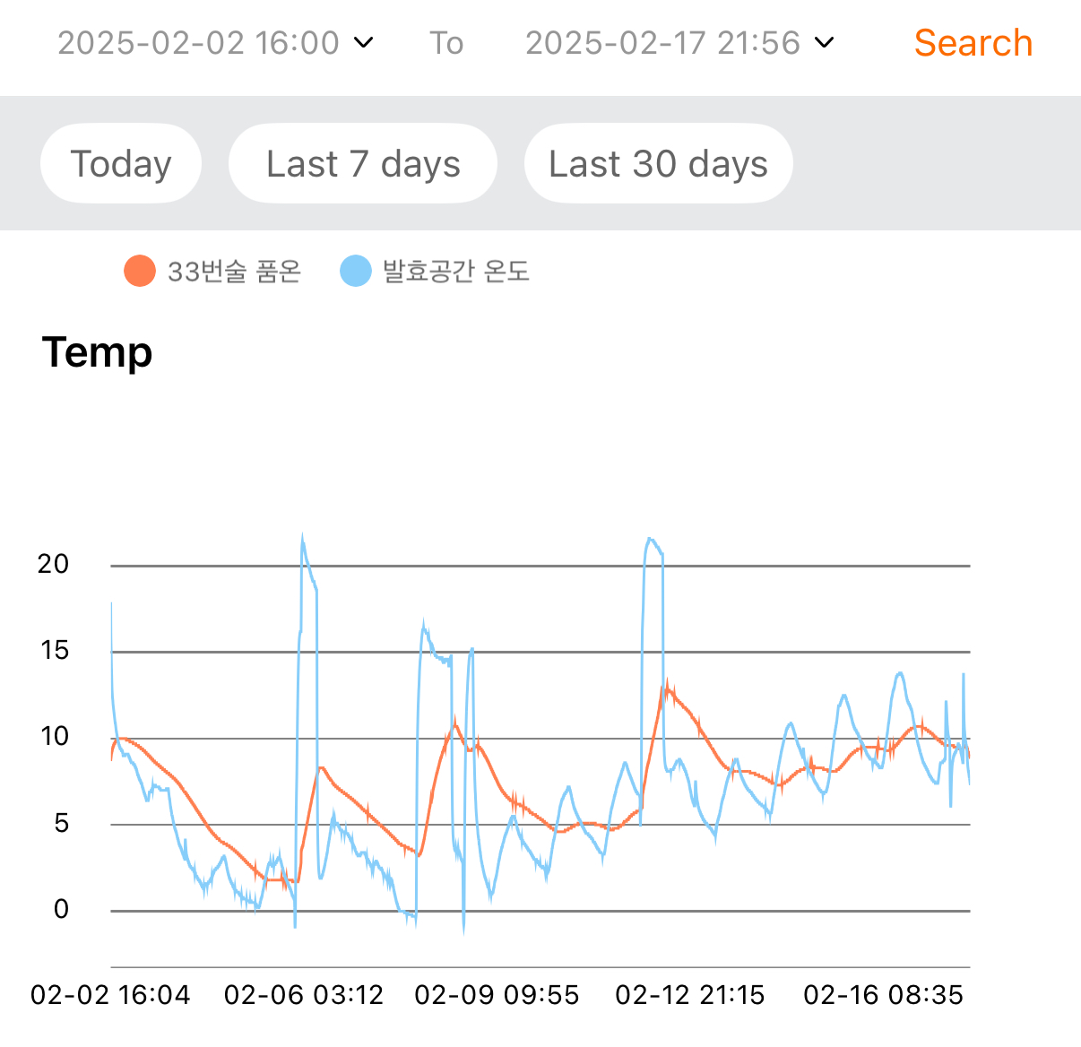 - 2025.02.02.일.16:00 → 수곡: 품온 8.7℃, 발효공간 17.9℃, 술독무게 3.961kg