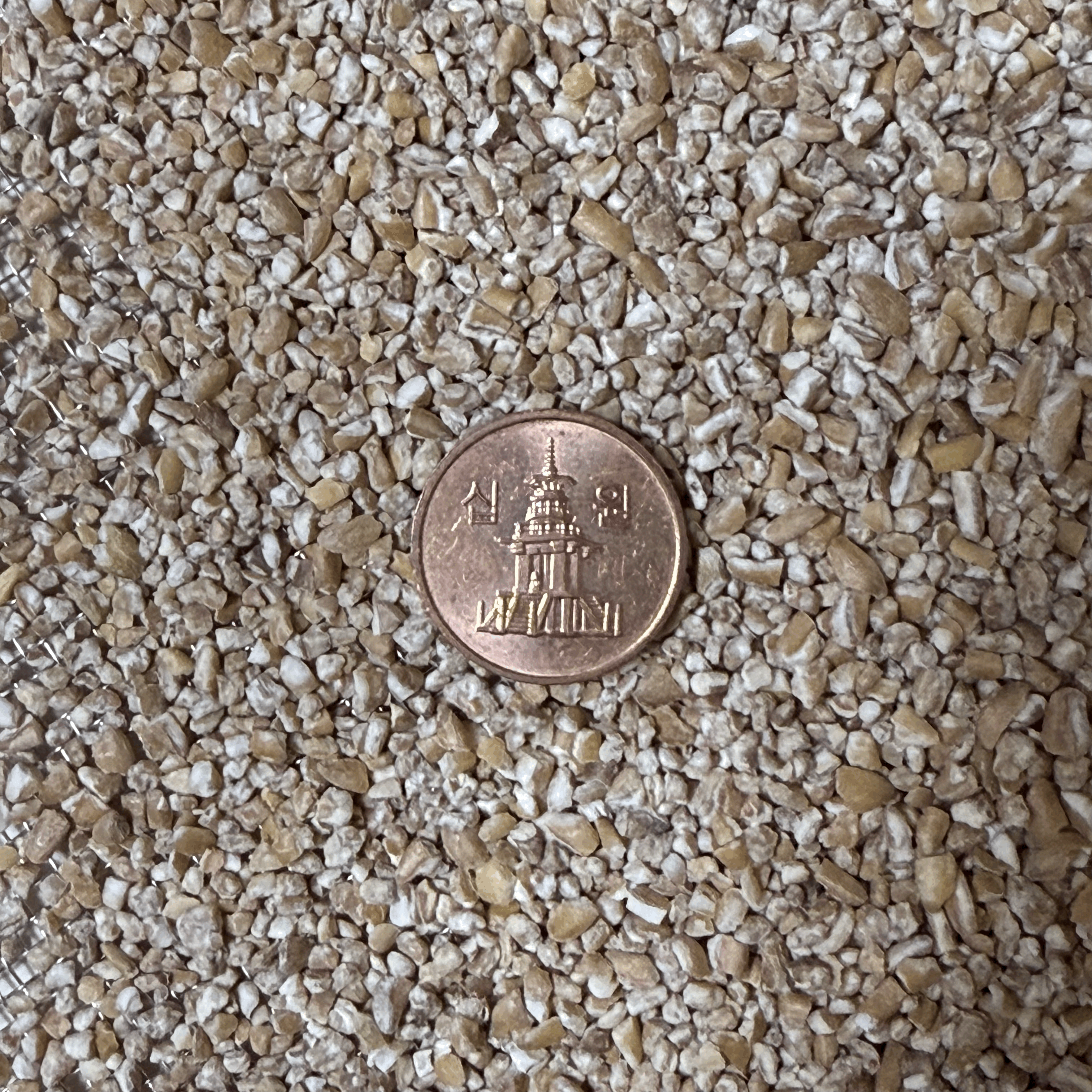 중간체로는 내렸지만 고운체로는 내리지 못해 걸러진 중간 입도의 누룩가루는 [그림.8]의 입도 정도 되며 227g이다.